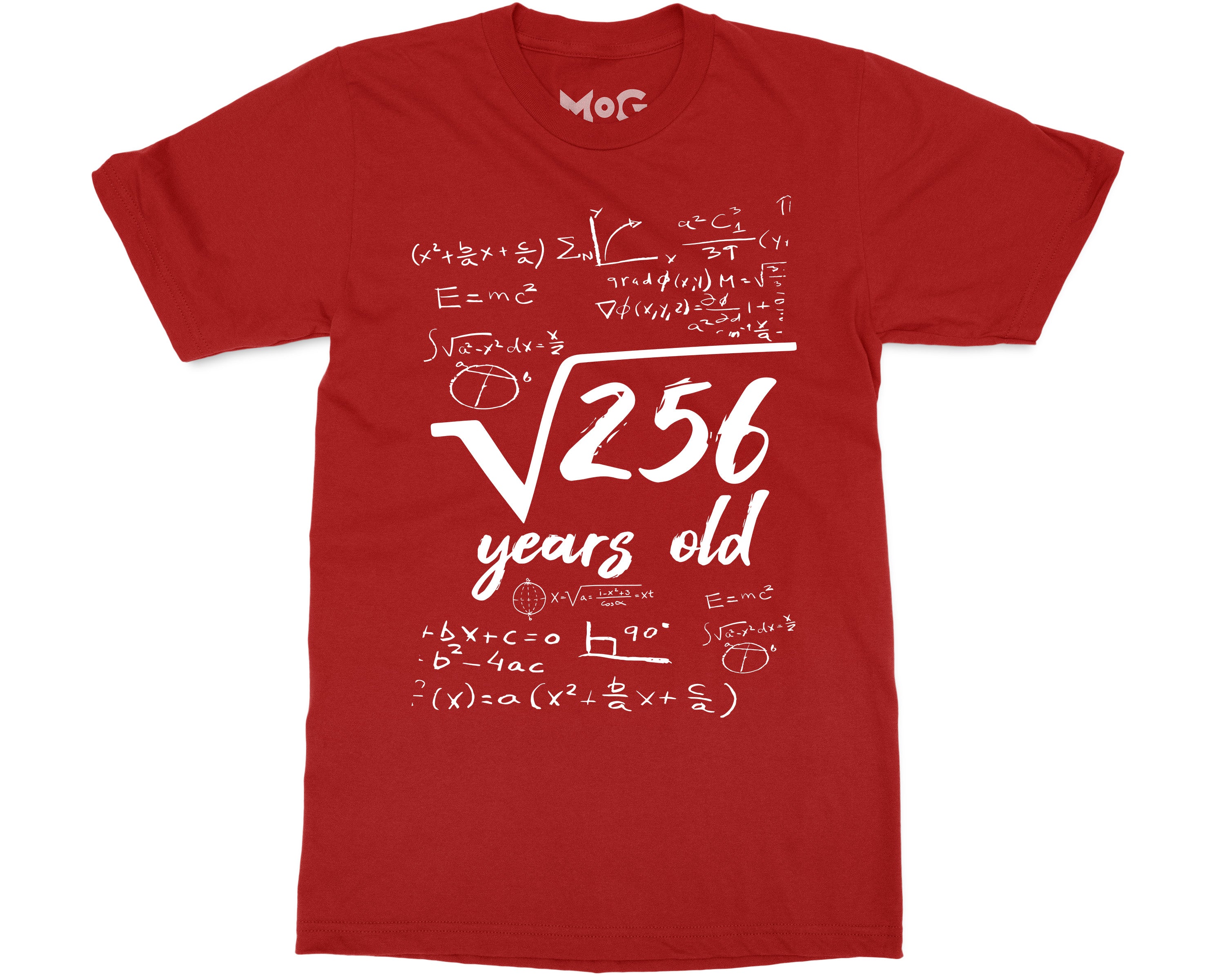 16th Birthday T-shirt Math Square Root 256 Tee 16 Years Old Bday Gifts