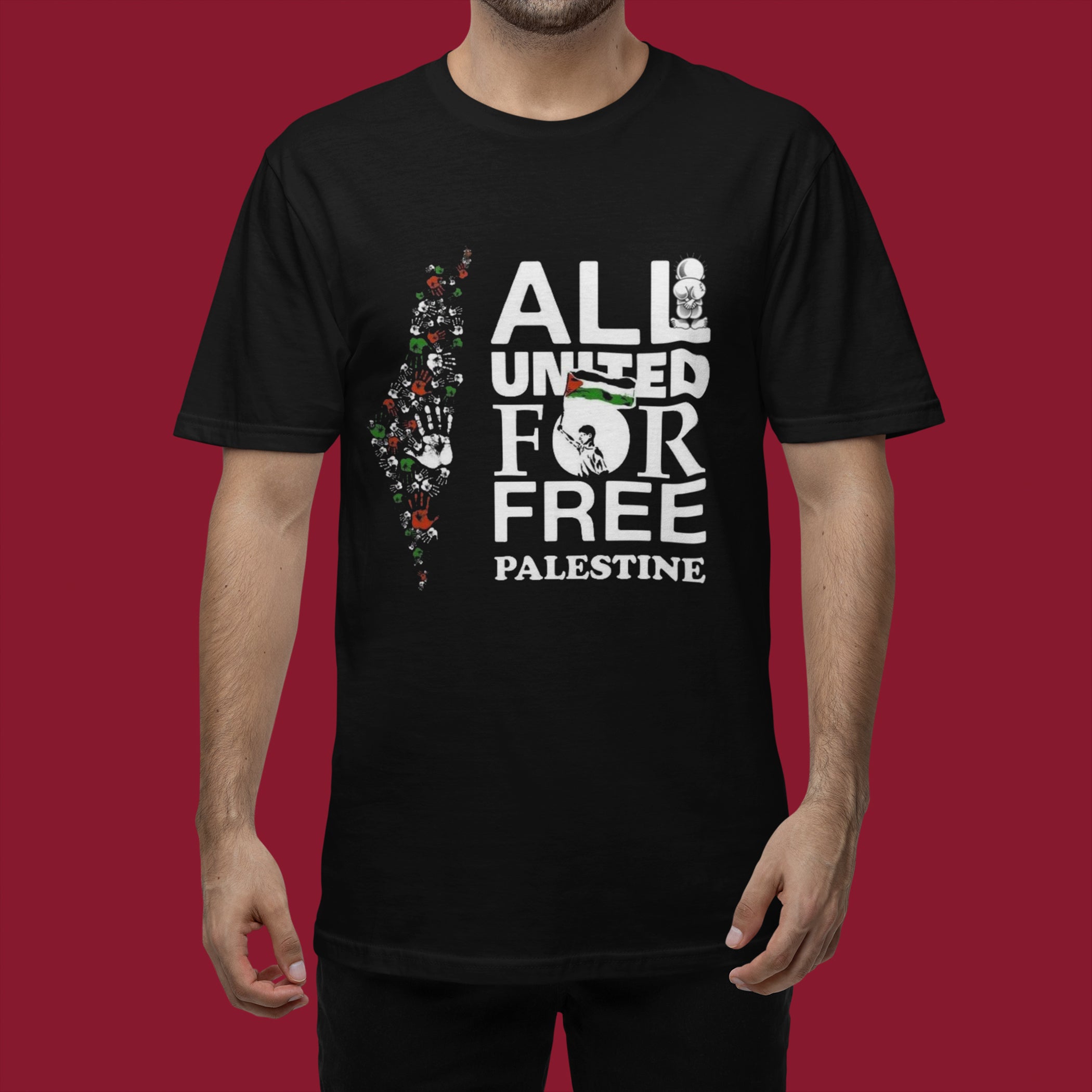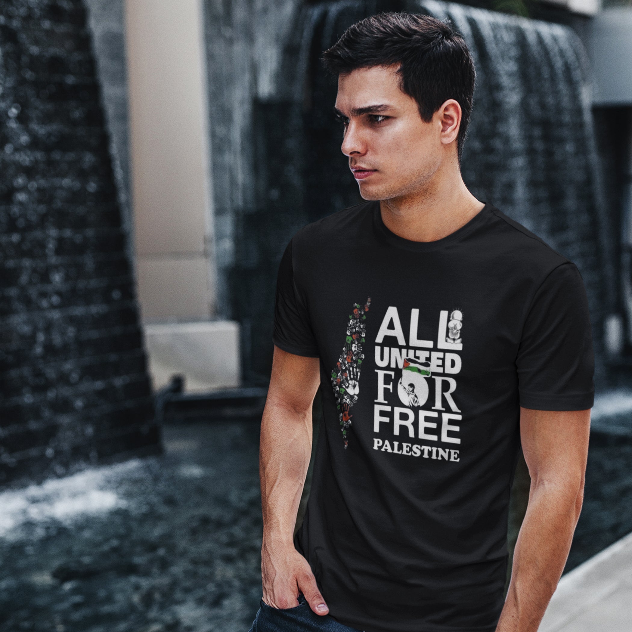 All United For Free Palestine Unity Solidarity Graphic Art T-shirt, Support Palestinian Cause Anti-War Political Awareness Gift Tee For Men