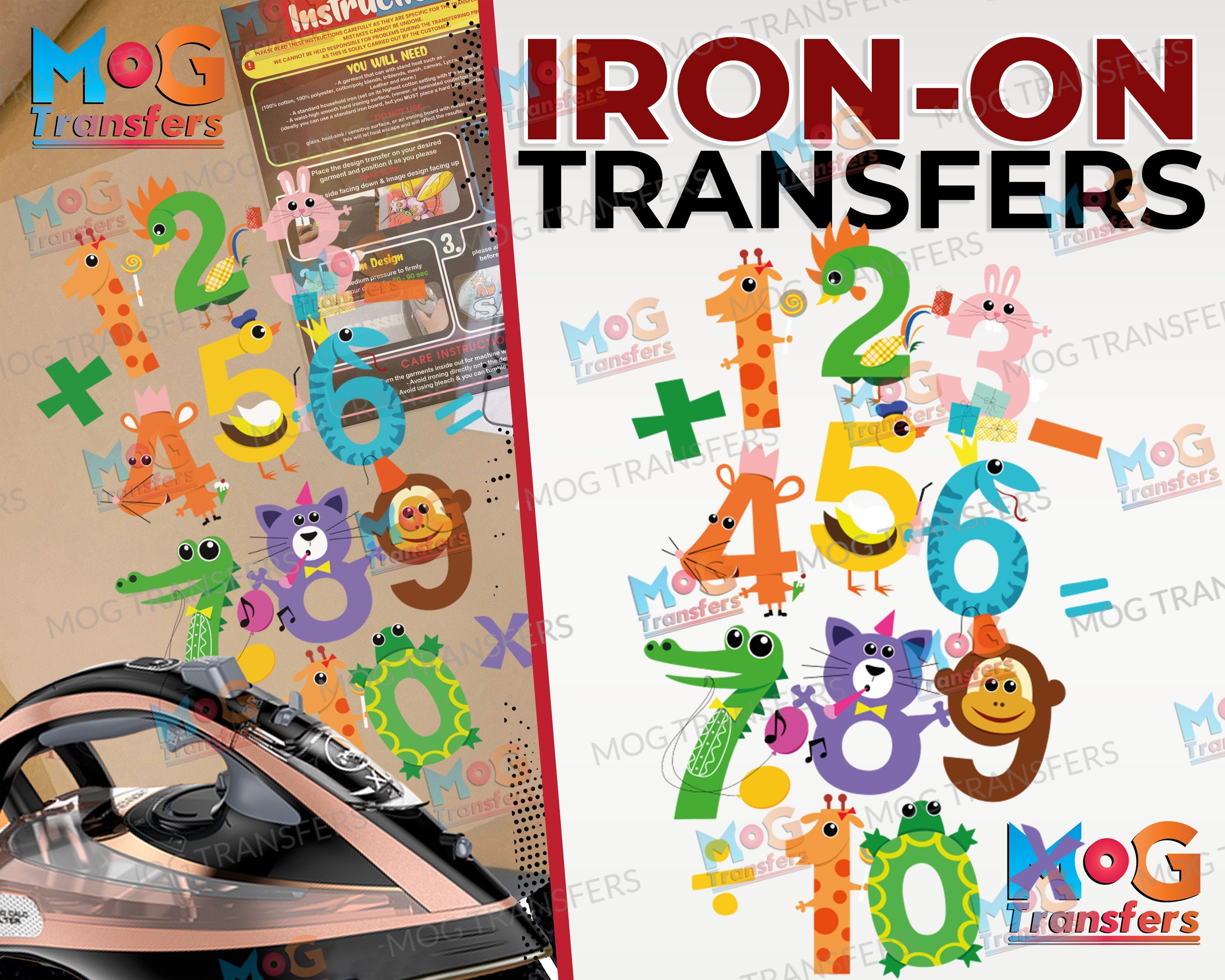 Animal Numbers Iron On World Math's Day Digit Numeracy Heat Transfers