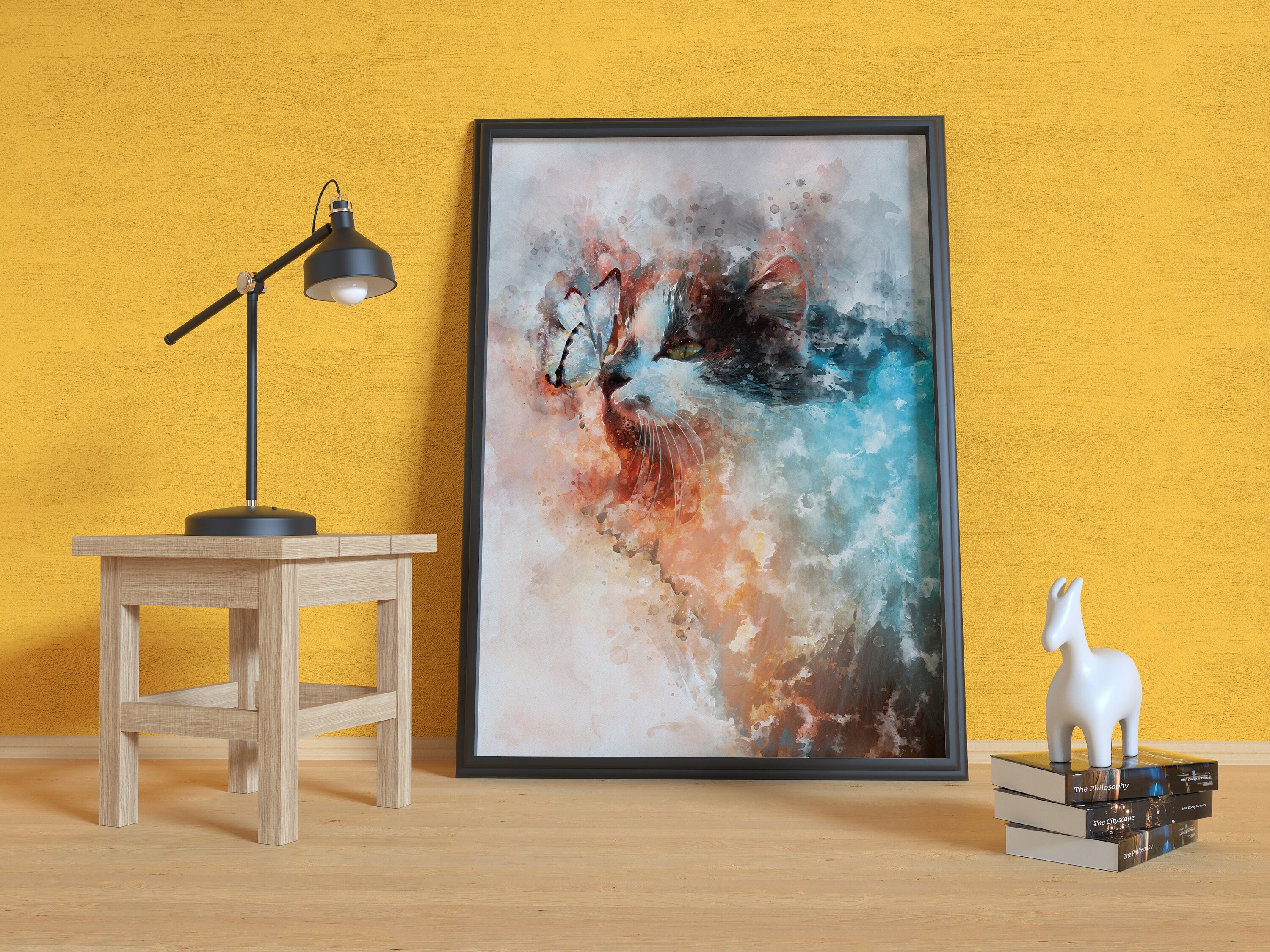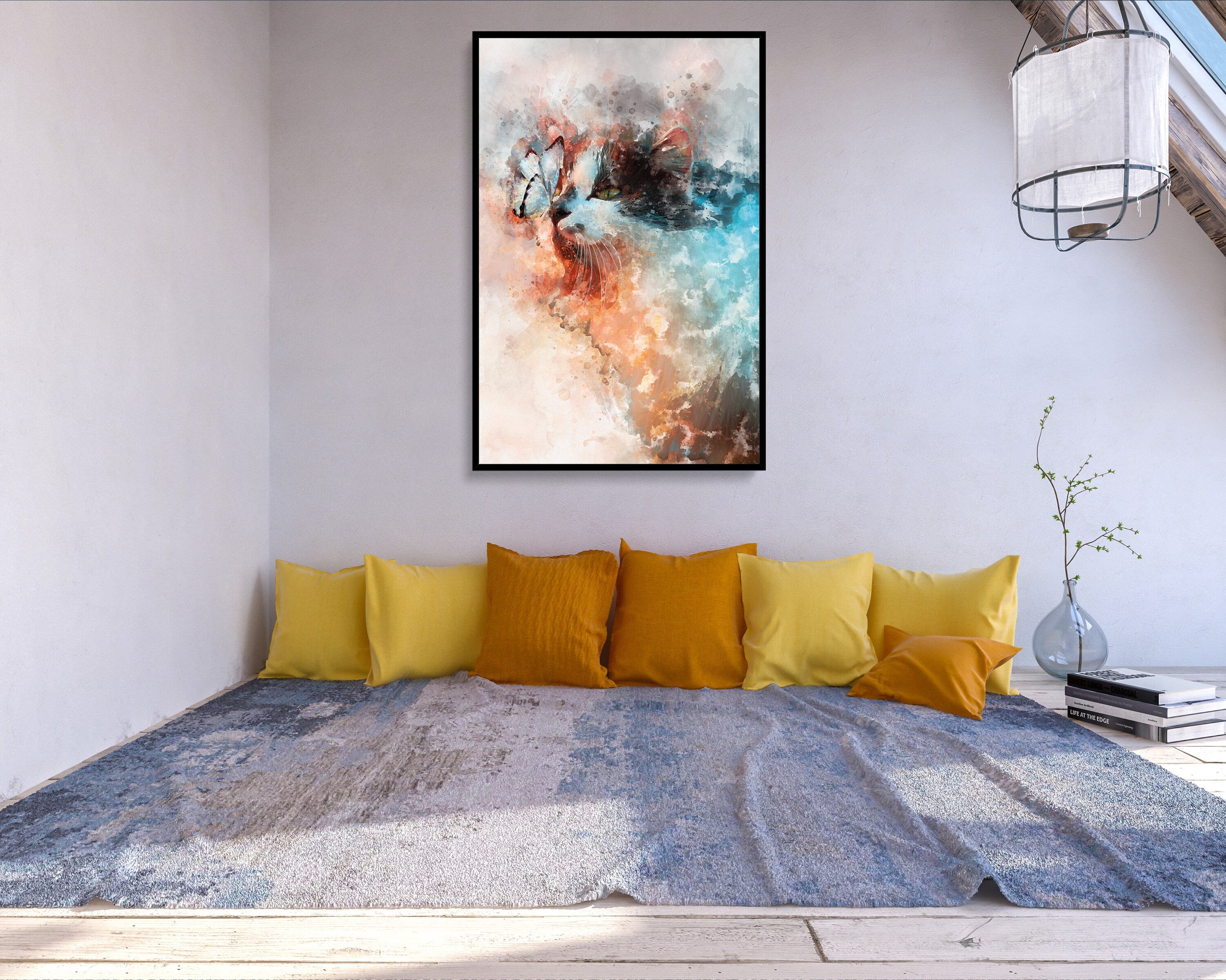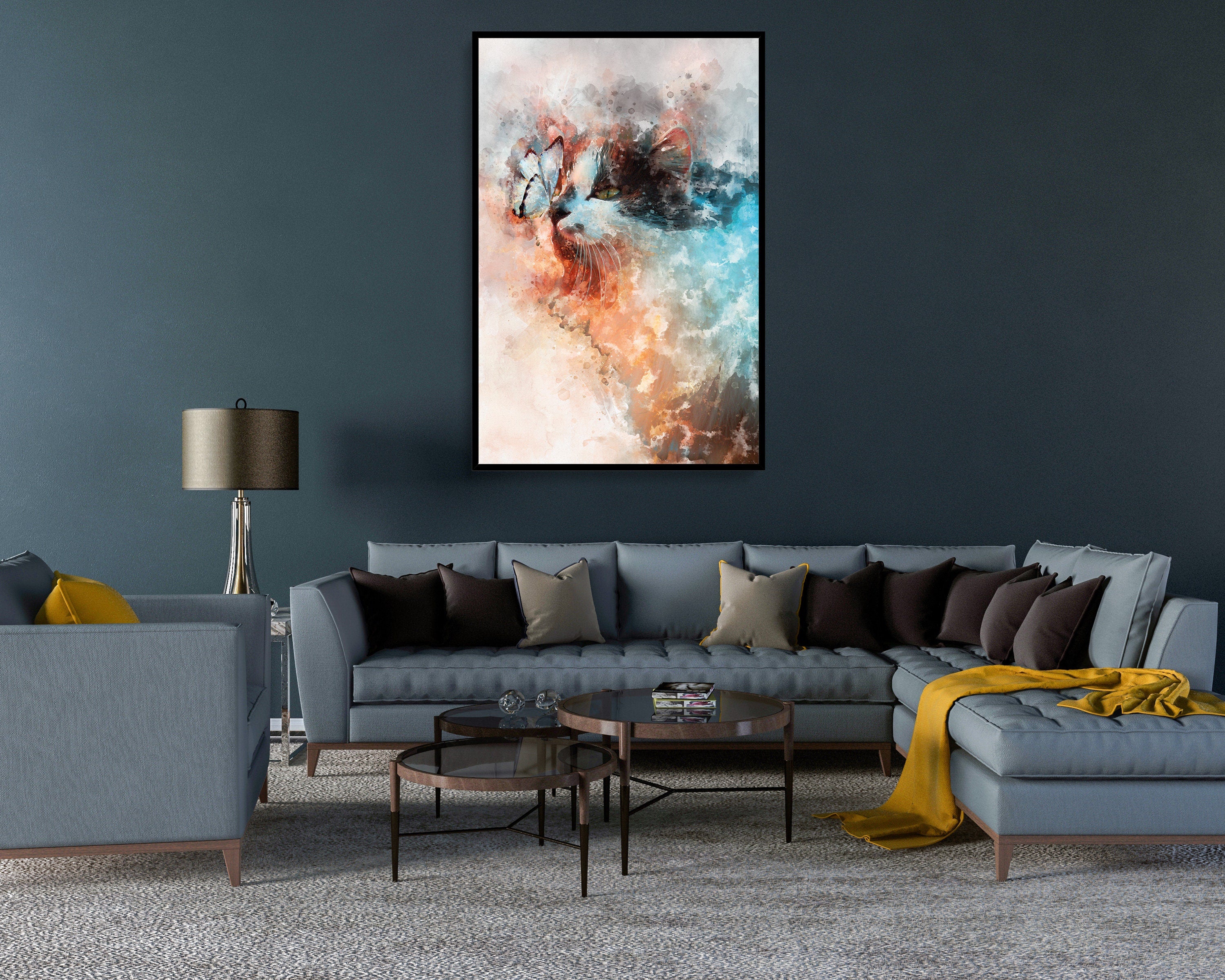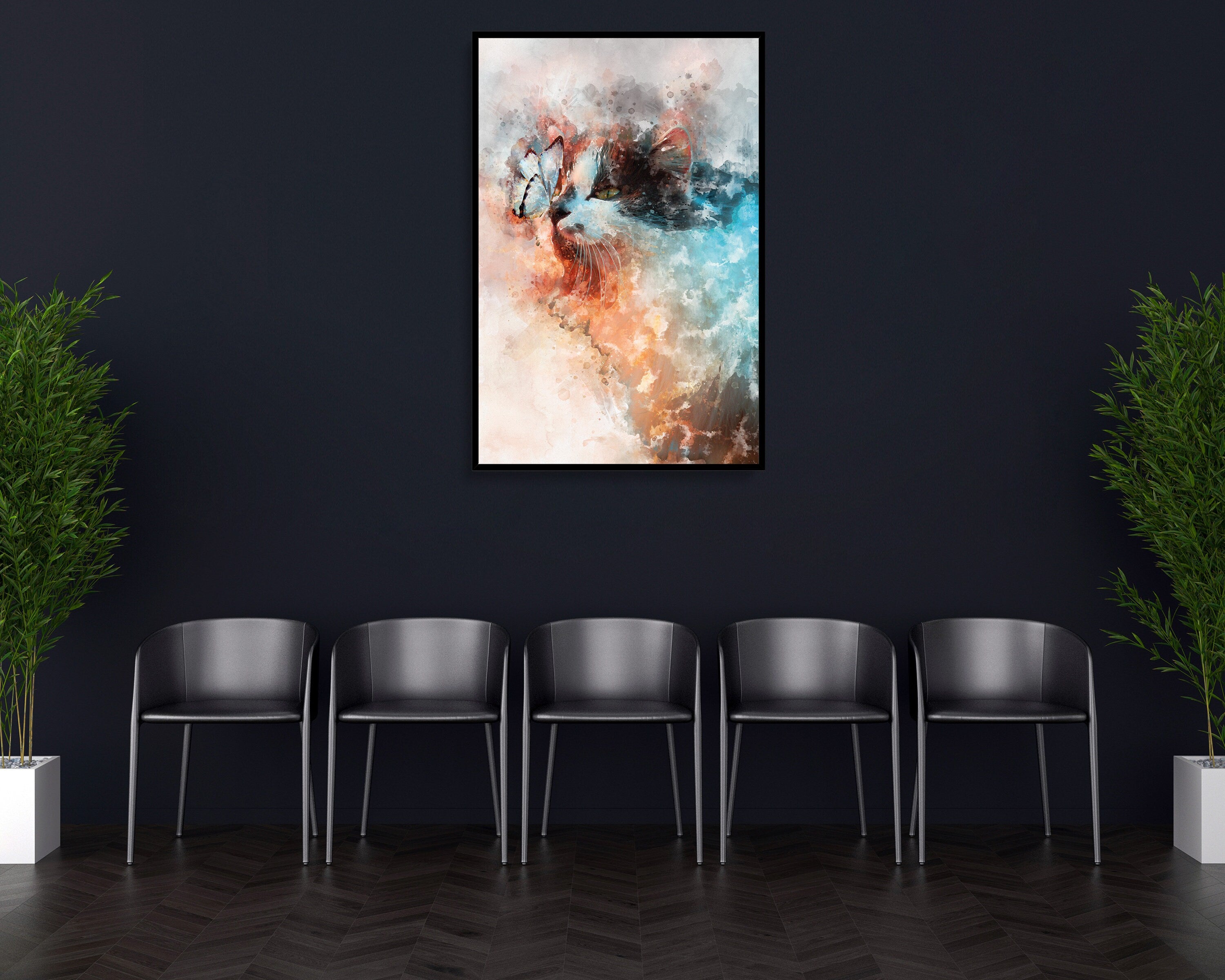 Design:> Made by spe3dy productions, one of a kind. Material:> Satin premium poster material 220 GSM / Mimaki original Eco Solv-Inks Art:> Real Butterfly & Cat mixed with watercolour effect Art, unique and different.