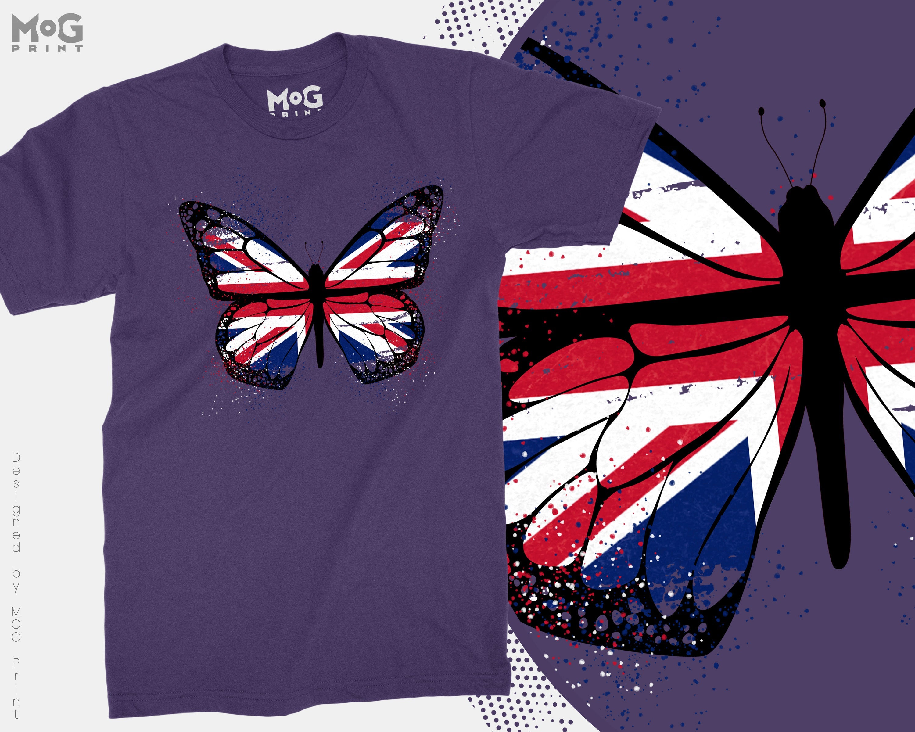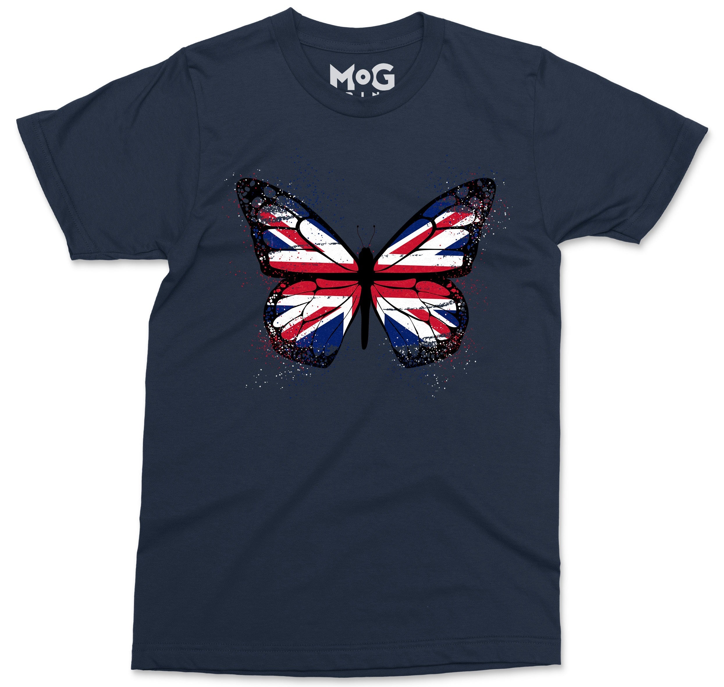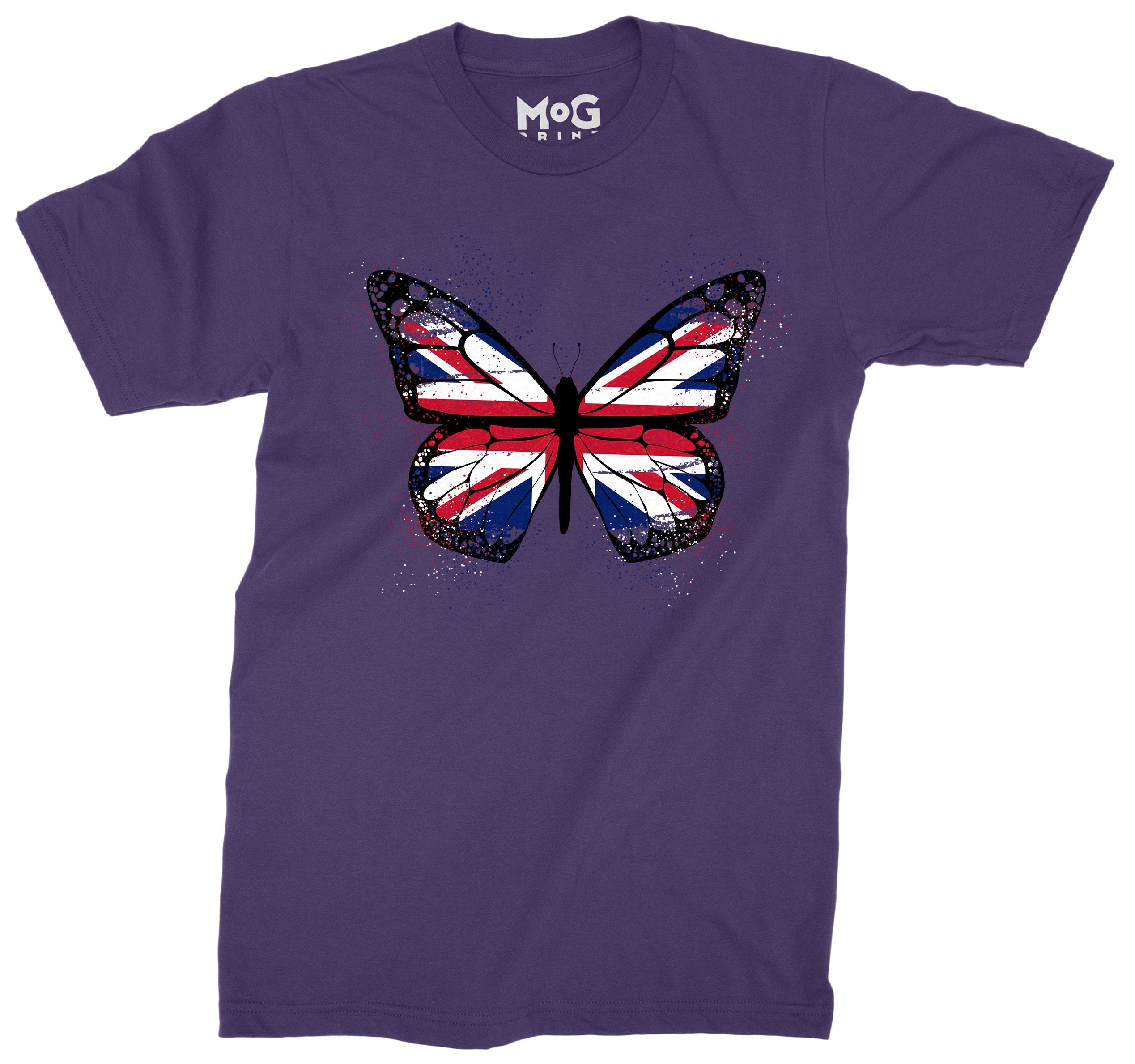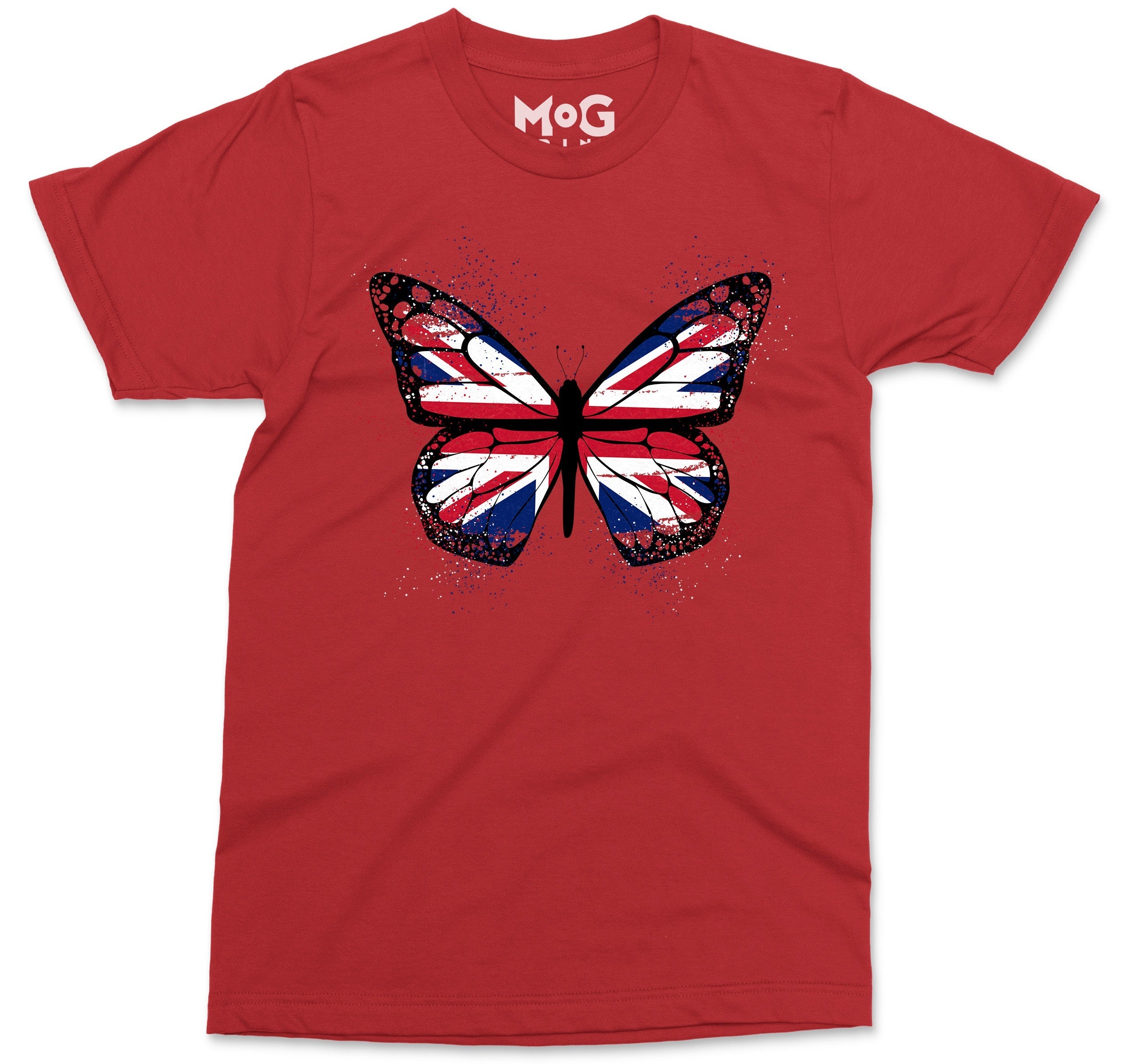 Butterfly UK Flag Graphic T-shirt, Union Jack England Tour Souvenir Memorabilia Gift Top For Men Women, Splash Streetwear Insect Tee