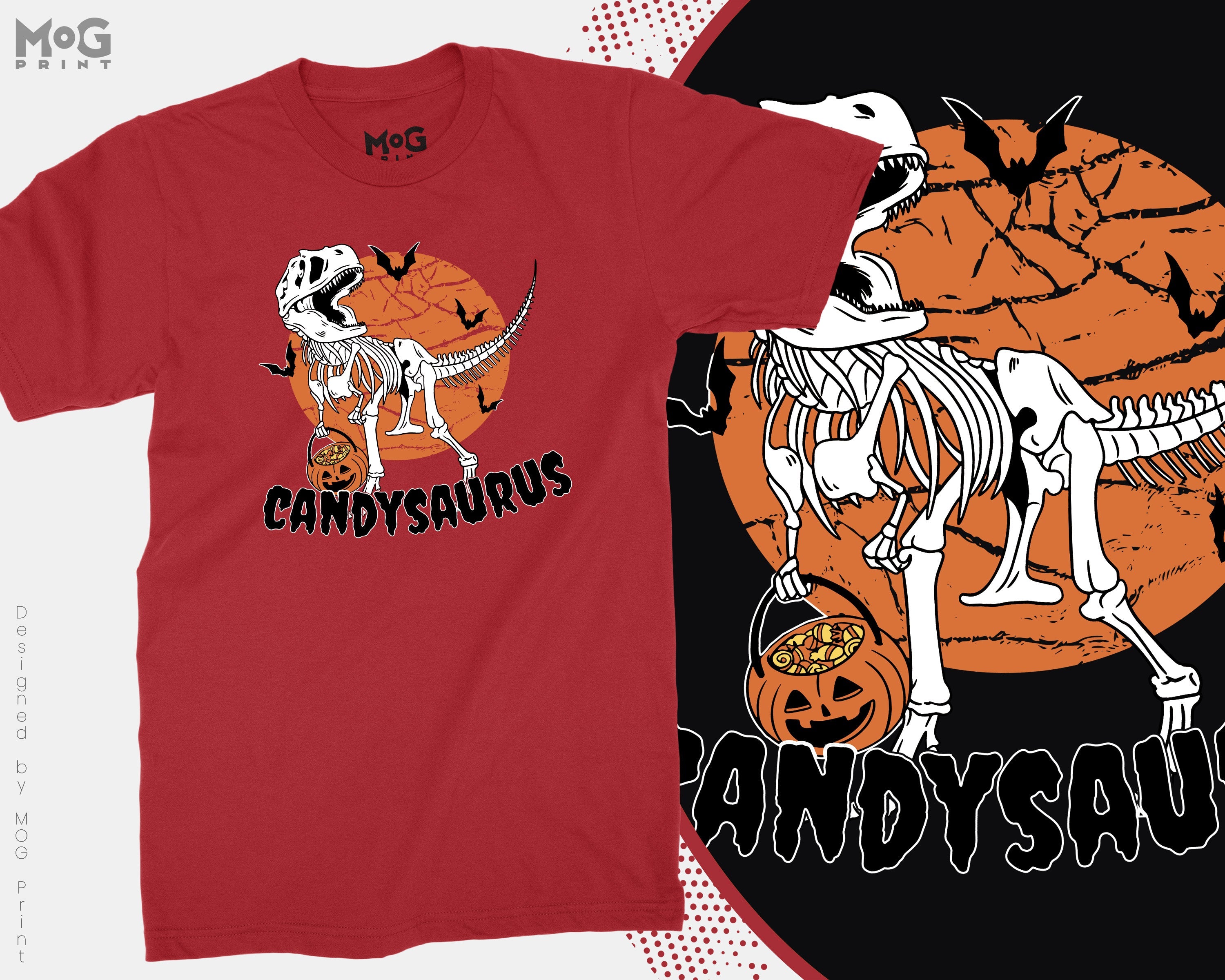 Candysaurus Halloween Shirt, Funny Skeleton Dinosaur T-shirt Halloween Gift 2025, Halloween Scary Horror Outfit, Unisex Costume Tee