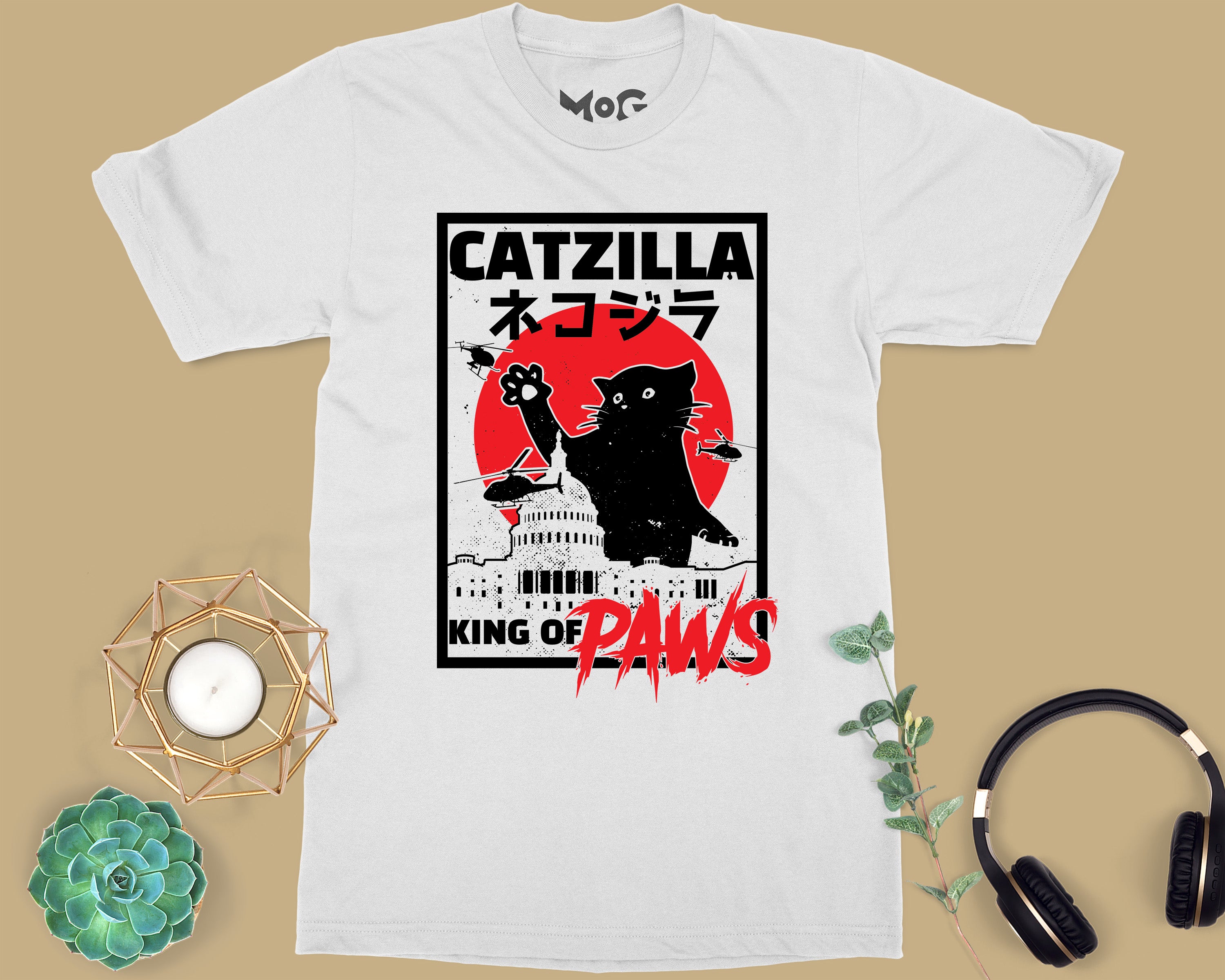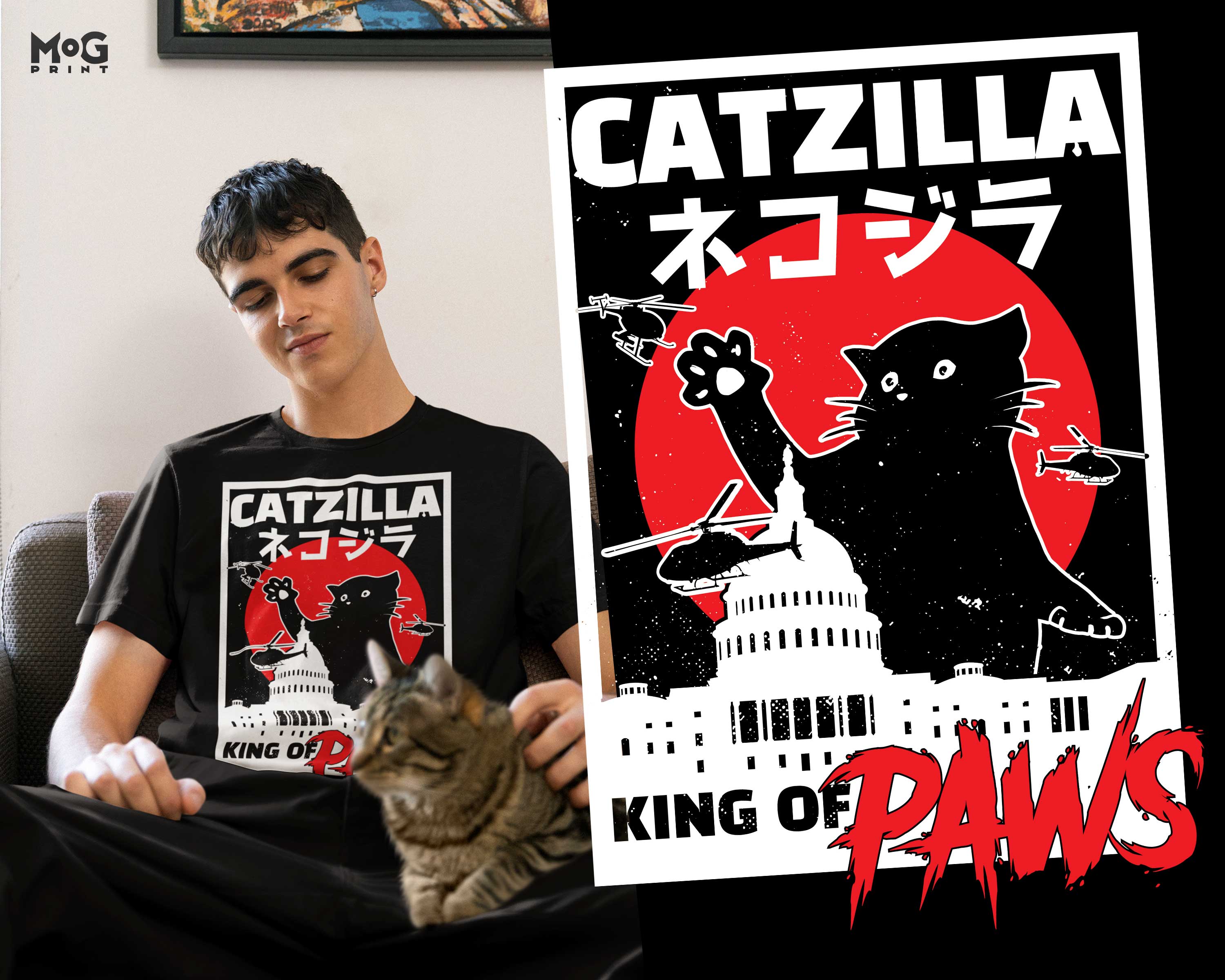 Catzilla Retro Japanese Movie Parody T-shirt Cat Film Kitty Monster Pet Lover Gift Tee