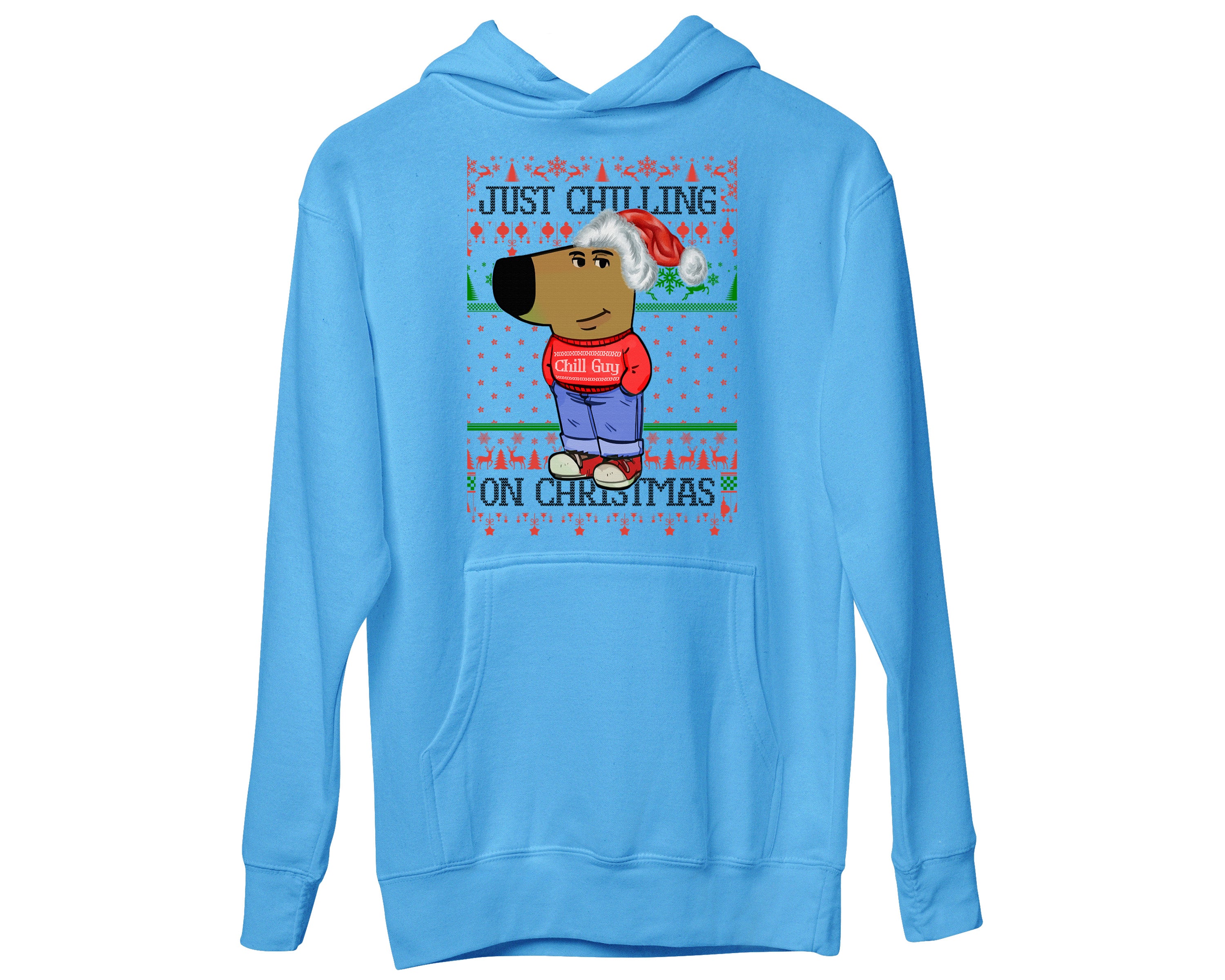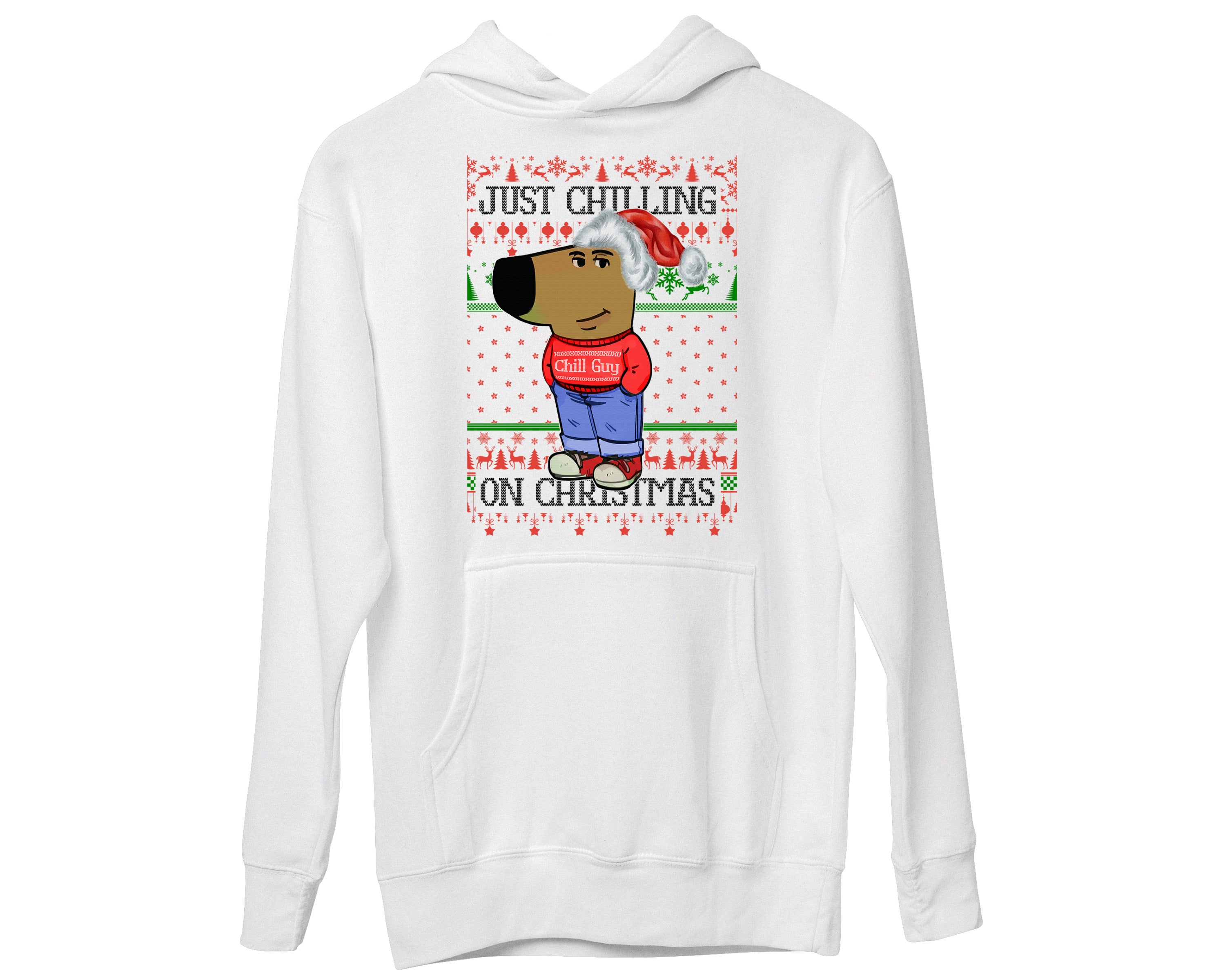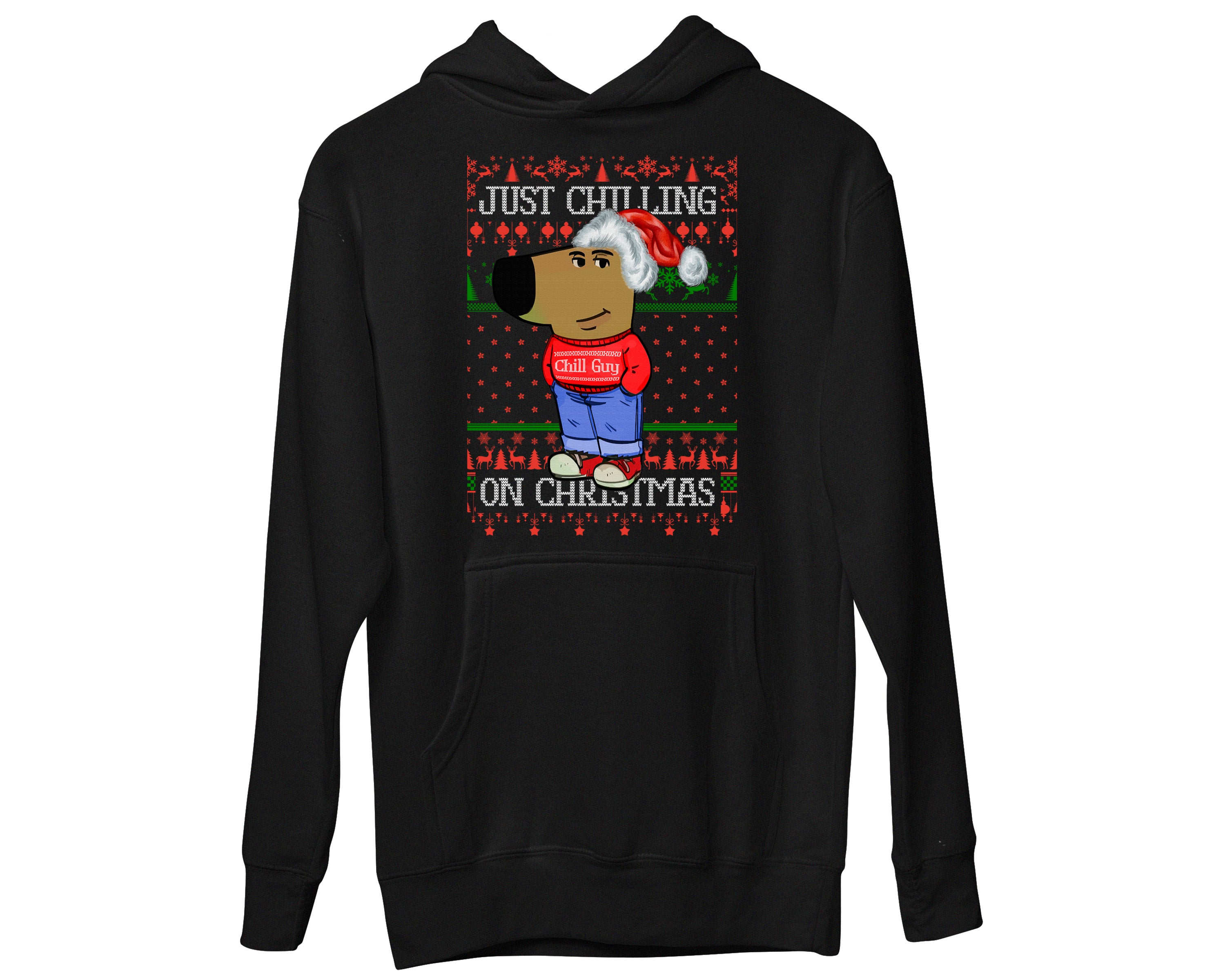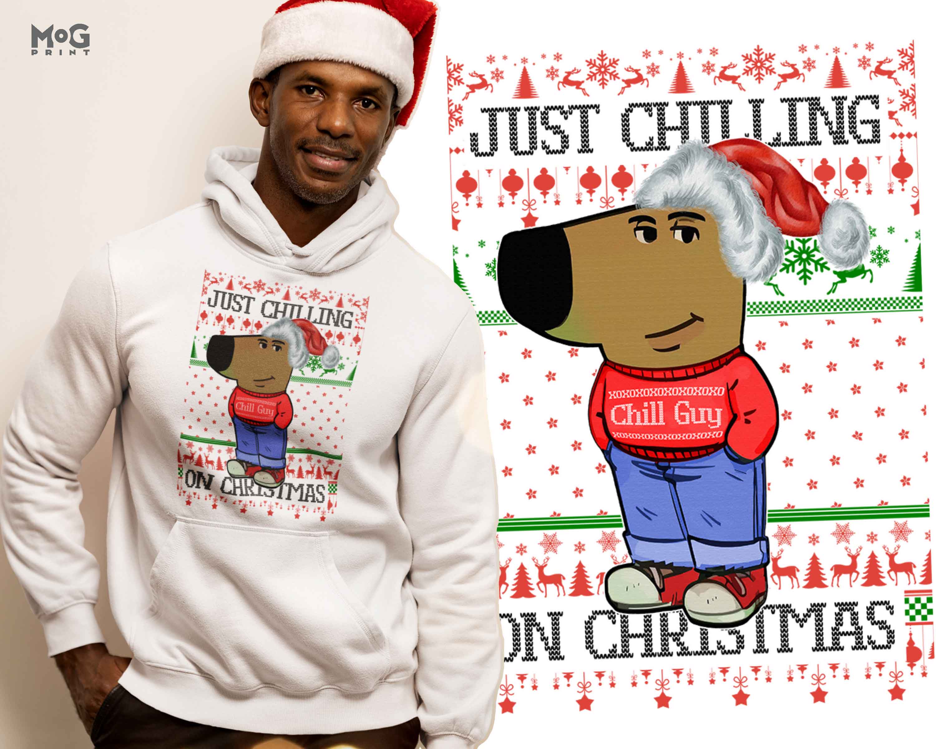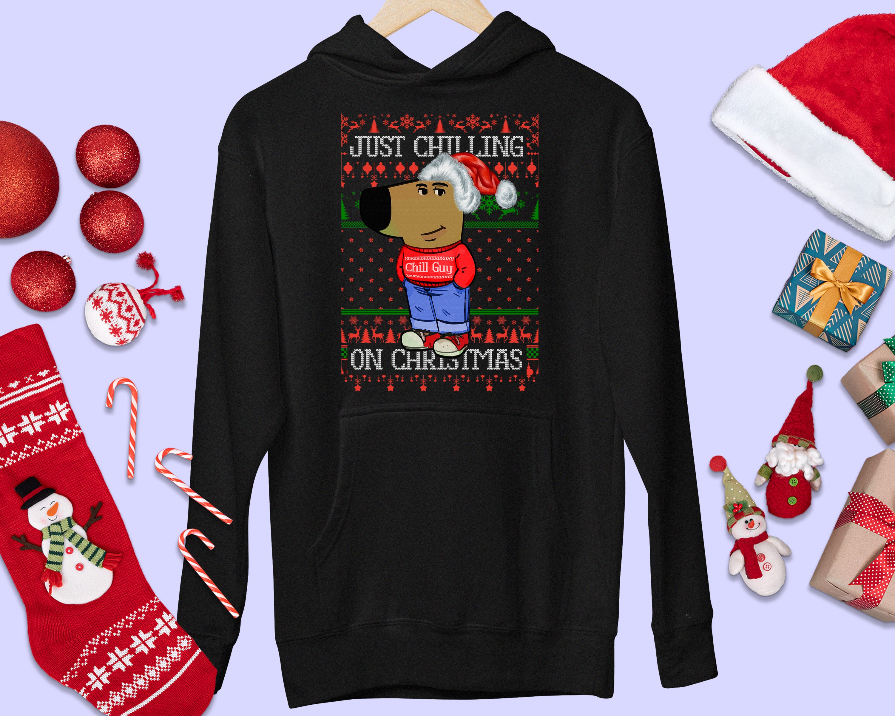 Chill Guy Christmas Hoodie Viral Cartoon Dog Meme Hoody Funny Xmas Top