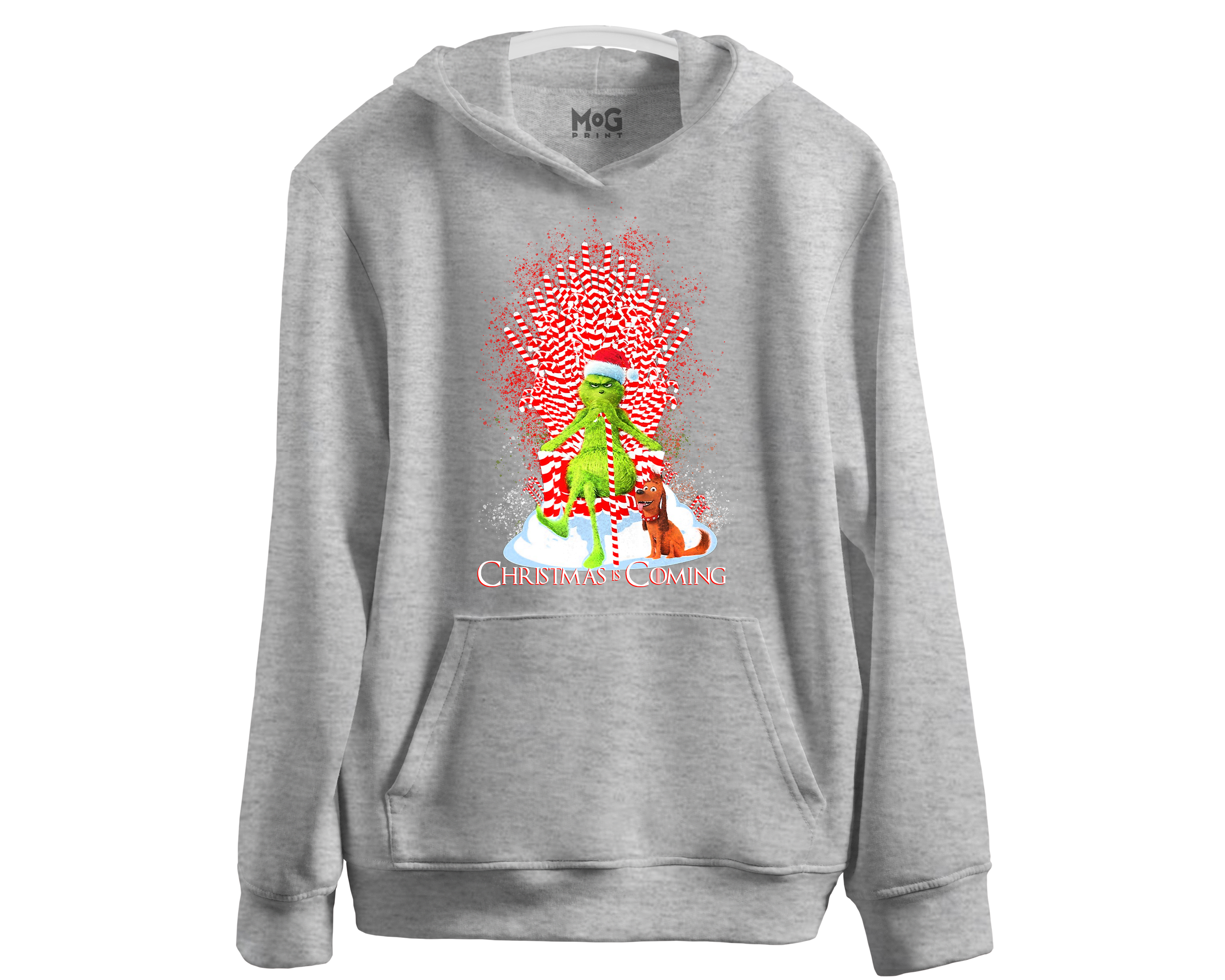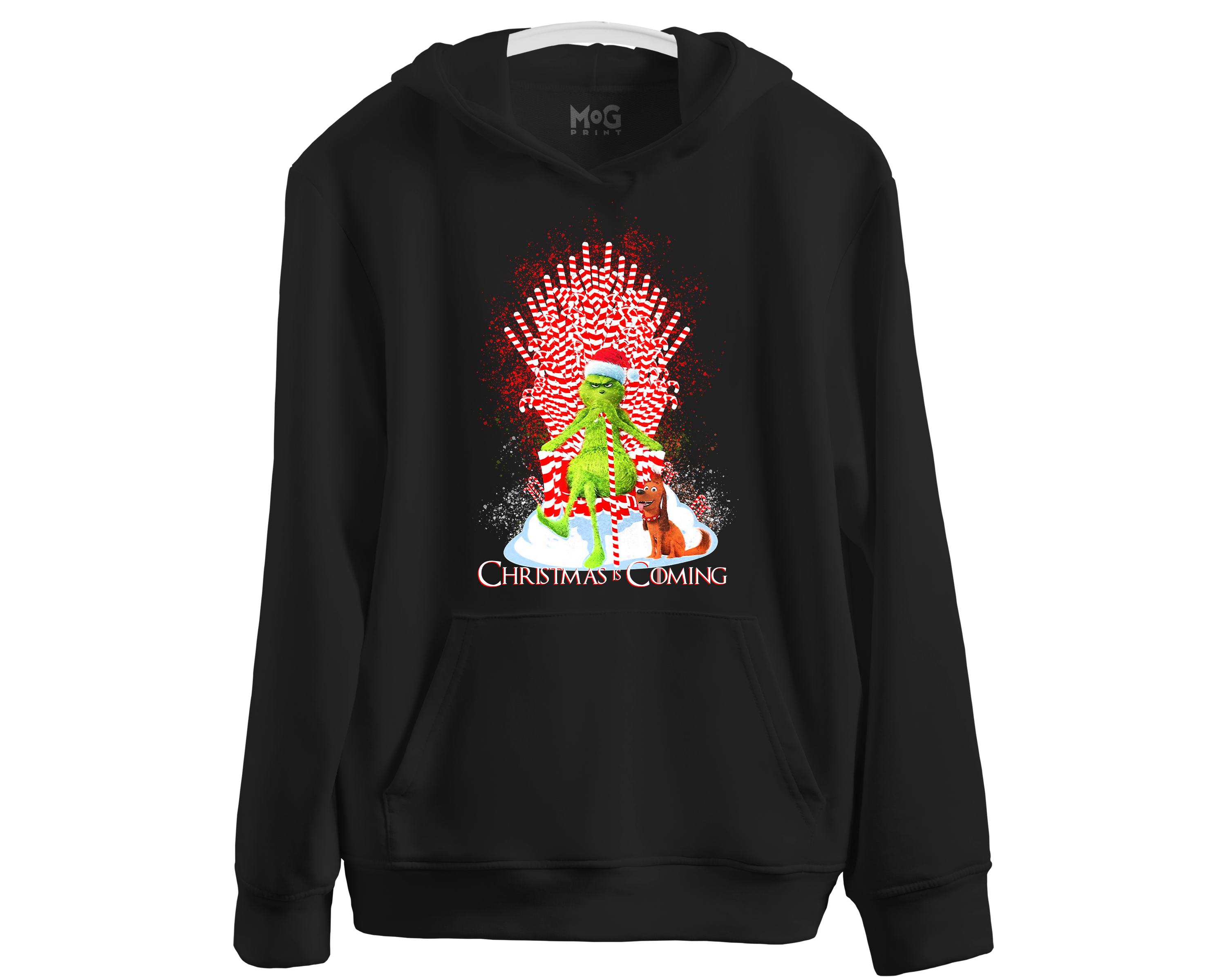 Christmas Is Coming Hoodie Grinch on Candy Cane Throne Hoody Funny Xmas Gifts