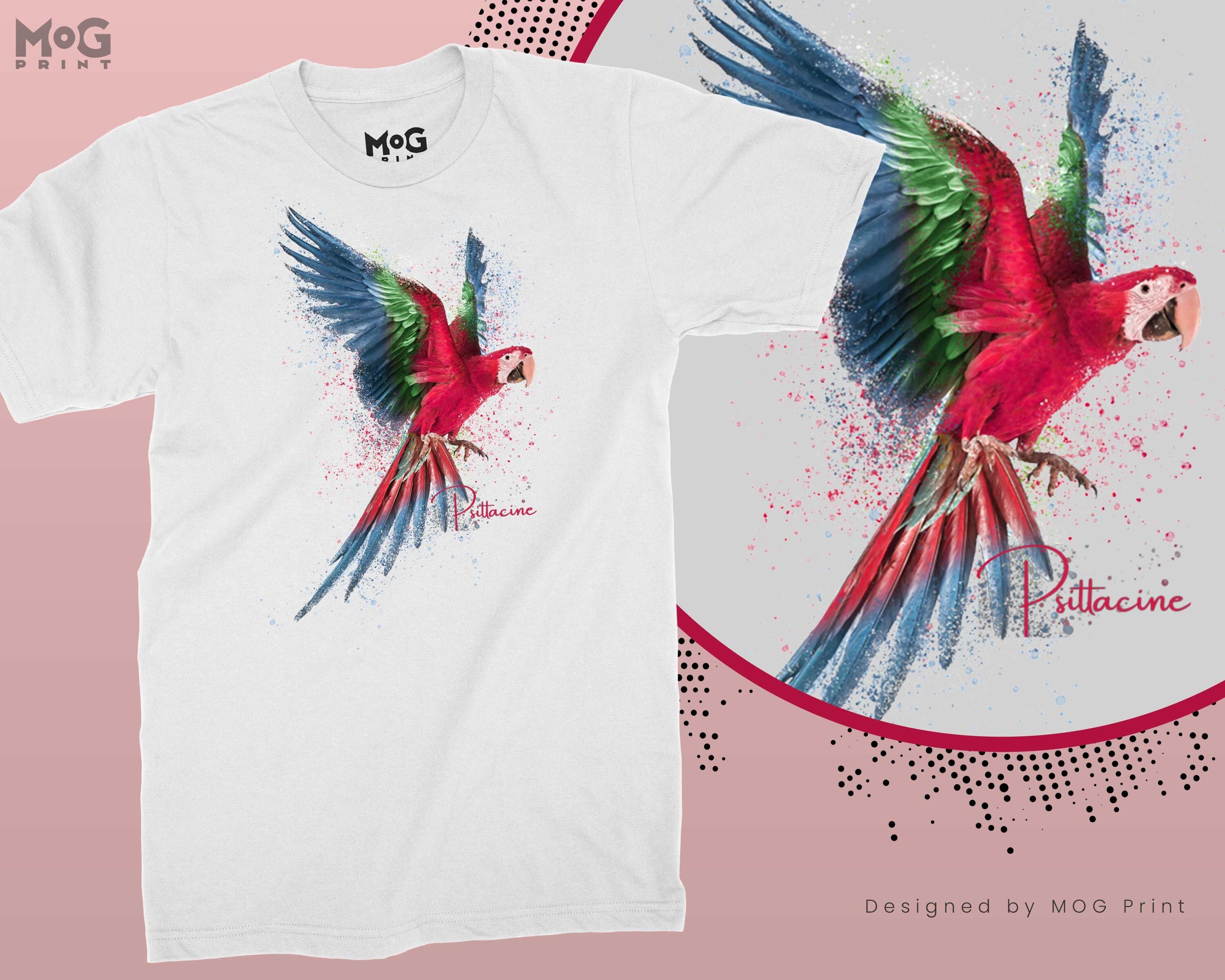 Colourful Parrot Art T-shirt Exotic Rare Birds Gift Tee for Birdwatcher