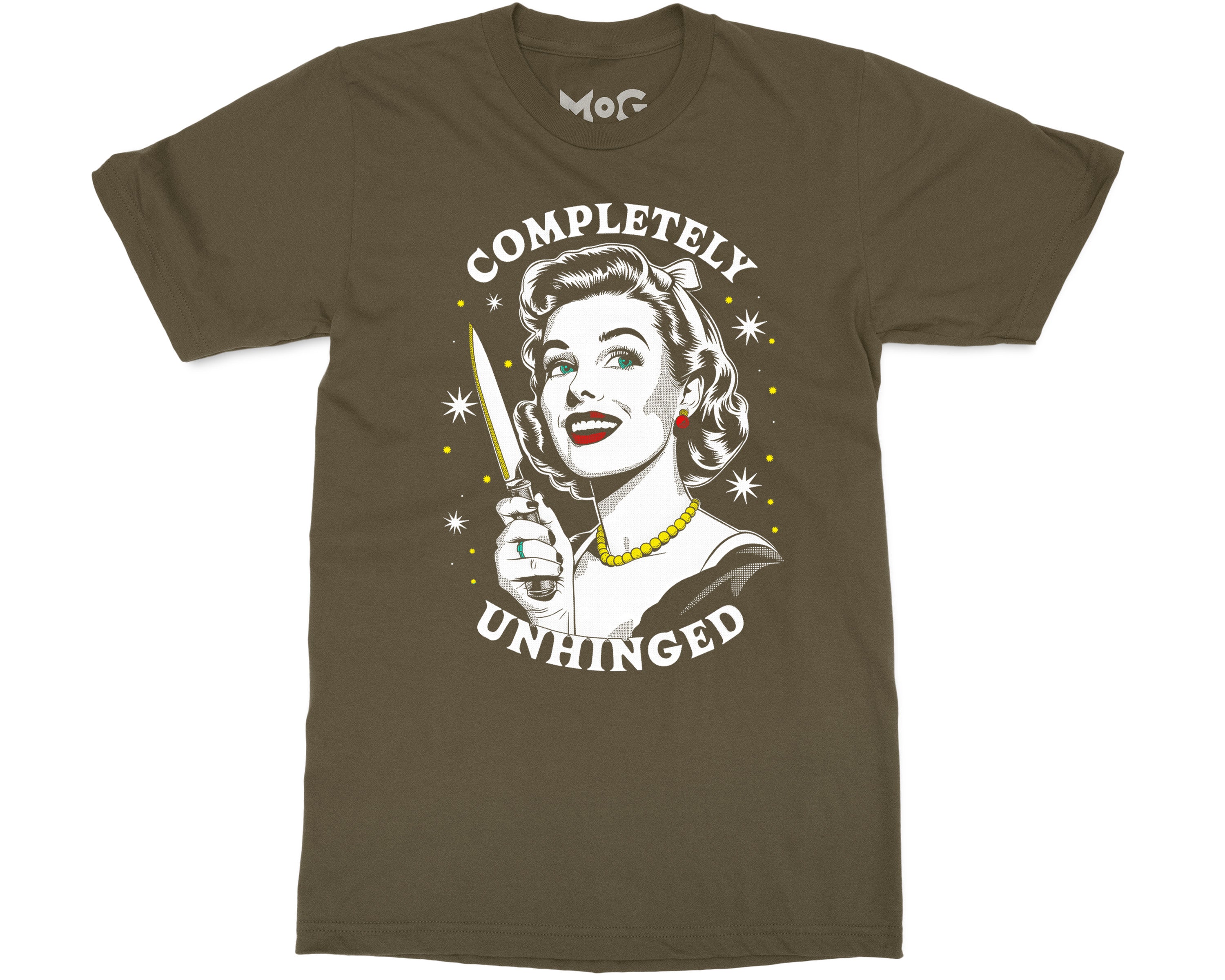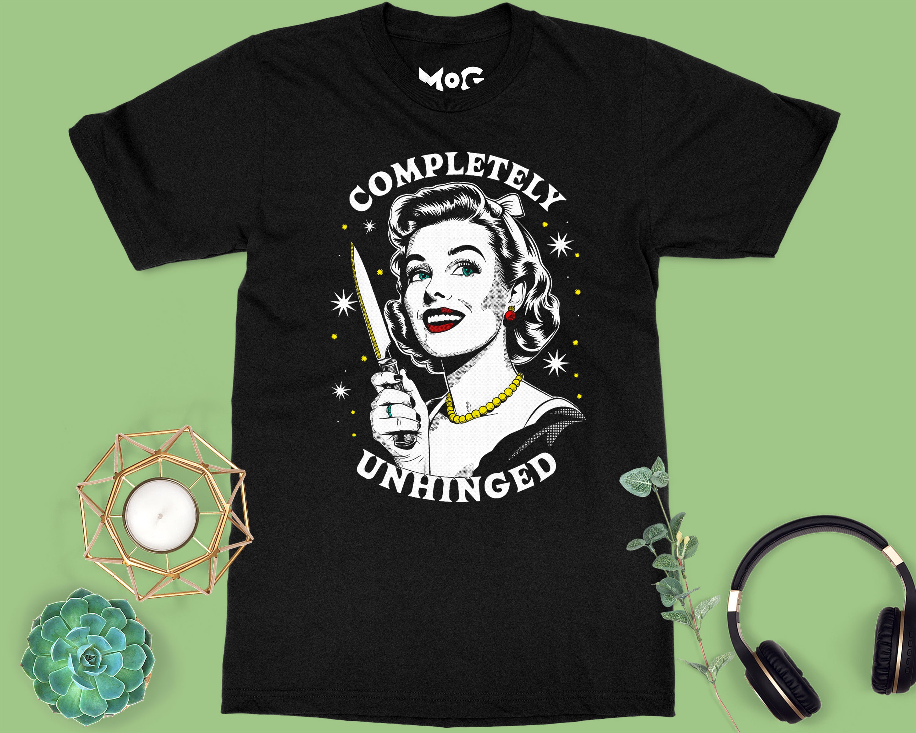 Completely Unhinged T-shirt Funny Housewife with Knife Meme Gift Tee