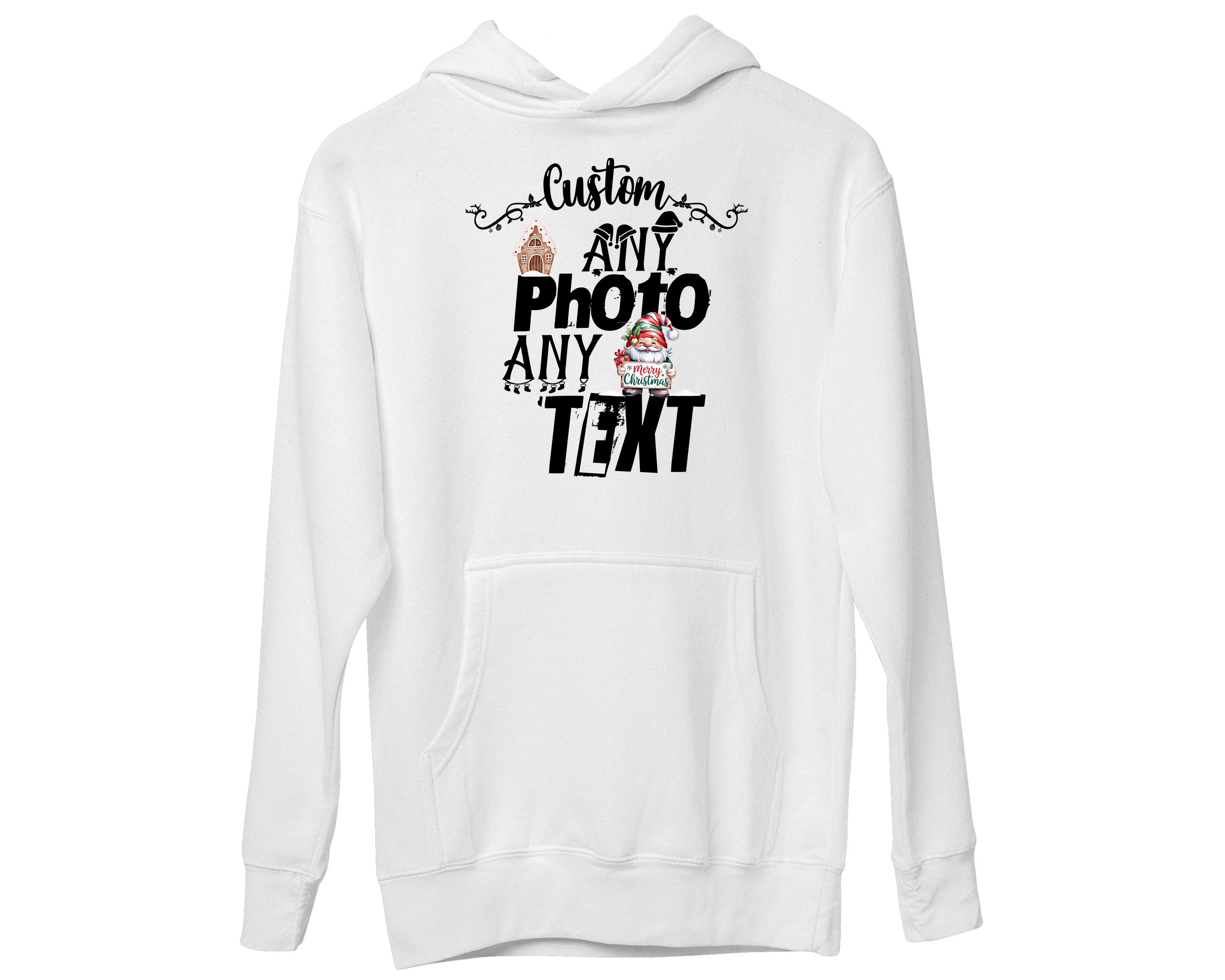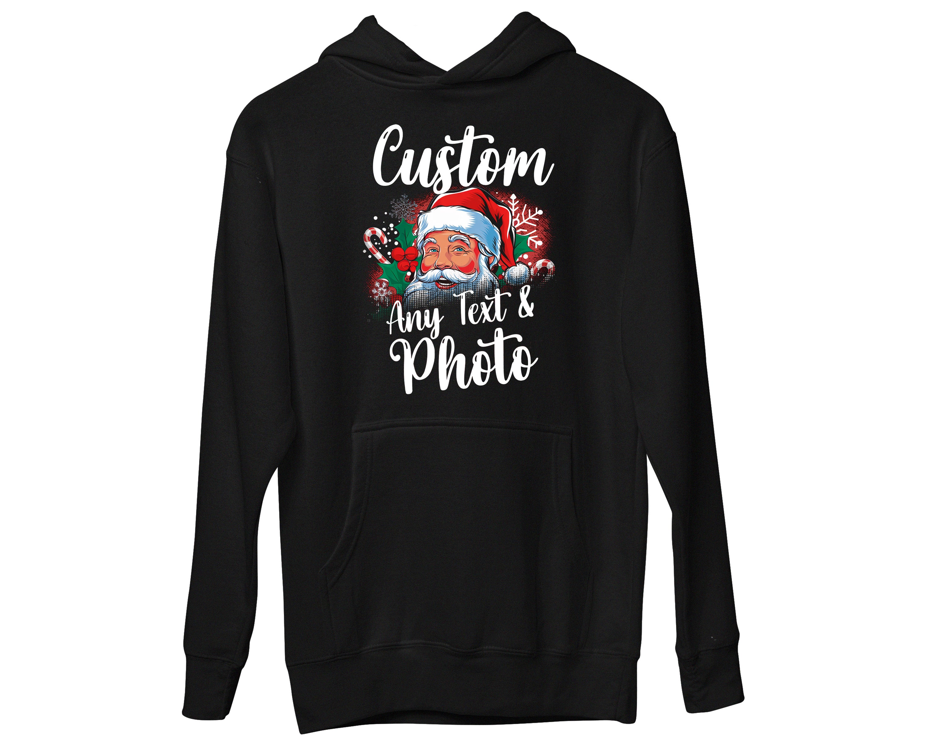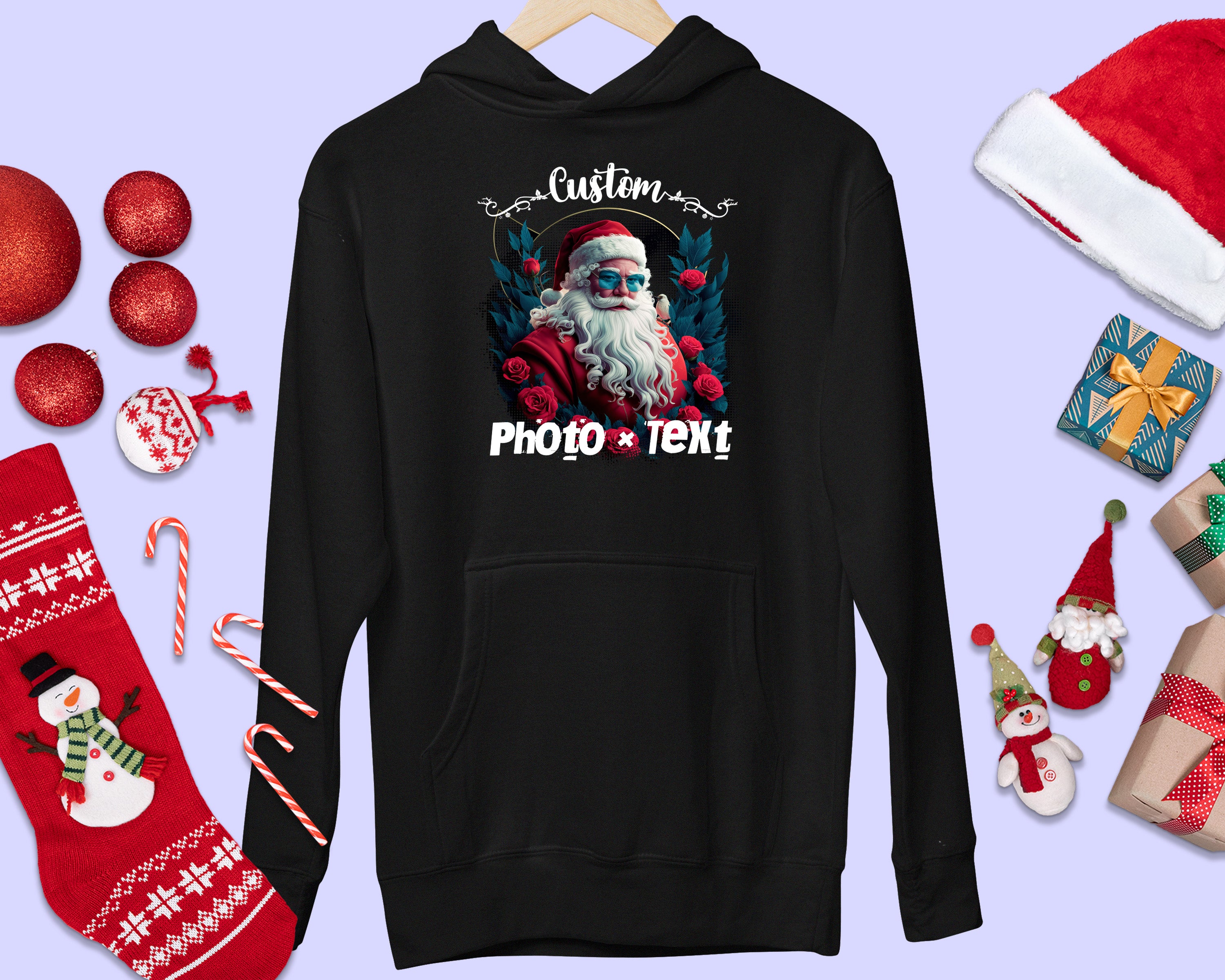 Custom Christmas Theme Santa Face Family Matching Photo Text Hoodies