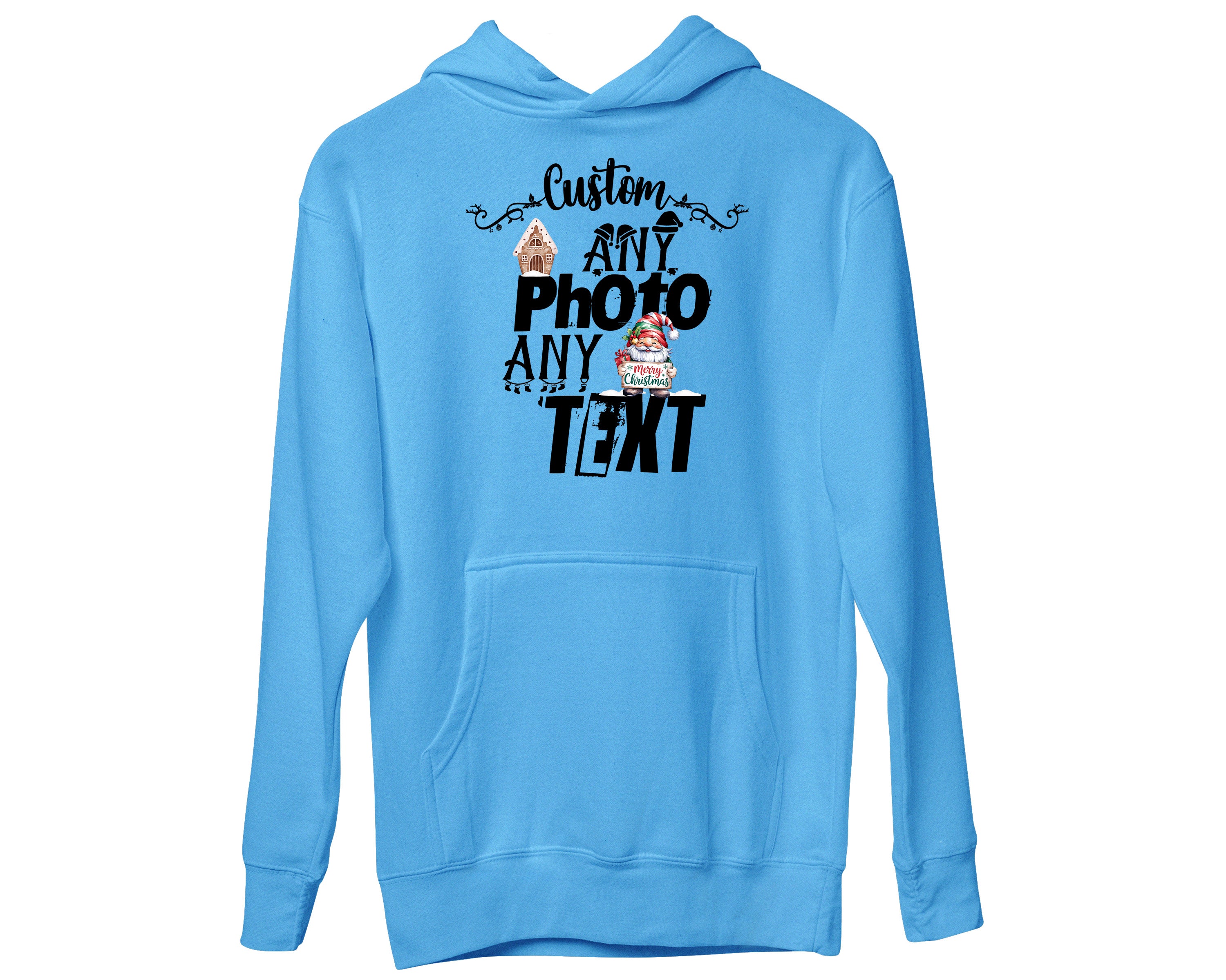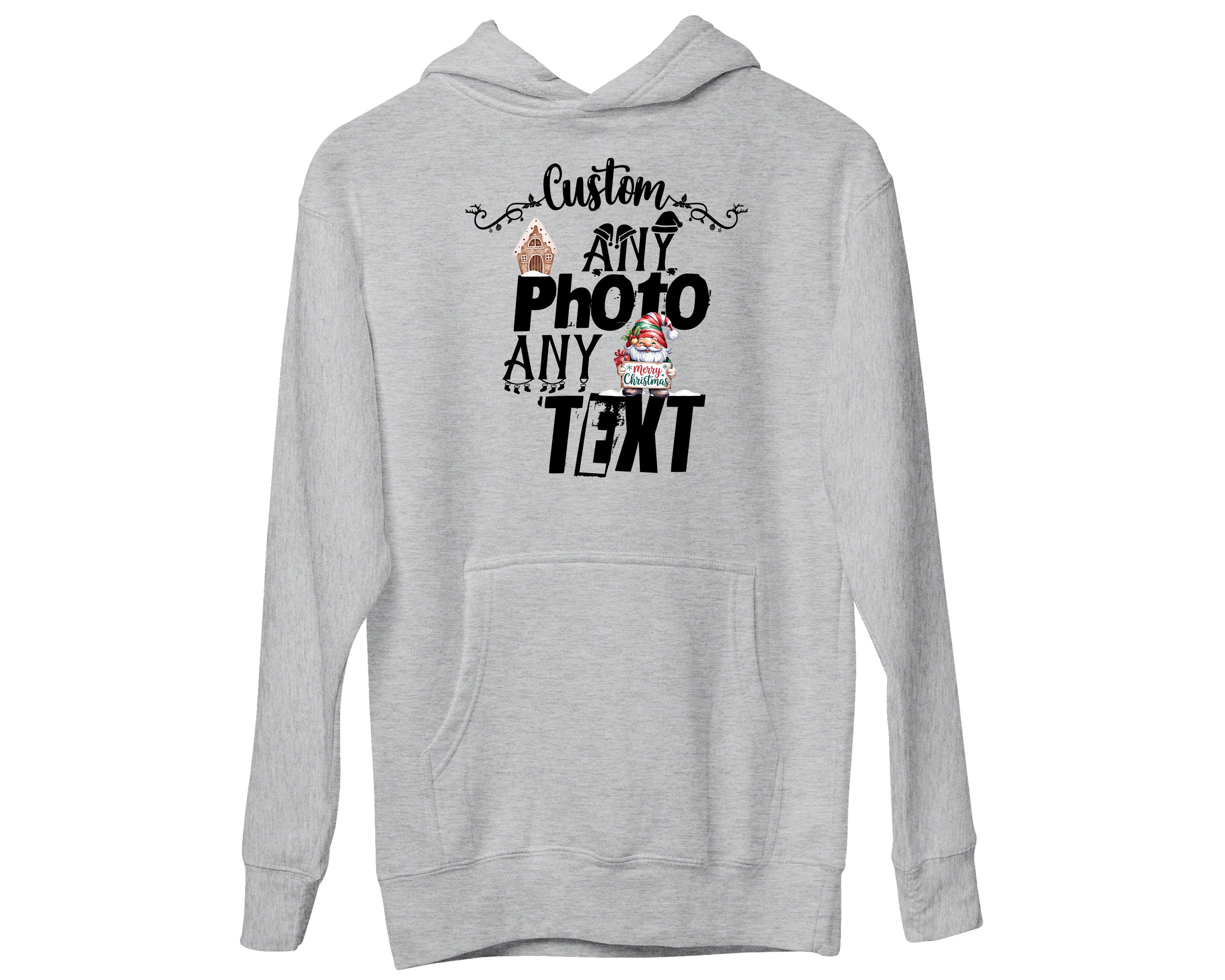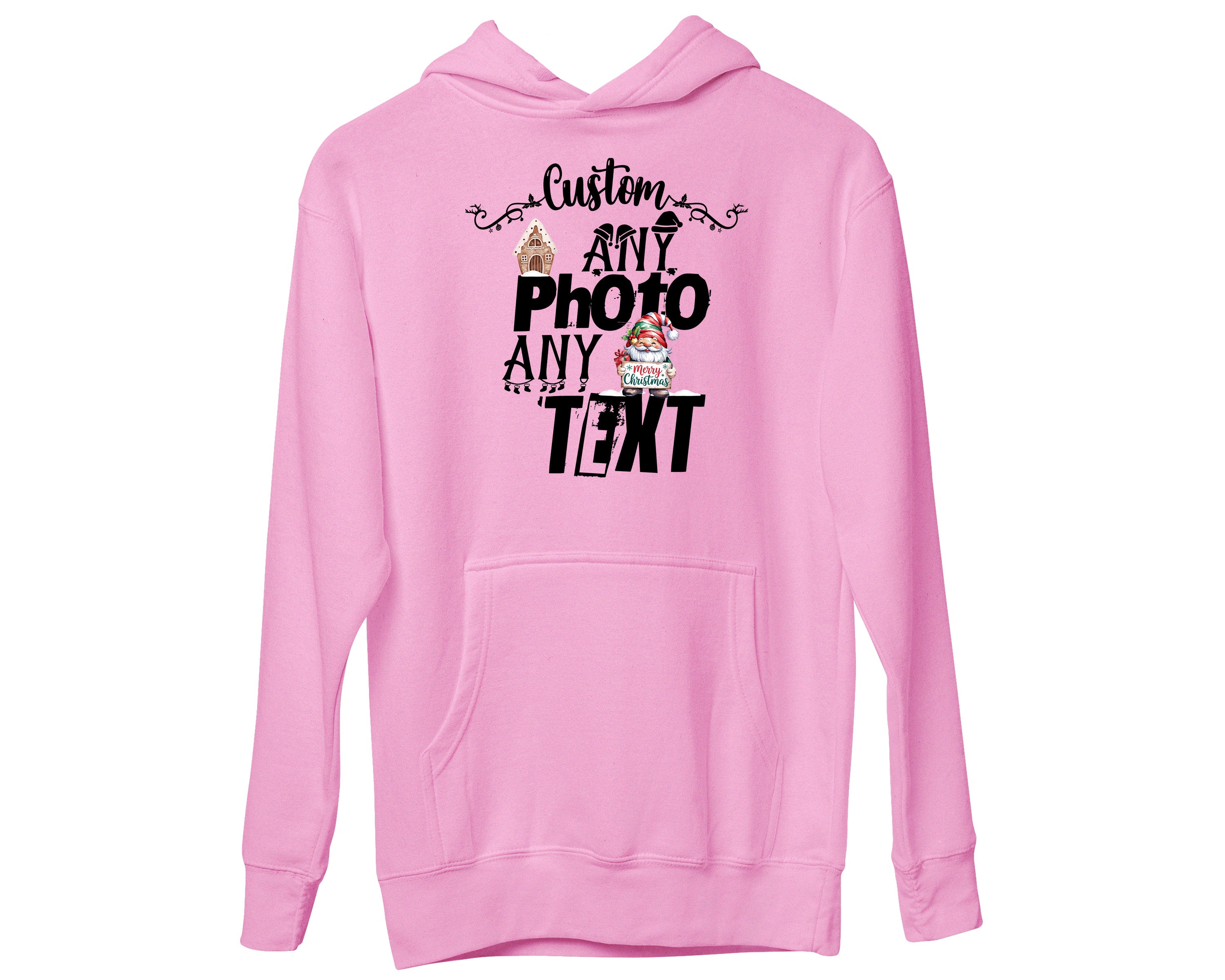 Custom Christmas Theme Santa Face Family Matching Photo Text Hoodies
