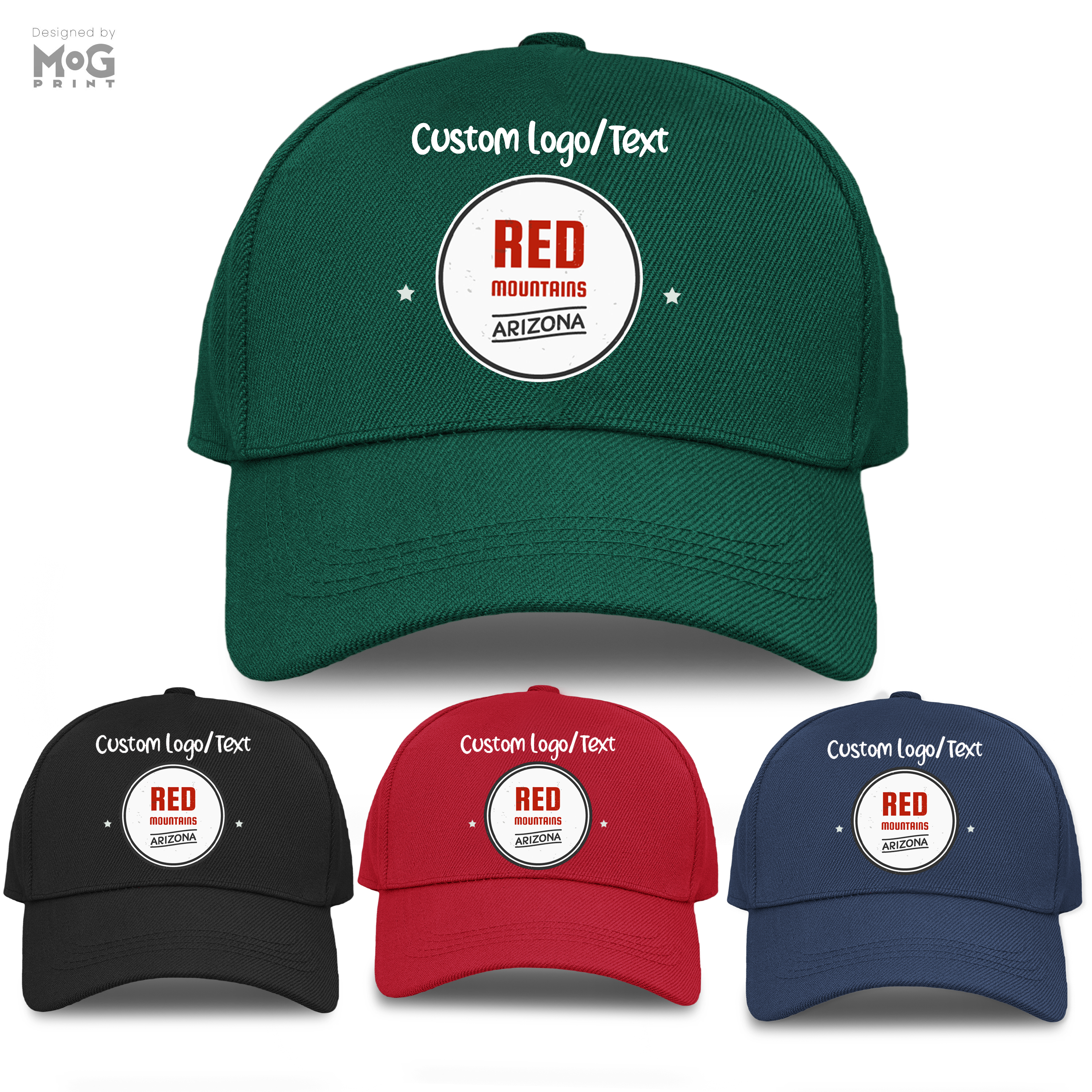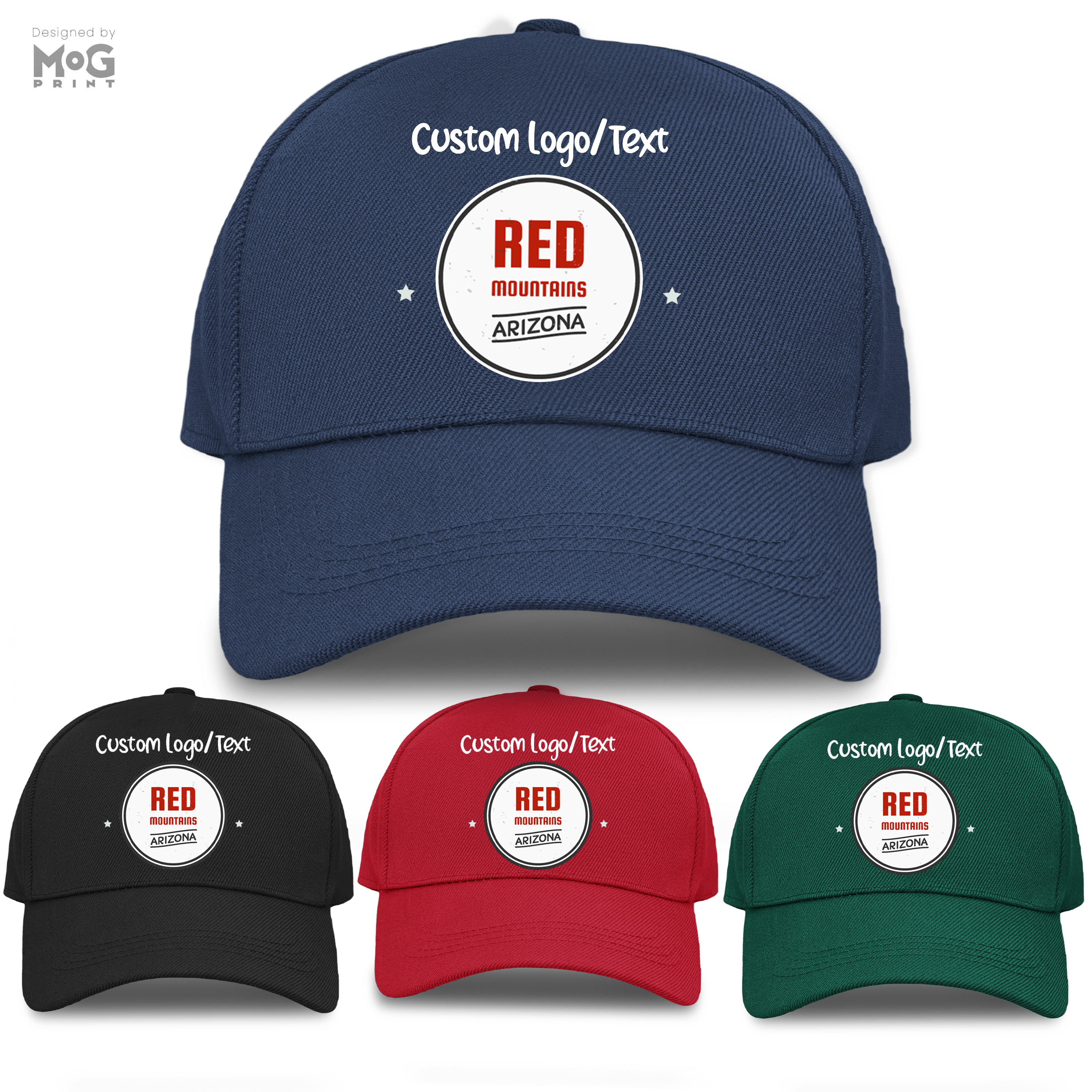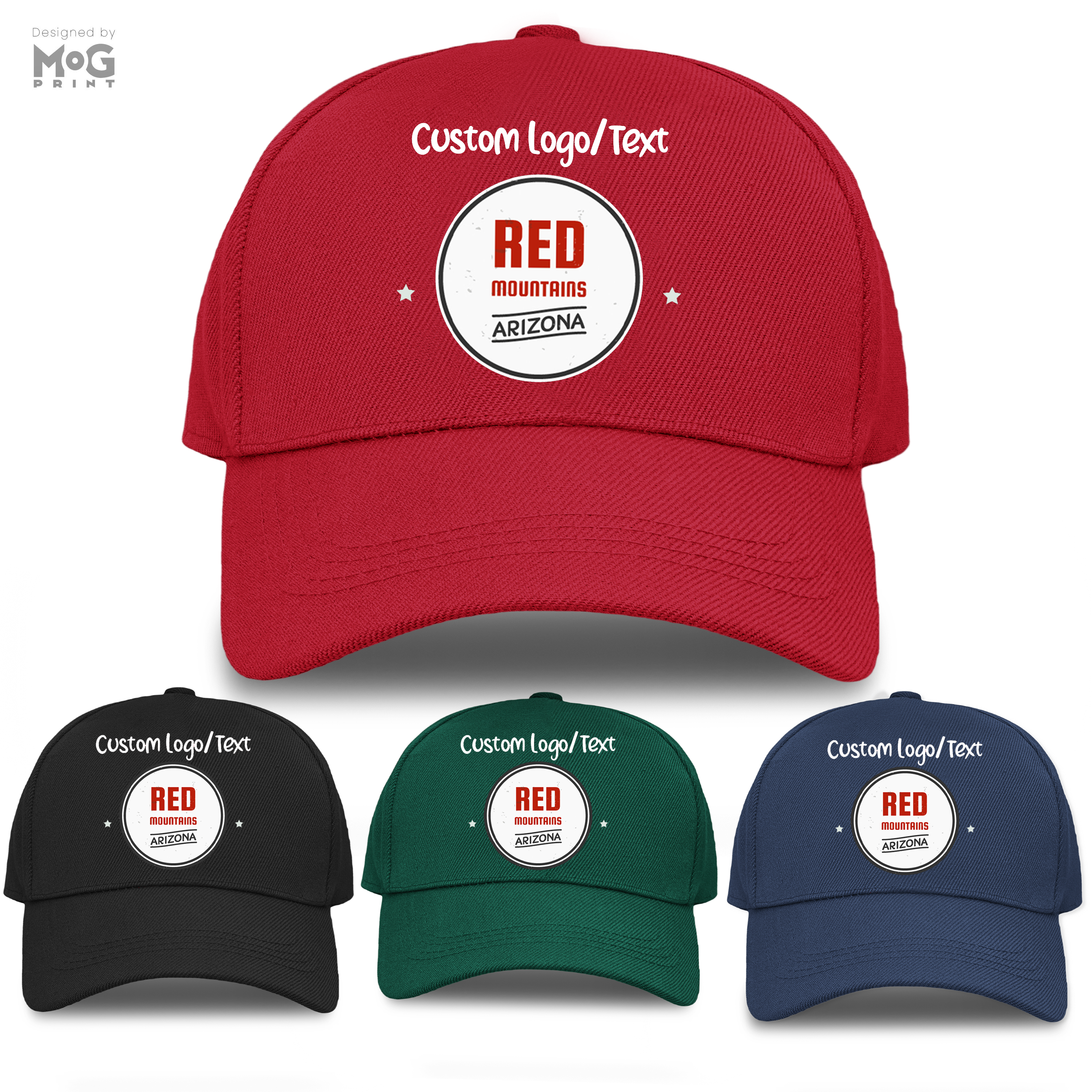 Custom Logo Baseball Cap Red Mountain Arizona Personalised Text Hat for Him Her