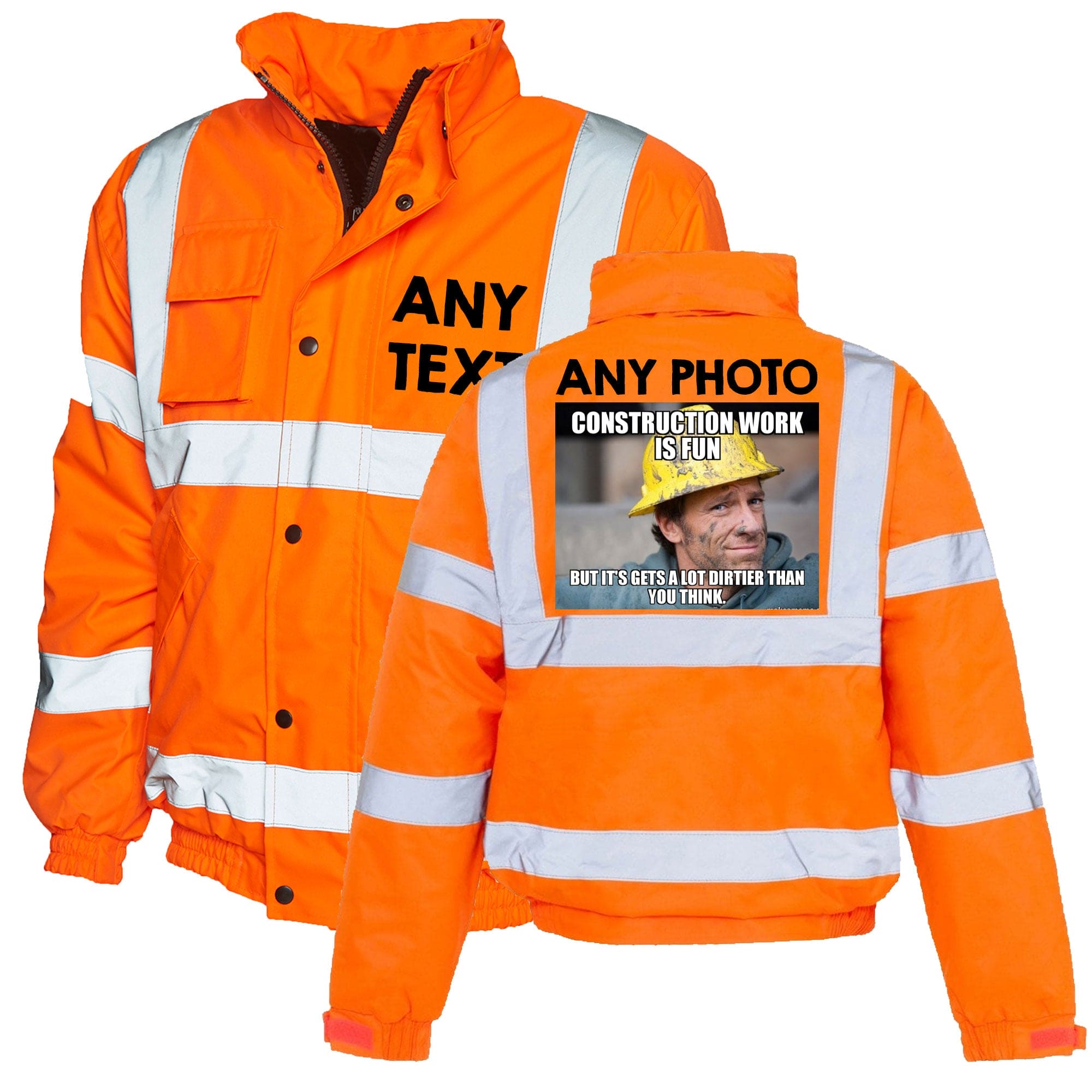 Customised Text Picture Logo Hi Vis Bomber Safety Jacket For Men Workwear