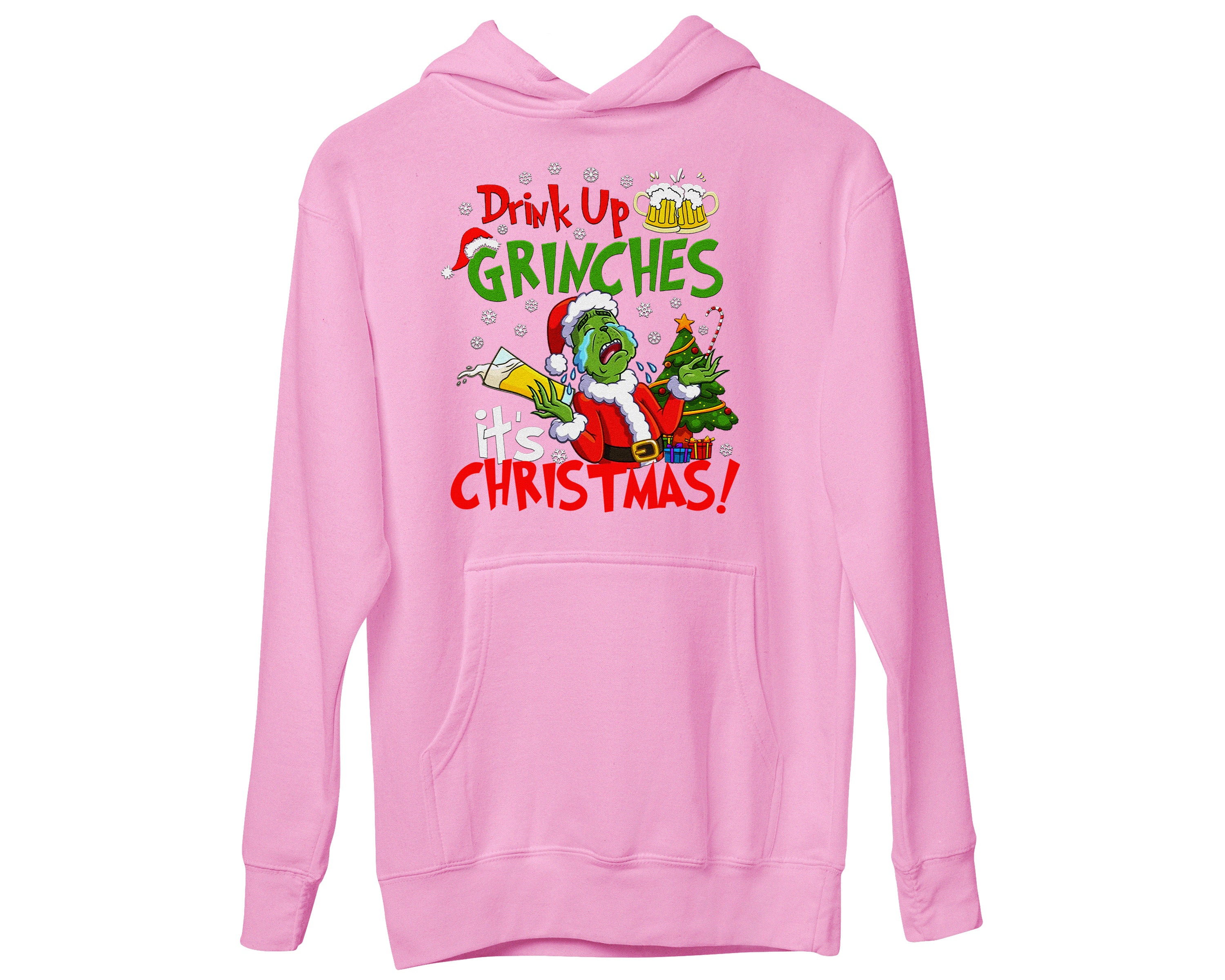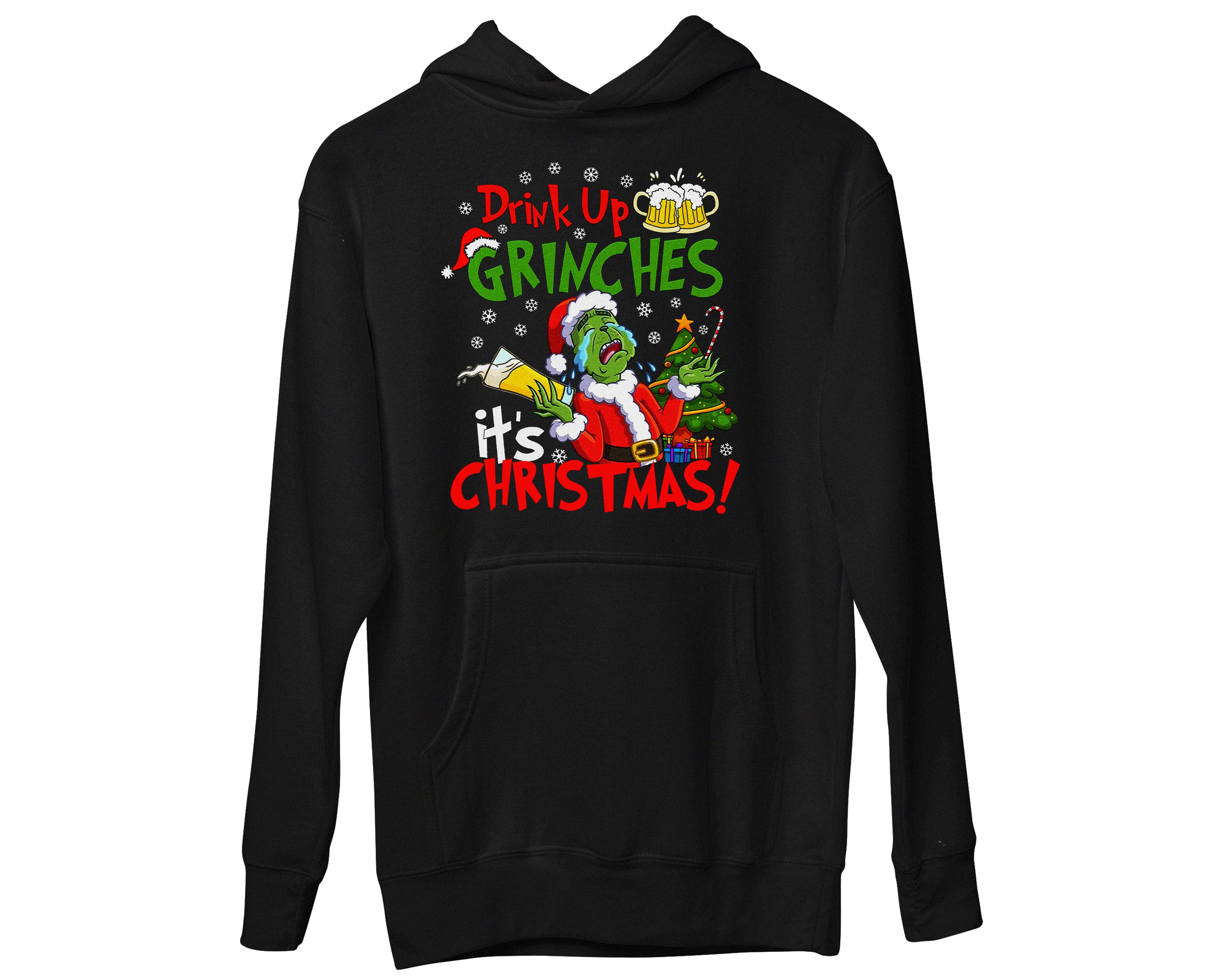 Drink Up Grinches Christmas Hoodie, Unisex Xmas Sweatshirt, Grinchmas Jumper