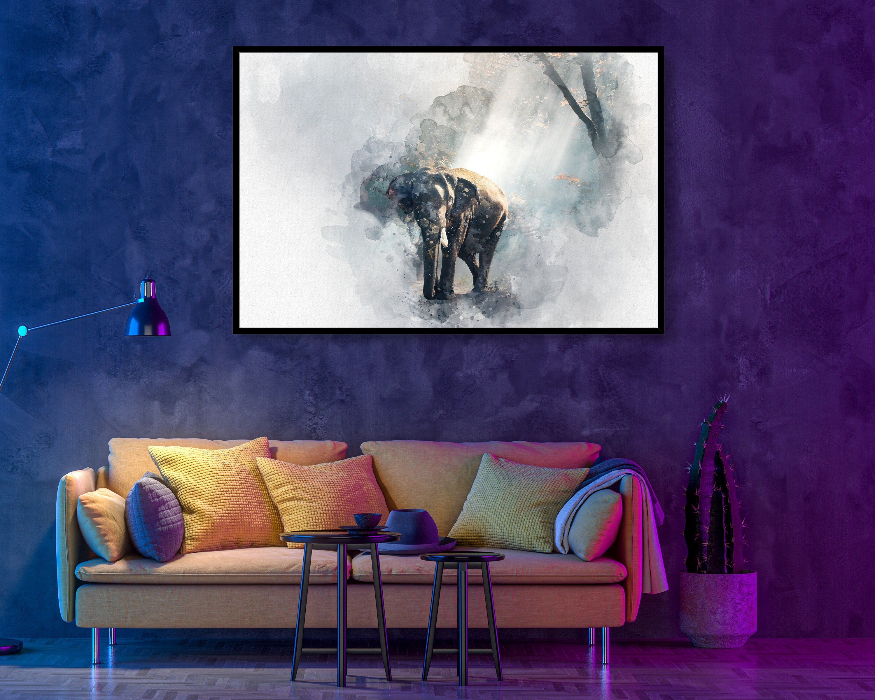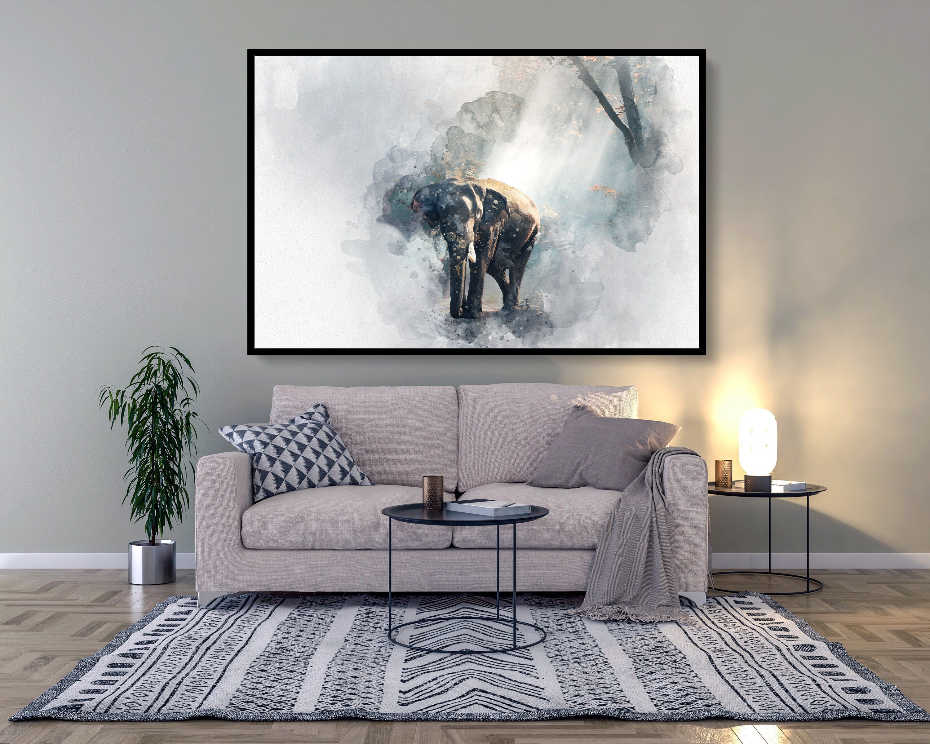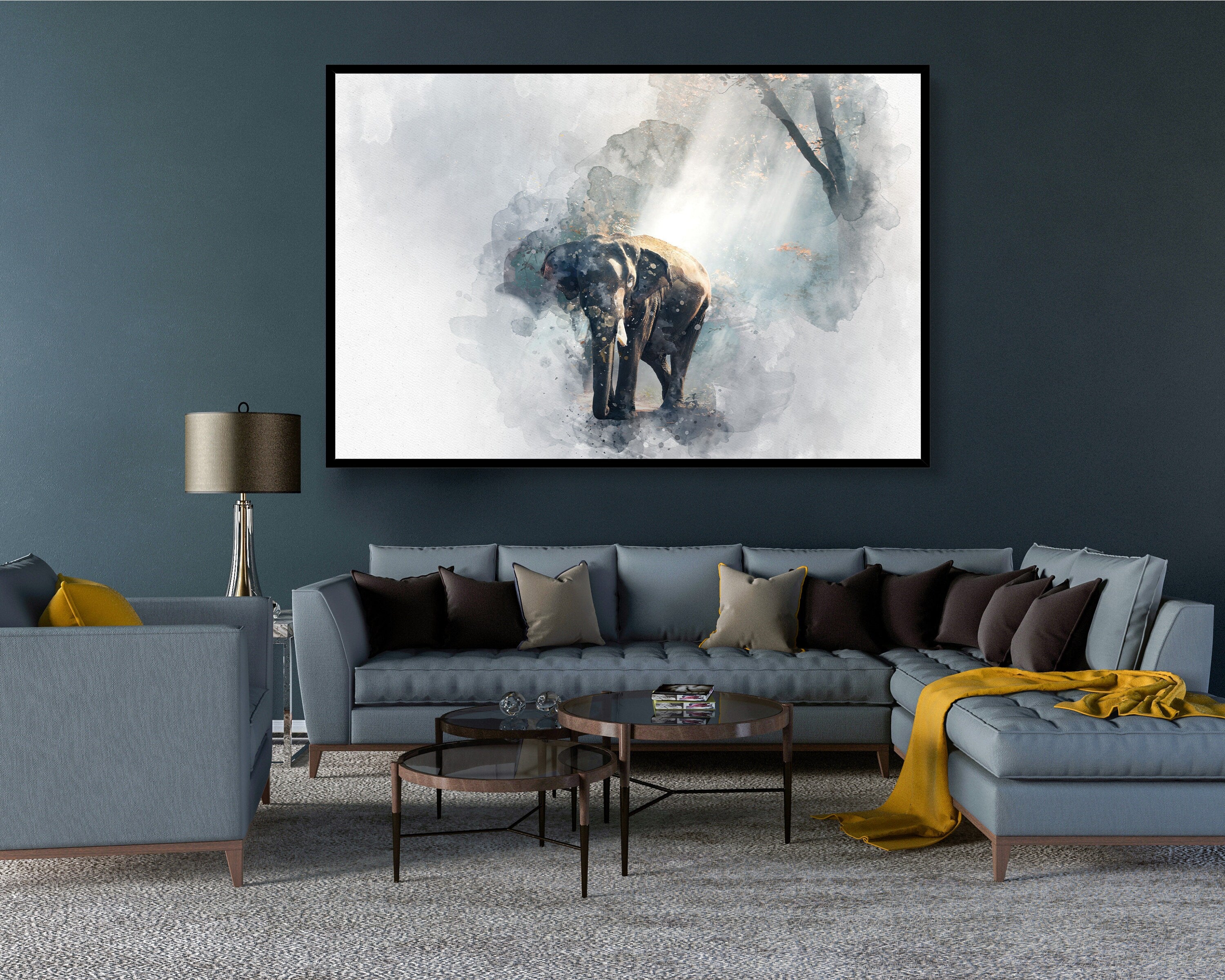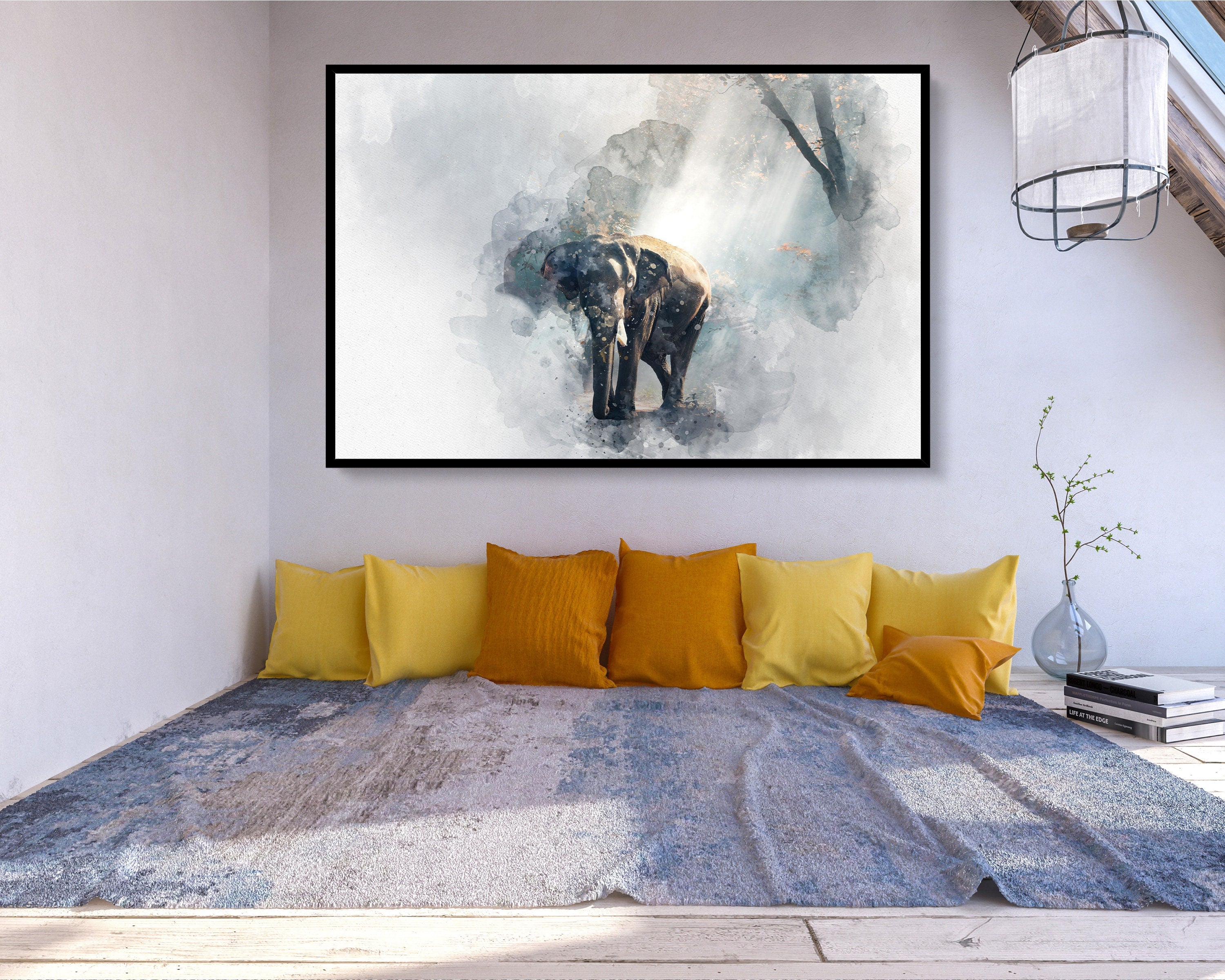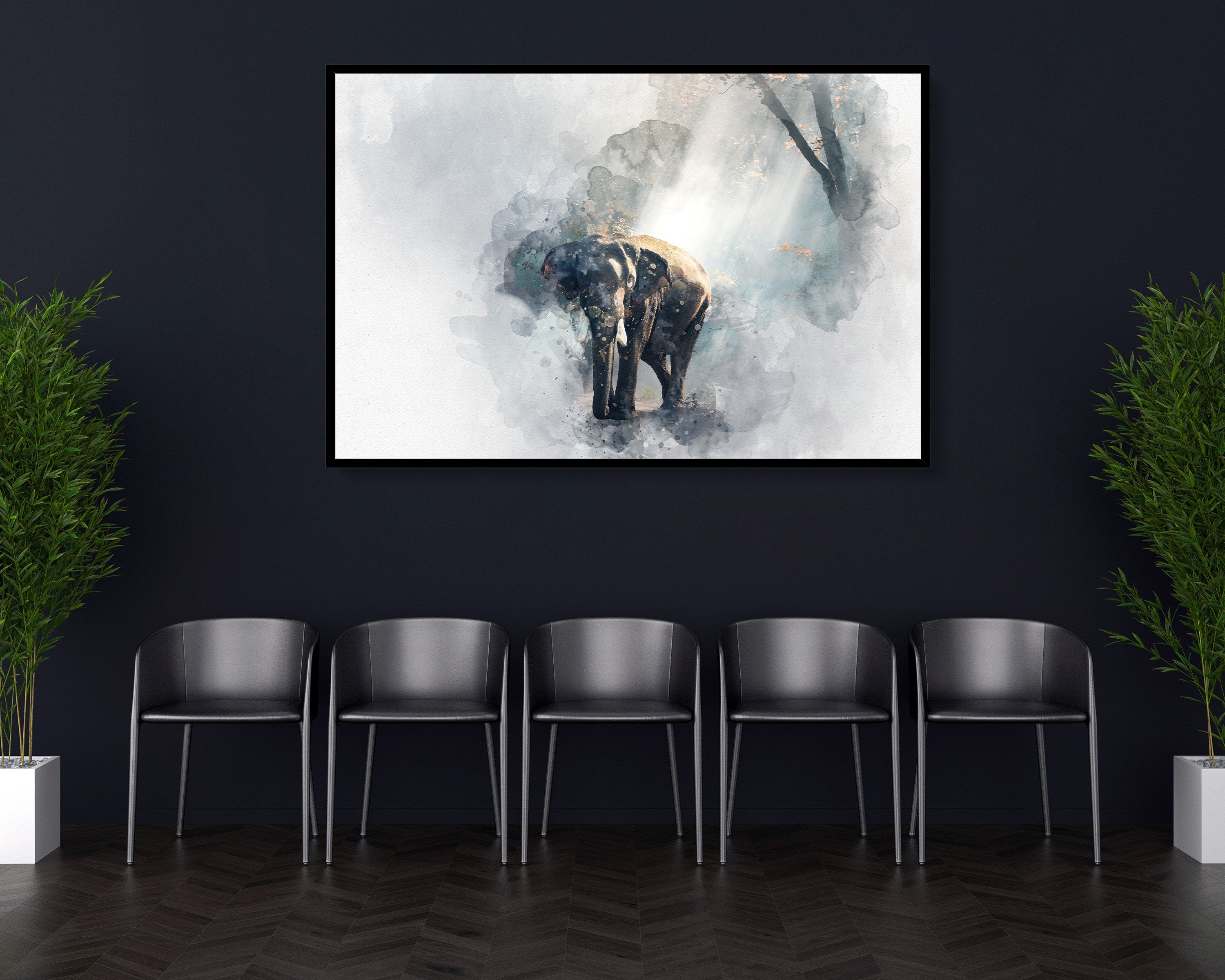 Design:> Made by spe3dy productions, one of a kind. Material:> Satin premium poster material 220 GSM / Mimaki original Eco Solv-Inks Art:> Real Elephant mixed with watercolour effect Art, unique and different.