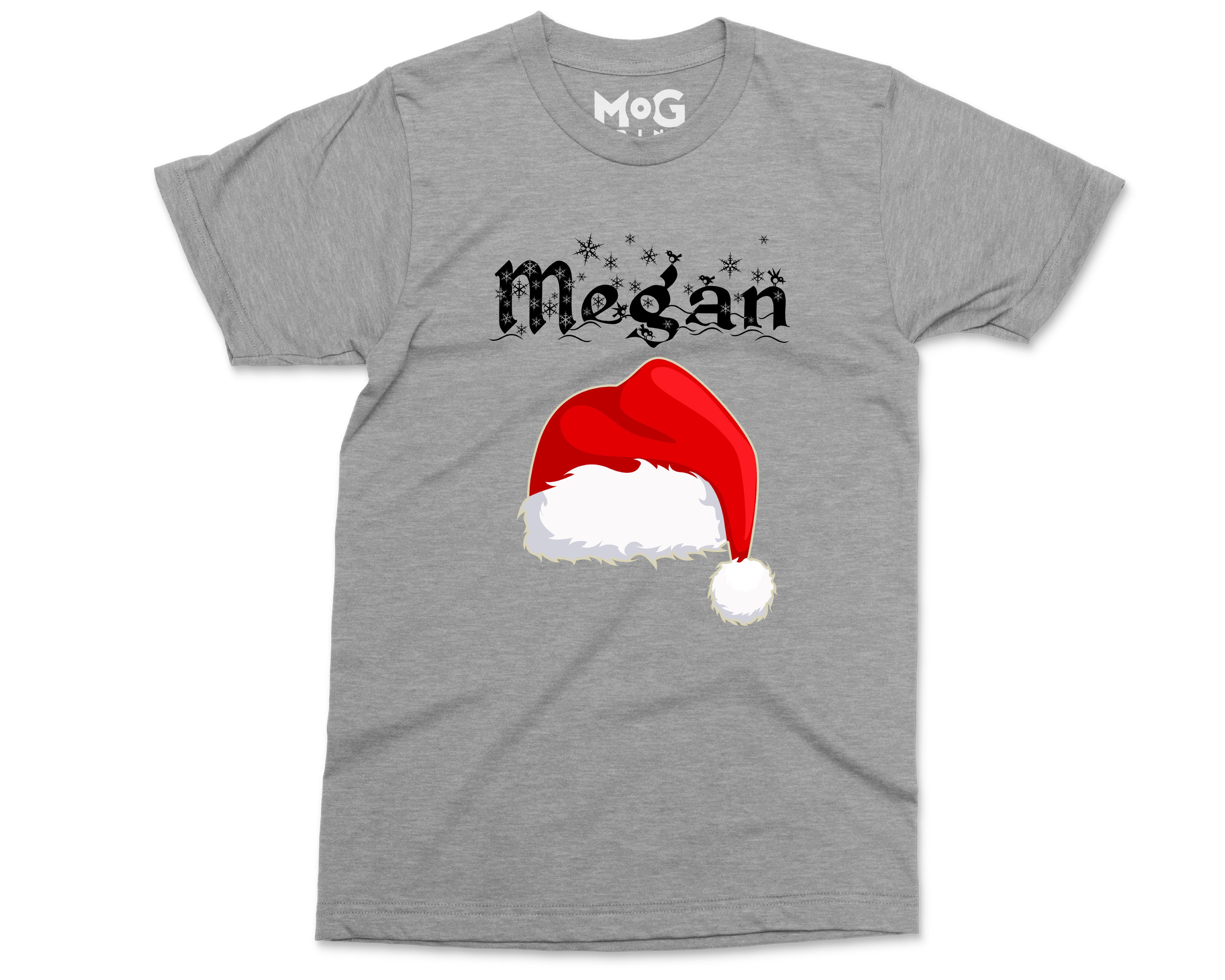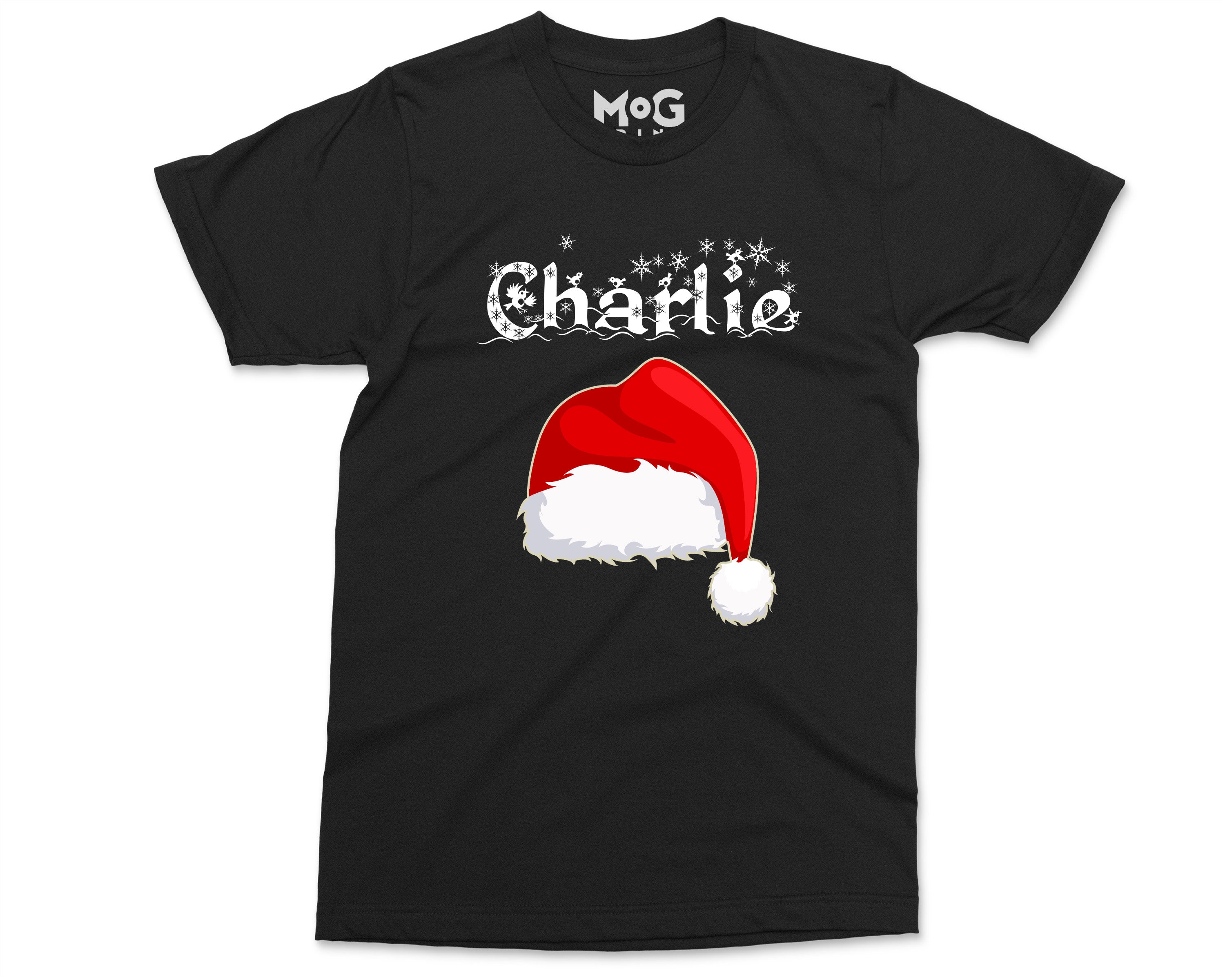 Family Matching Christmas T-shirt, Personalised Name Xmas Tee, Santa Hat Shirt