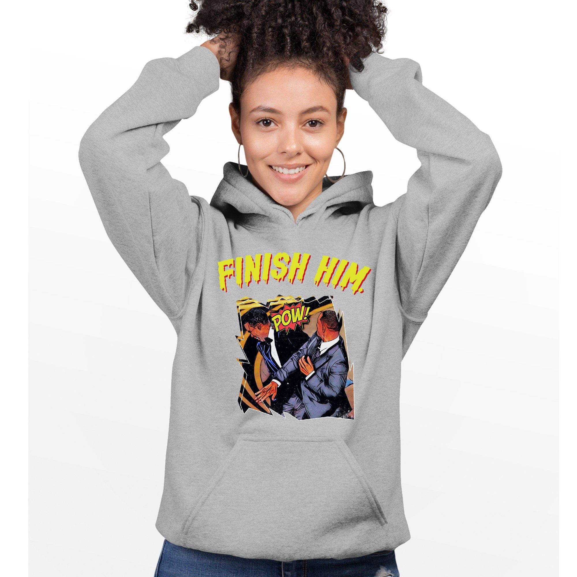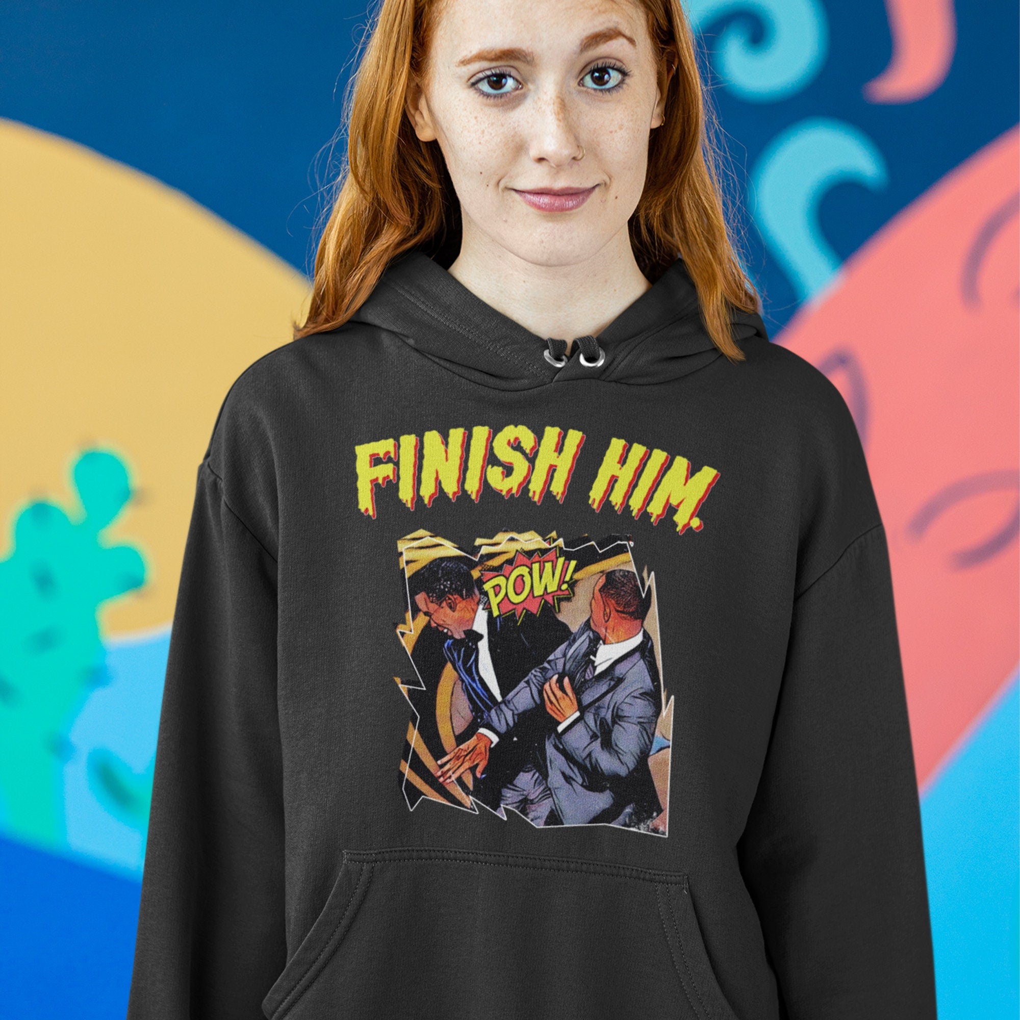FINISH HIM Will Smith Slap Hoodie, Chris Rock Smack Meme Joke, Funny Hoody for Him Her, Will Smith Chris Rock Comic Parody, Unisex Sizes