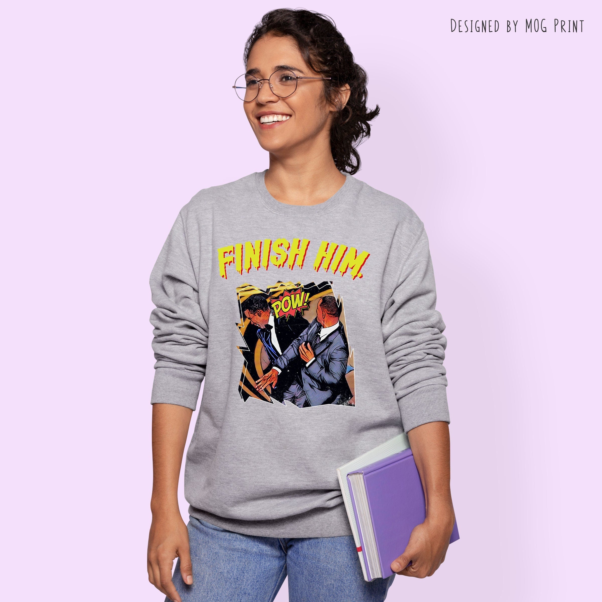 Finish Him Will Smith Slaps Chris Rock Sweatshirt, Funny Will Smith Smack Parody Meme Joke, Will Smith Chris Rock, Unisex Jumper Sweater