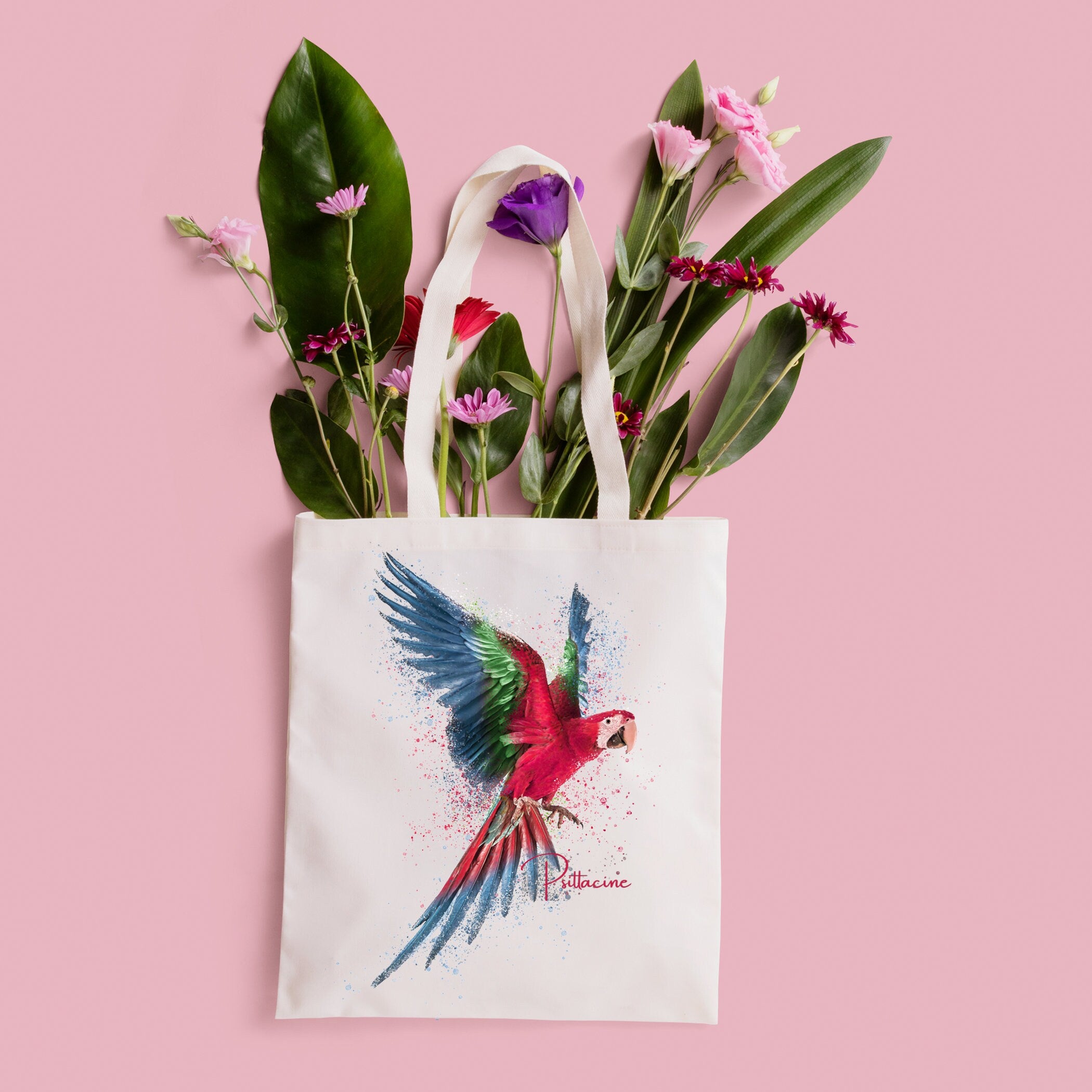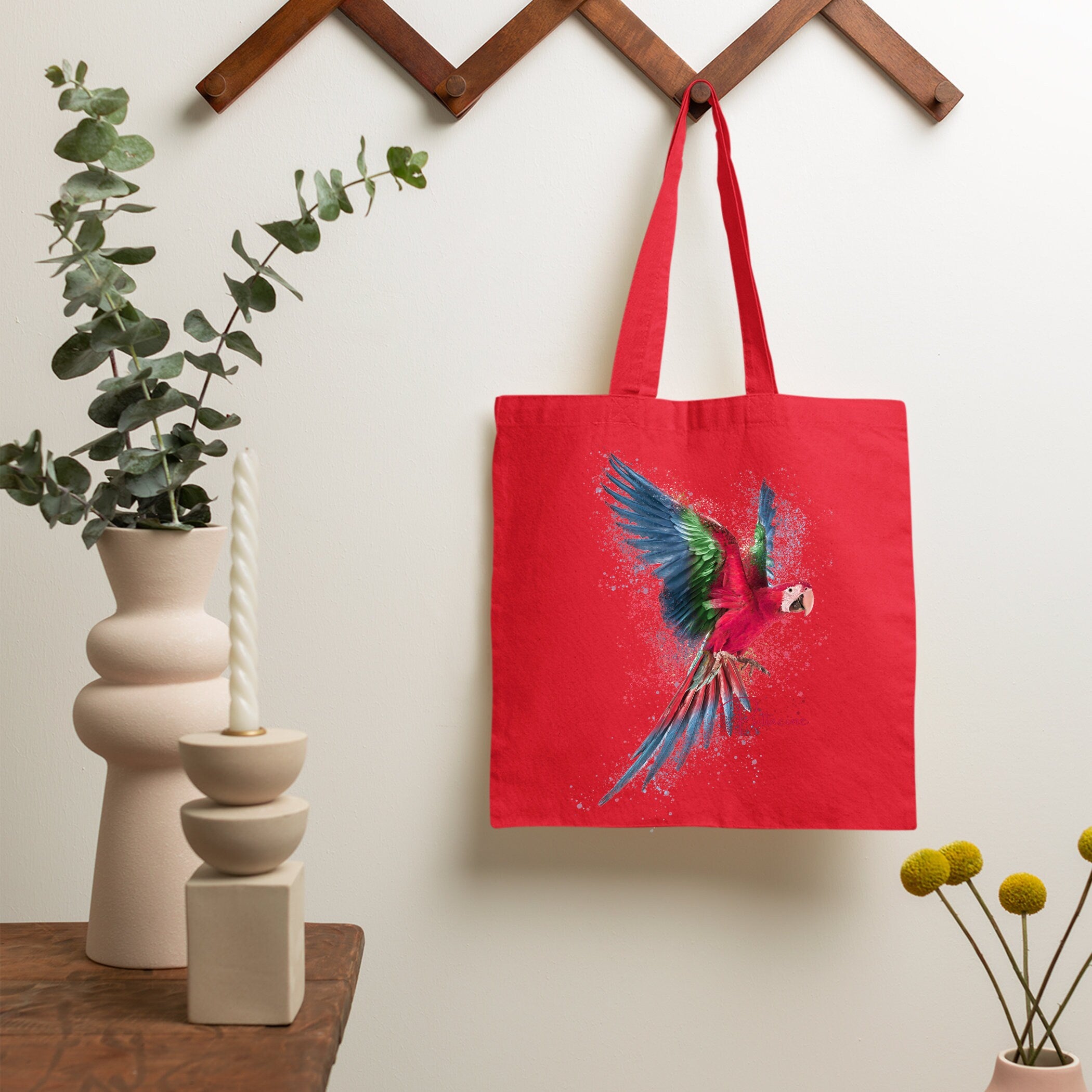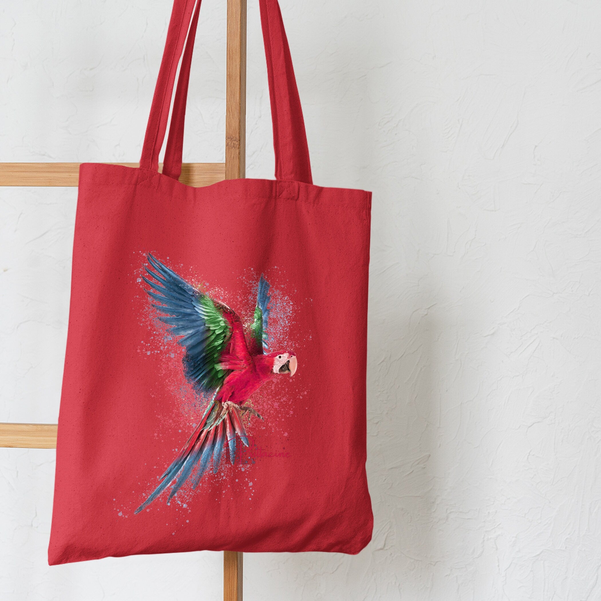Flying Parrot Tote Watercolor Wildlife Canvas Gift Exotic Bird Lover