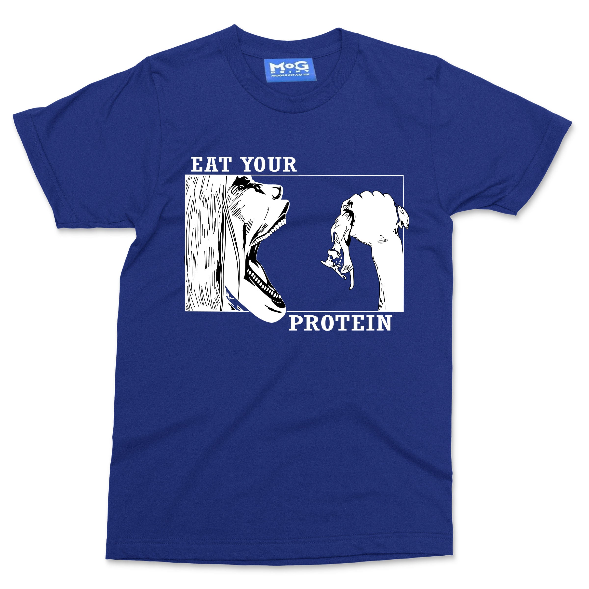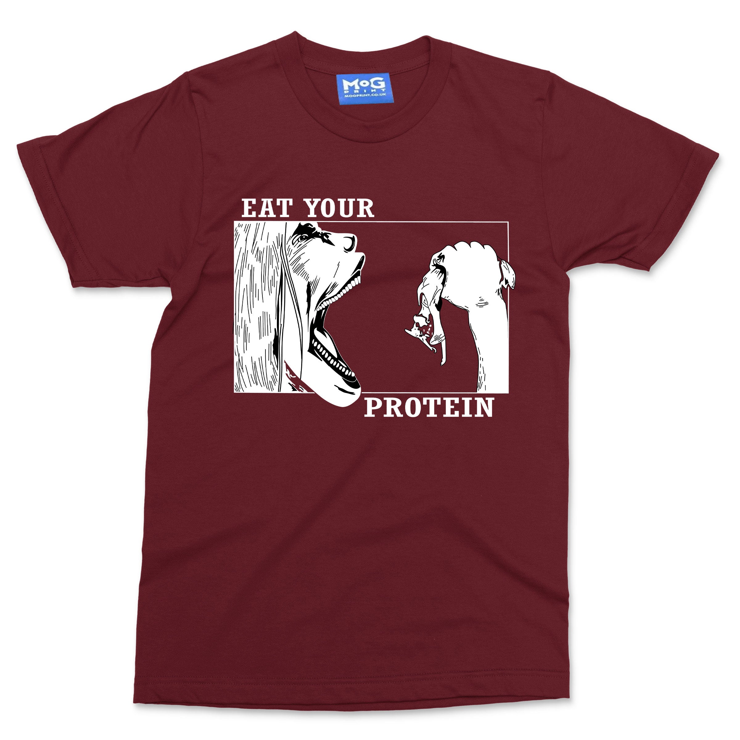 Funny Anime T-shirt Eat Your Protein Attack on Titan Anime GYM Shirt Manga Art
