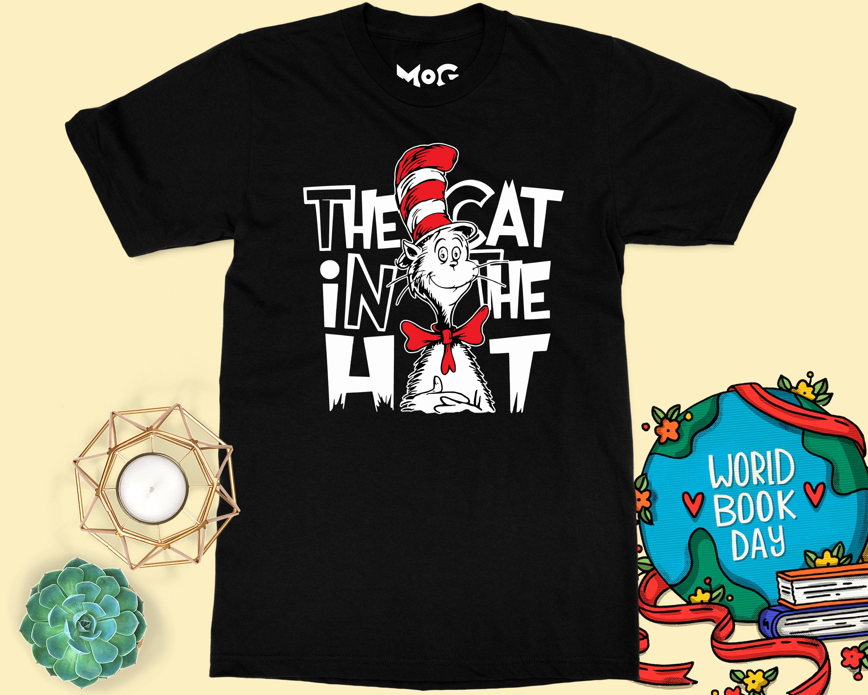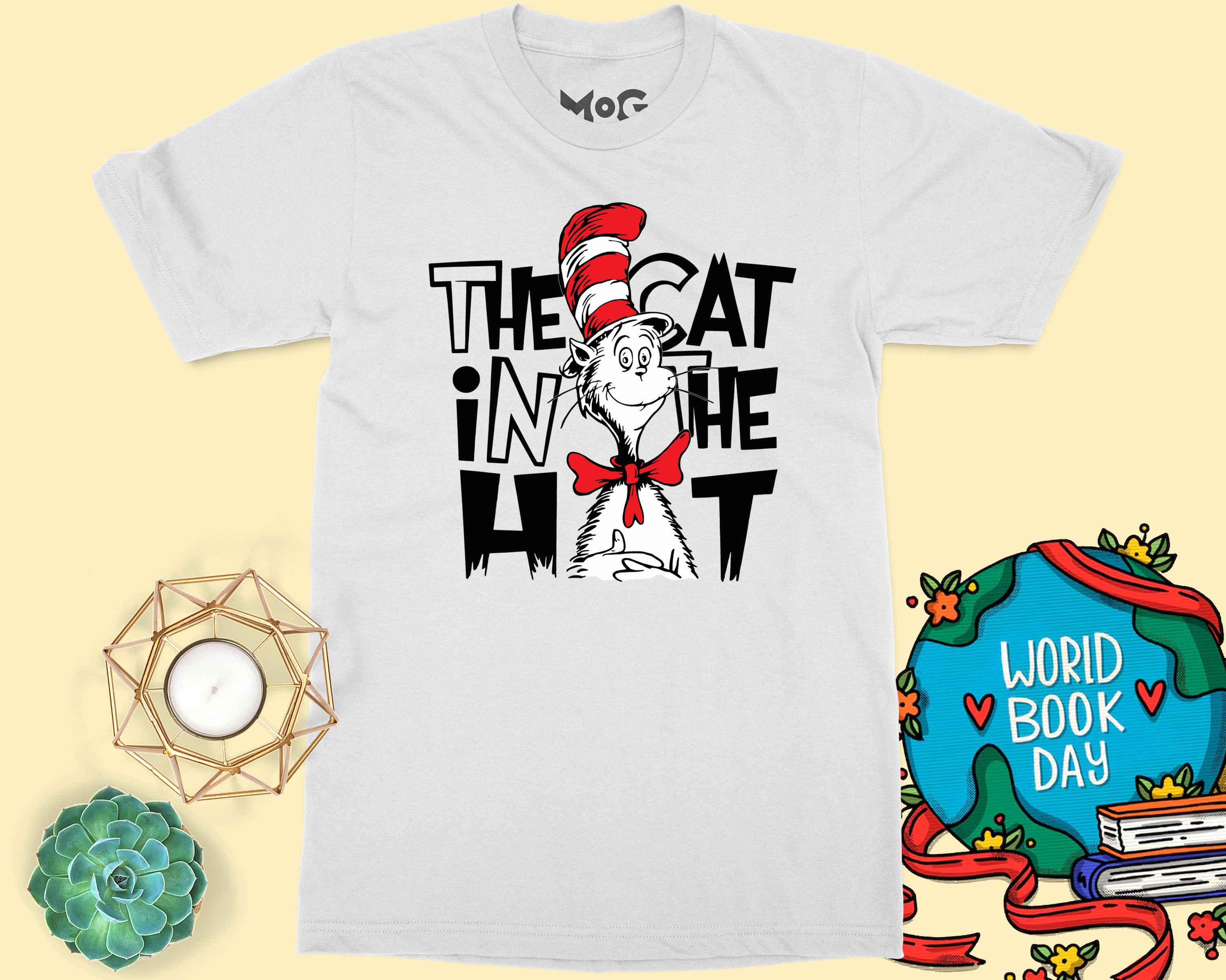 Funny Cat in Hat T-Shirt, World Book Day, Reading Club, Dr Seuss Inspired Tee