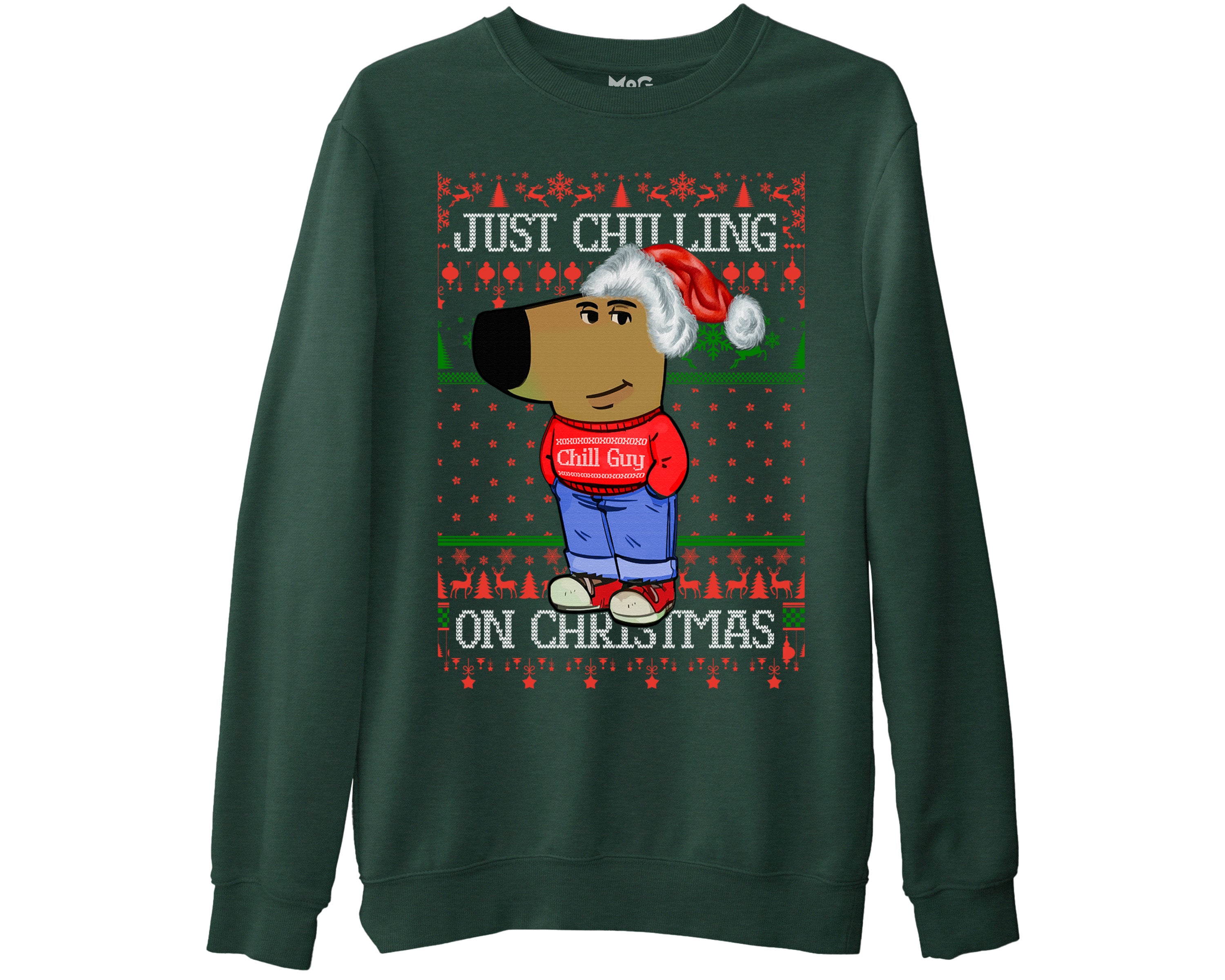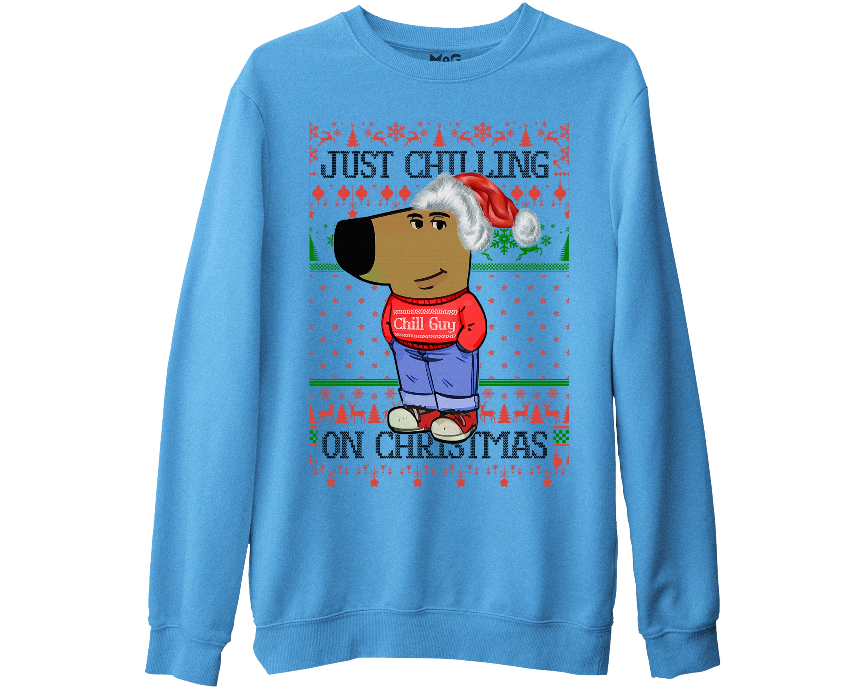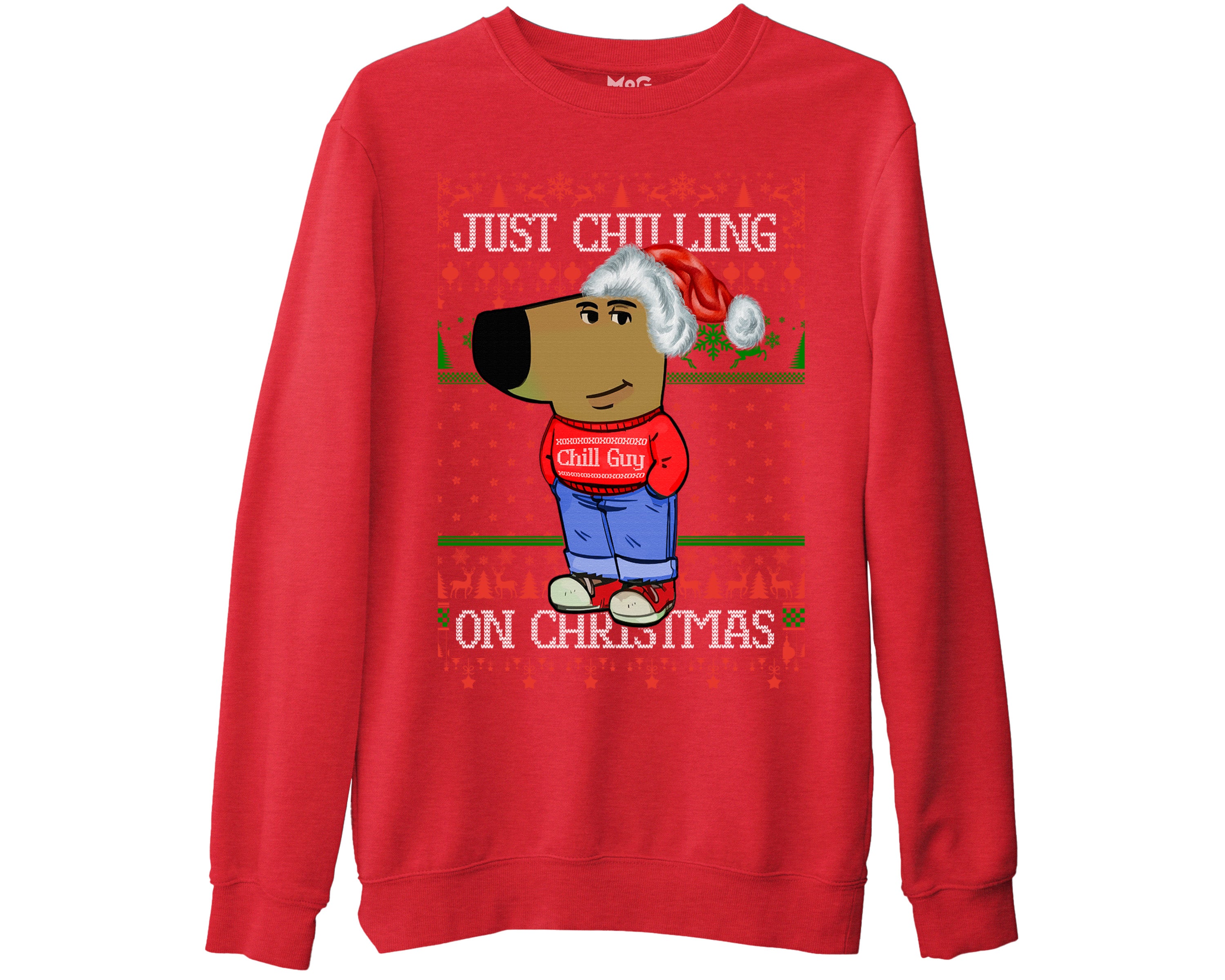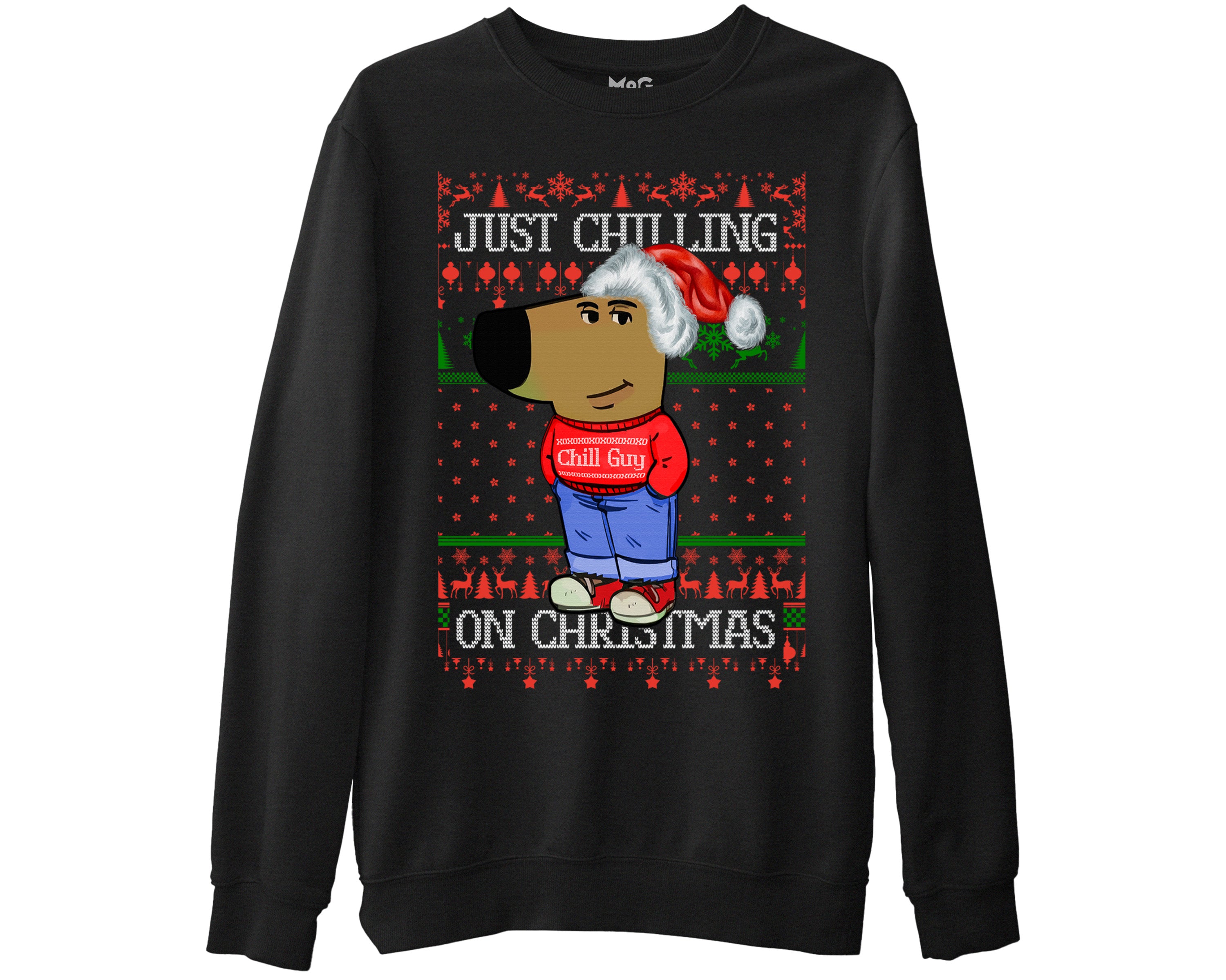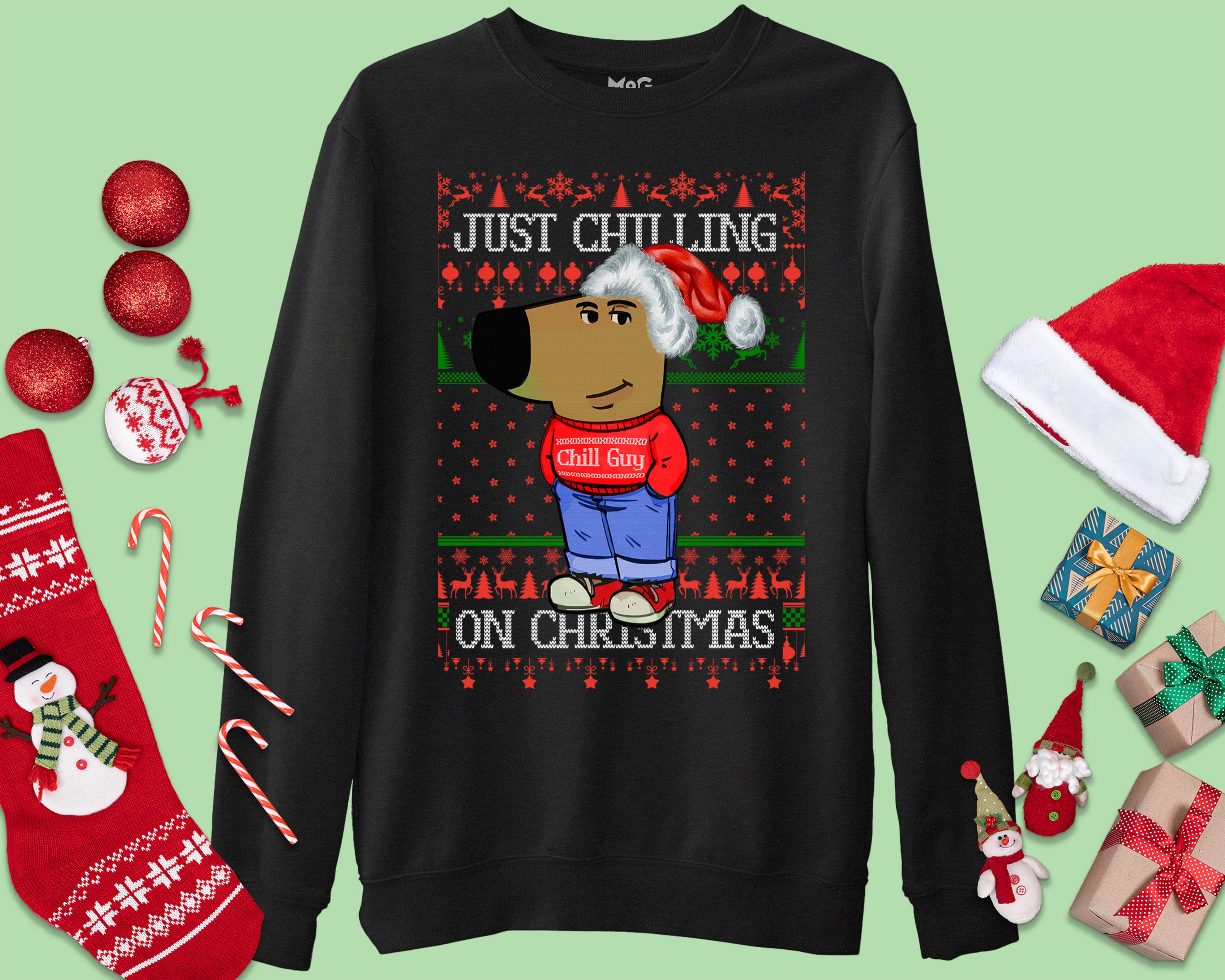 Funny Chilling on Christmas Sweatshirt Chill Guy Dog Meme Gift Jumper