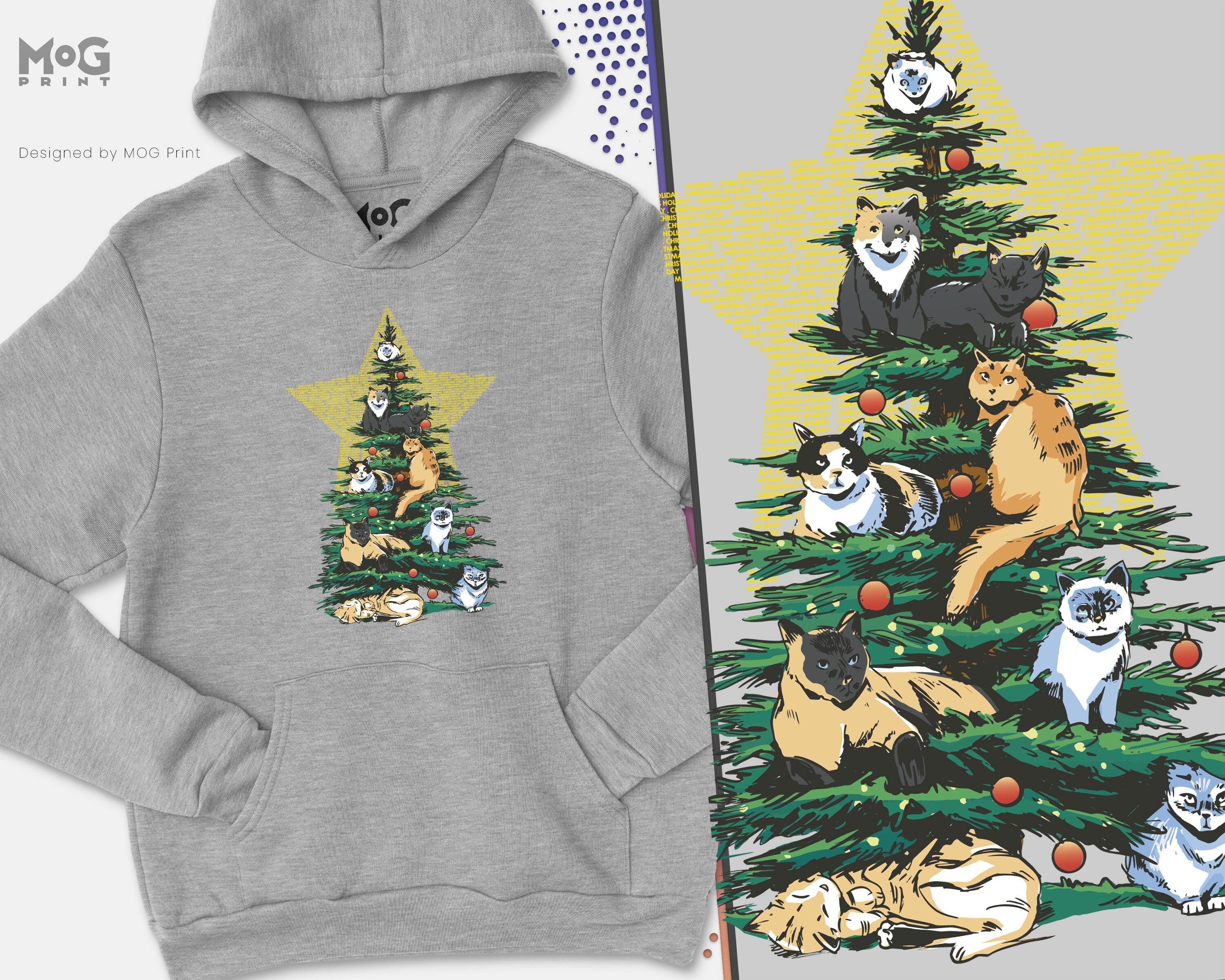 Funny Christmas Cat Hoodie, Cat Lover Gift, cute Christmas Jumper, Cat lover, Holiday graphic, Merry Christmas Tree, Cat owner Hoody