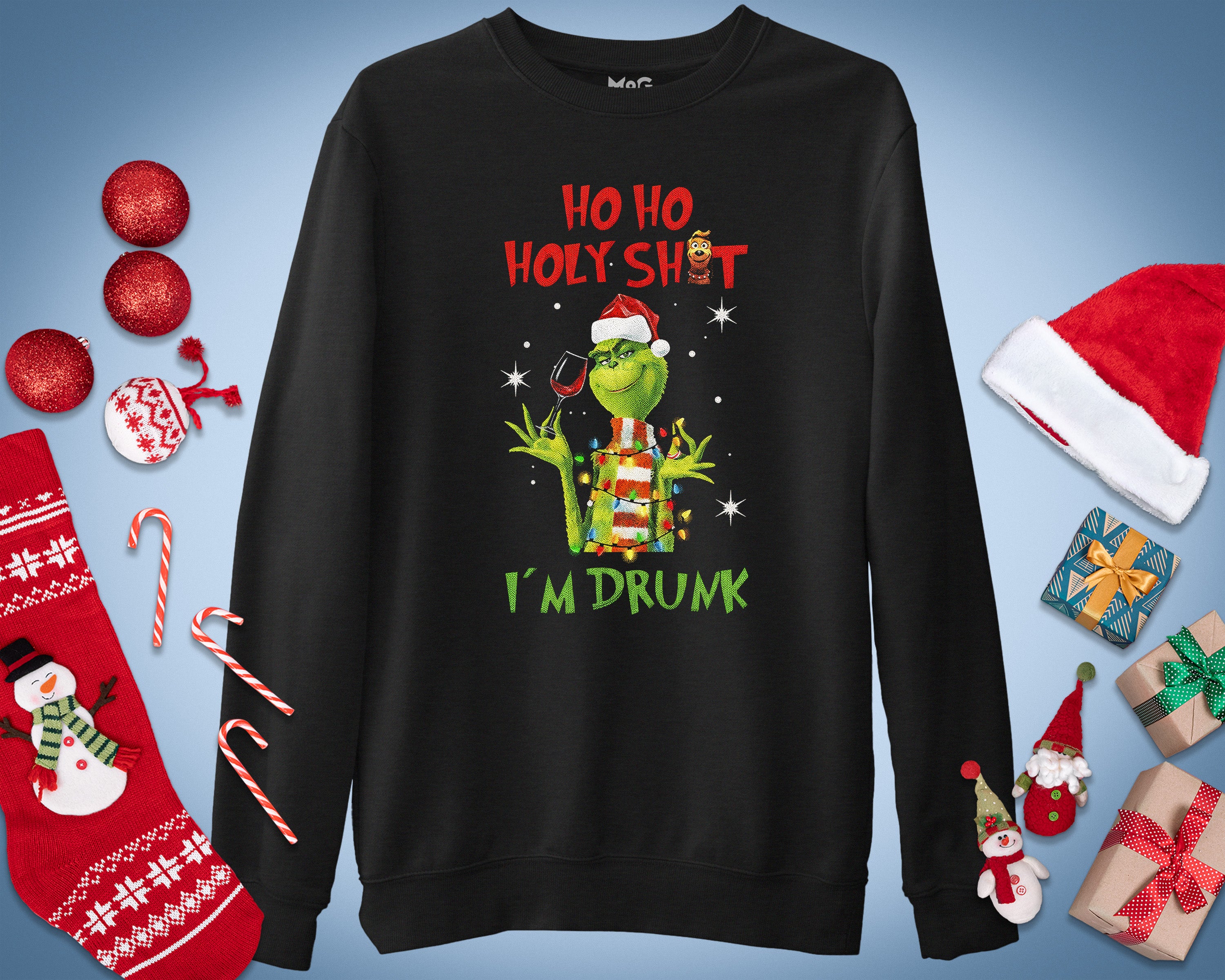 Funny Christmas Grinch Sweatshirt Ho Ho I’m Drunk Grinchmas Xmas Top