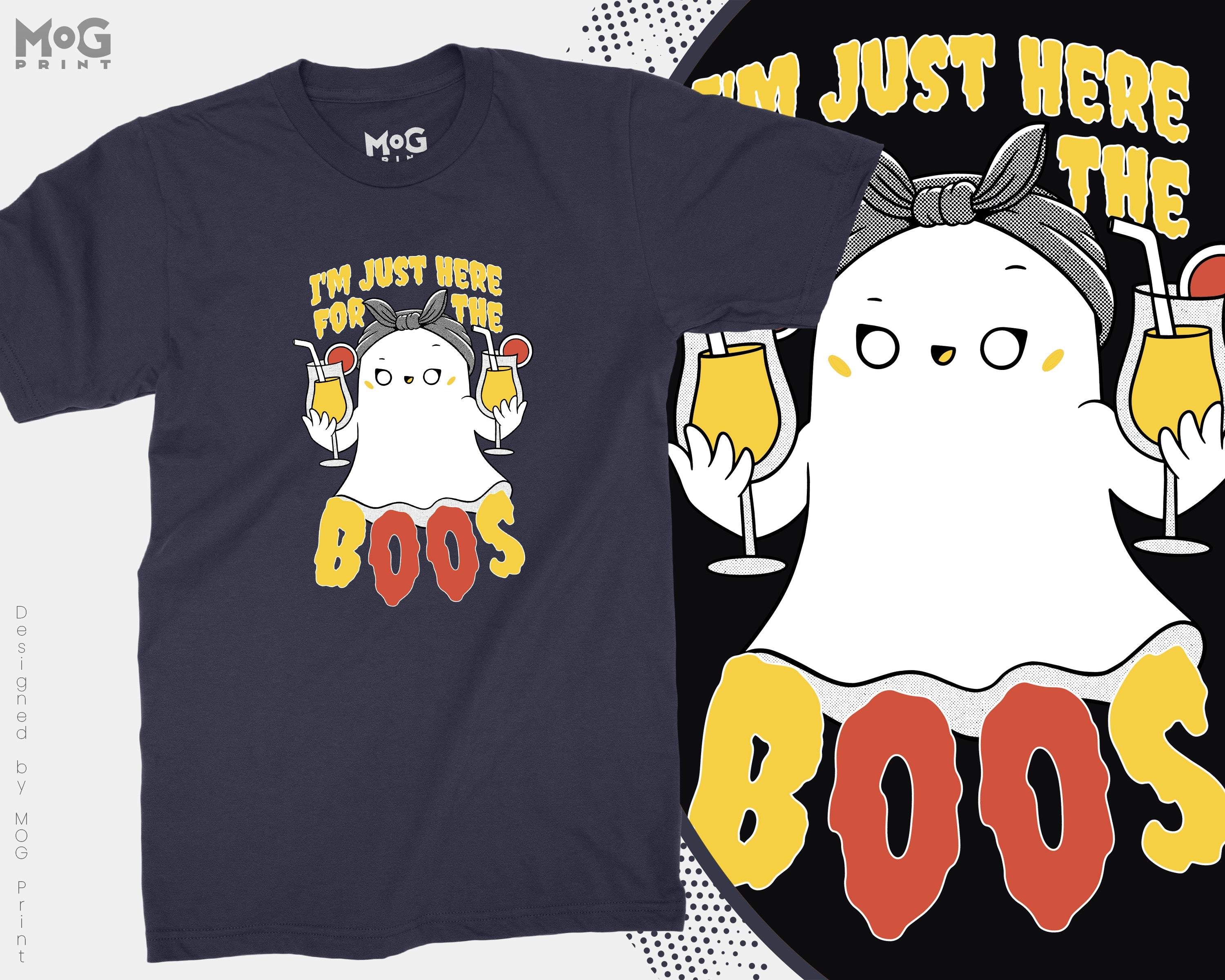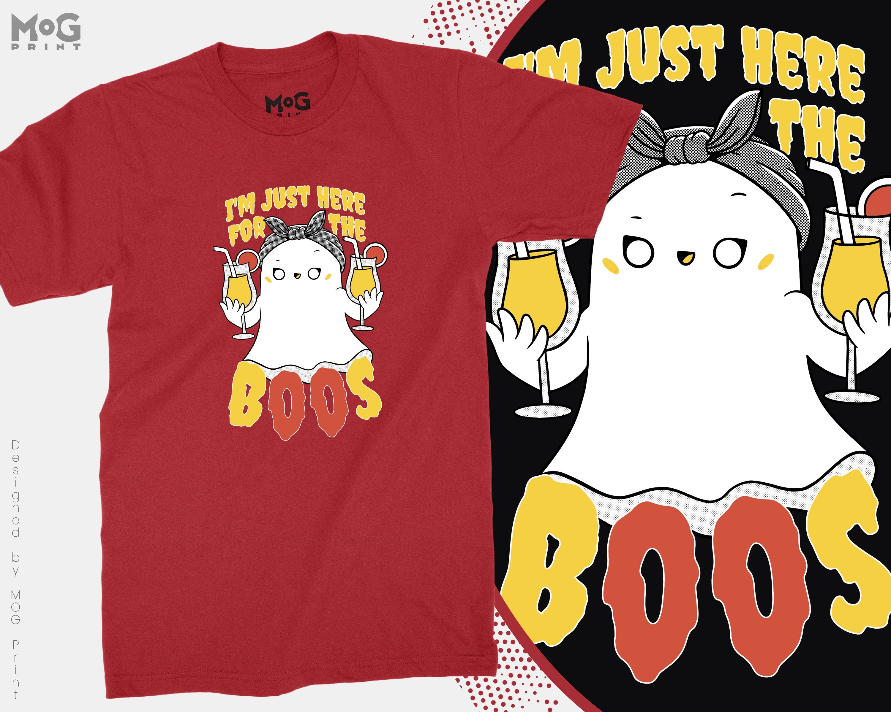 Funny Halloween Ghost T-shirt, I'm Just Here For The Boos, Funny Halloween Joke, Trick or Treat Shirt Halloween Costume Party Unisex Top