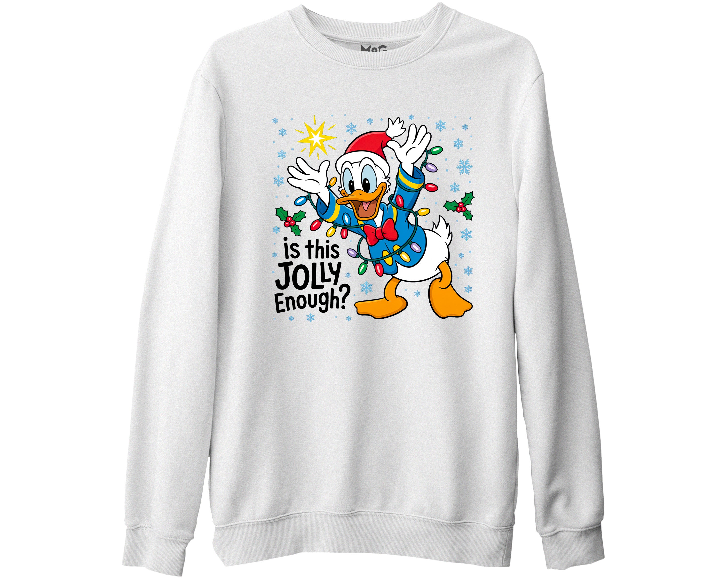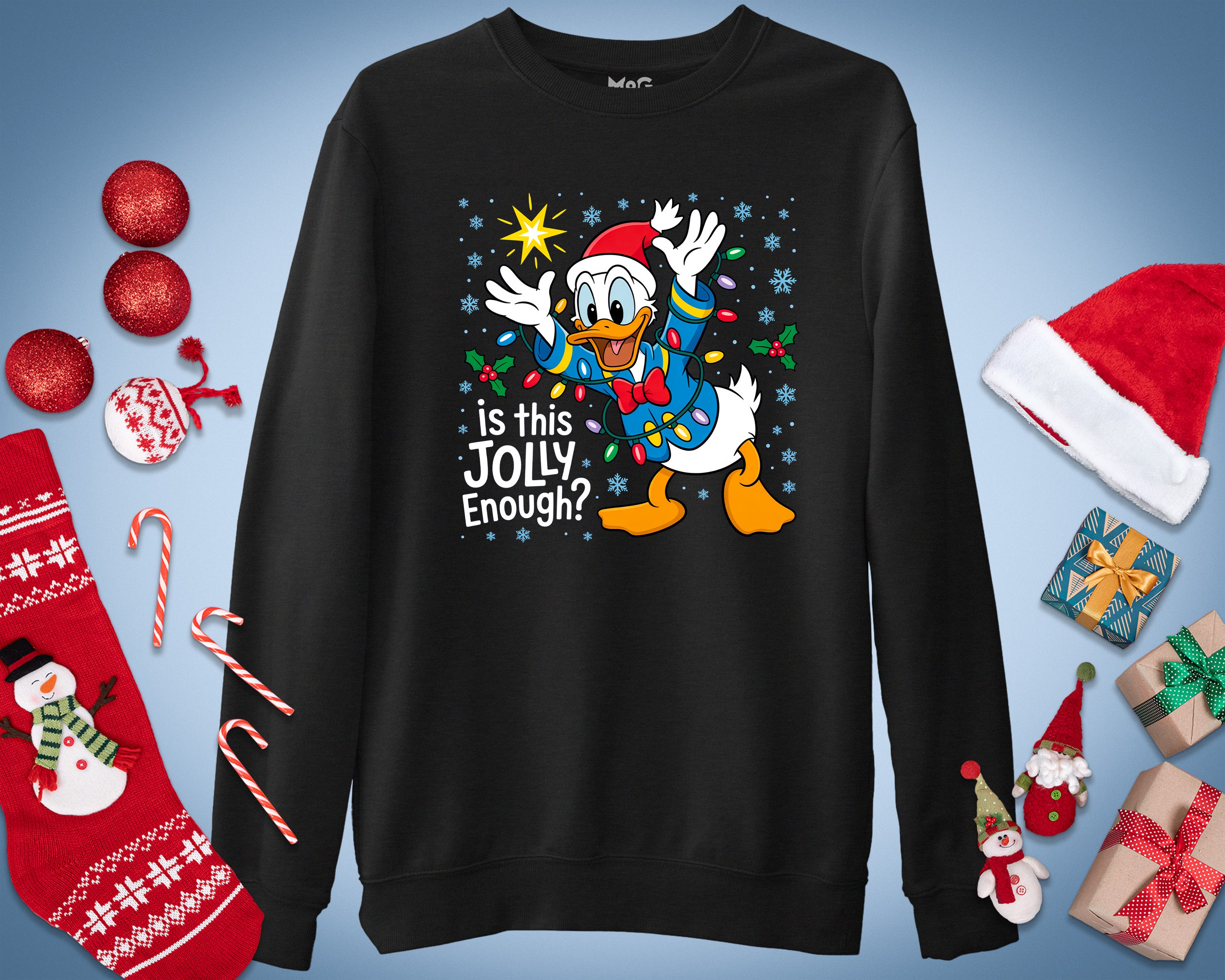 Funny Is This Jolly Enough Sweatshirt Disney Donald Duck Xmas Gift Top Welcome to Mog Print Our designs are printed on premium cotton sweatshirts.80% cotton 20% polyester Sizes:Please double check our size guide *image* before Purchase.-Our sweatshirts are Unisex and can be worn by...