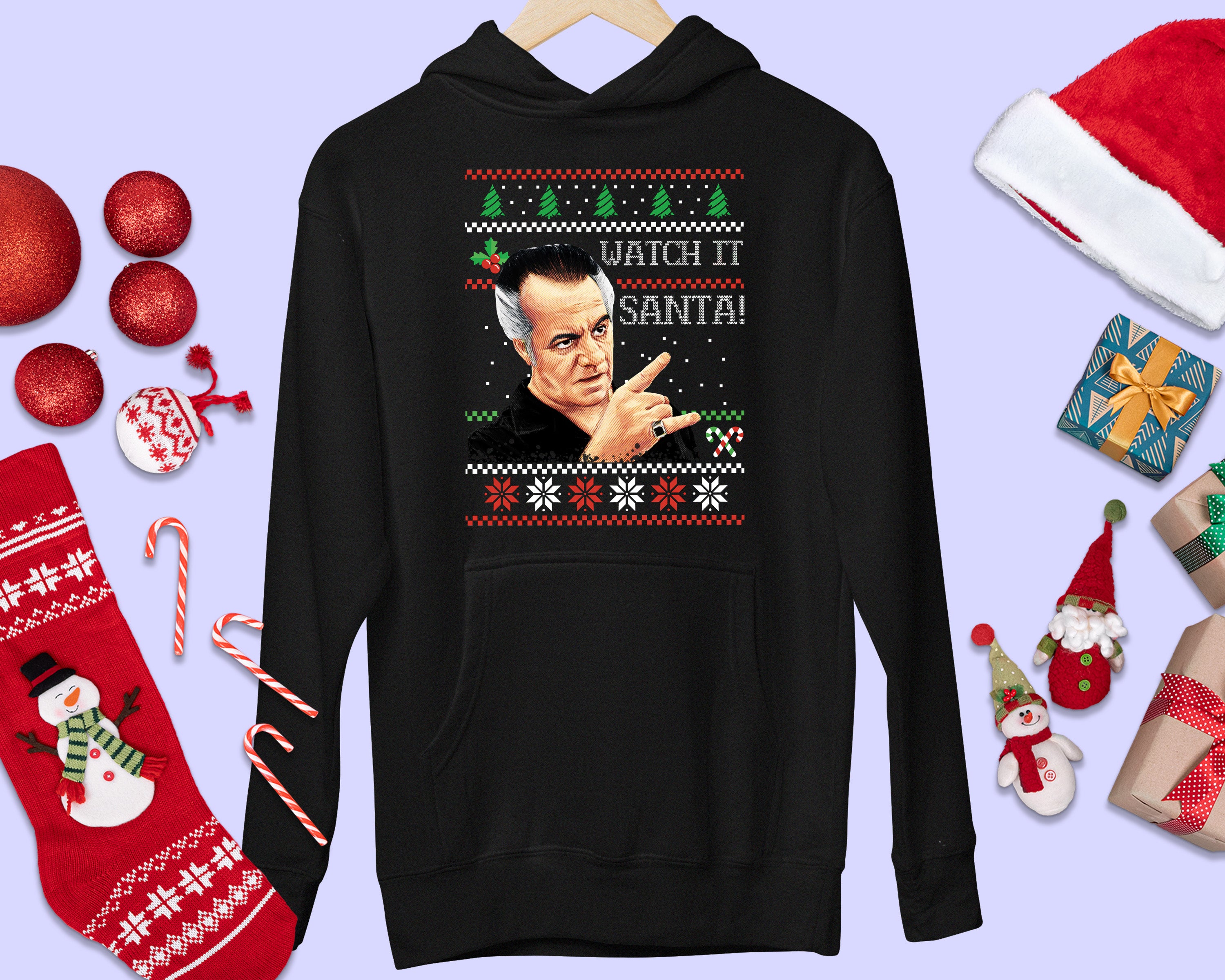 Funny Italian Gangster Hoodie The Sopranos Paulie Watch It Santa Ugly Xmas Hoody