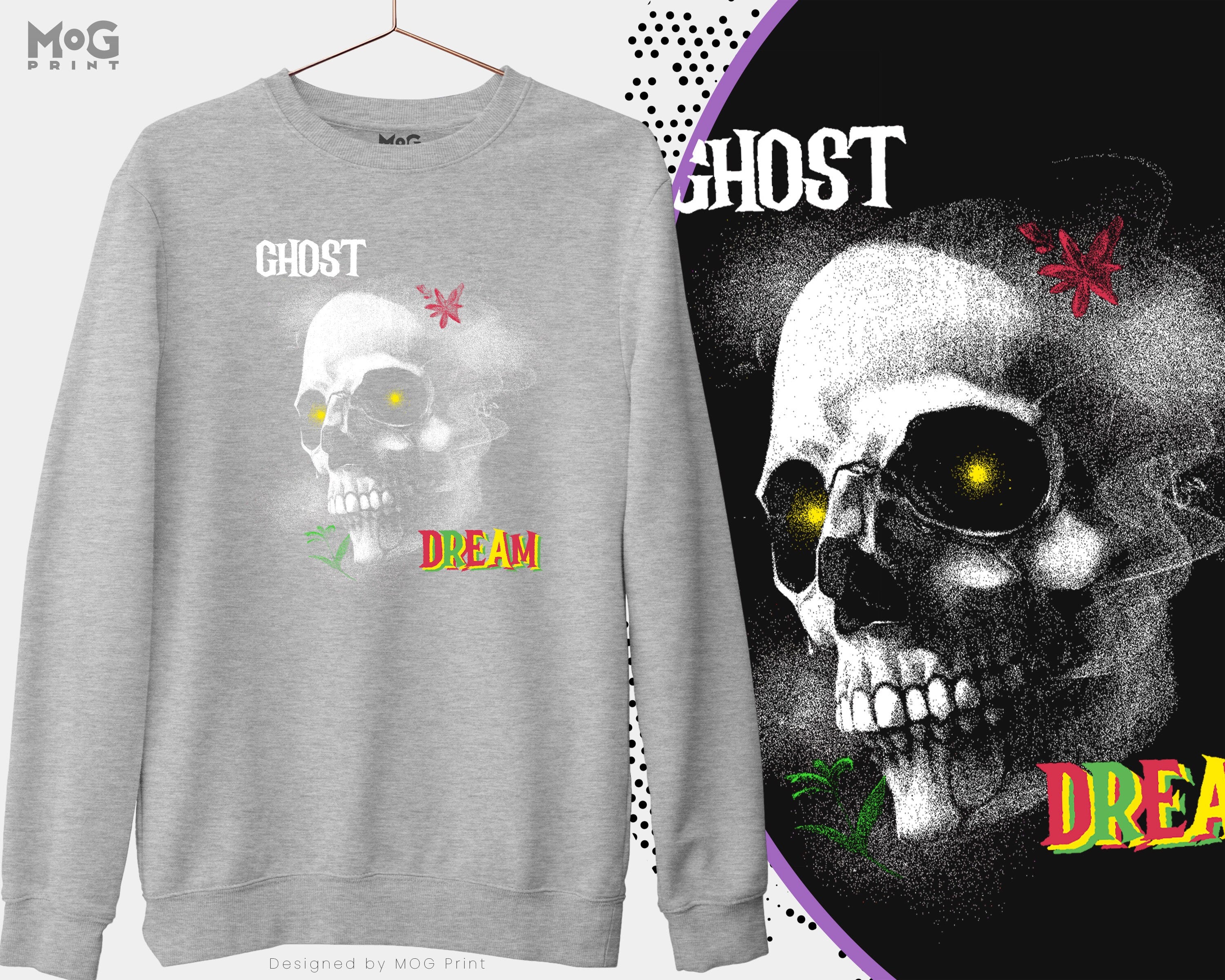 Ghost Dream Halloween Skull Sweatshirt, Spirit Scary Halloween Spooky Skull Jumper, Skeleton Evil Scary Horror Death Dream Unisex Halloween Gift Idea Sweater