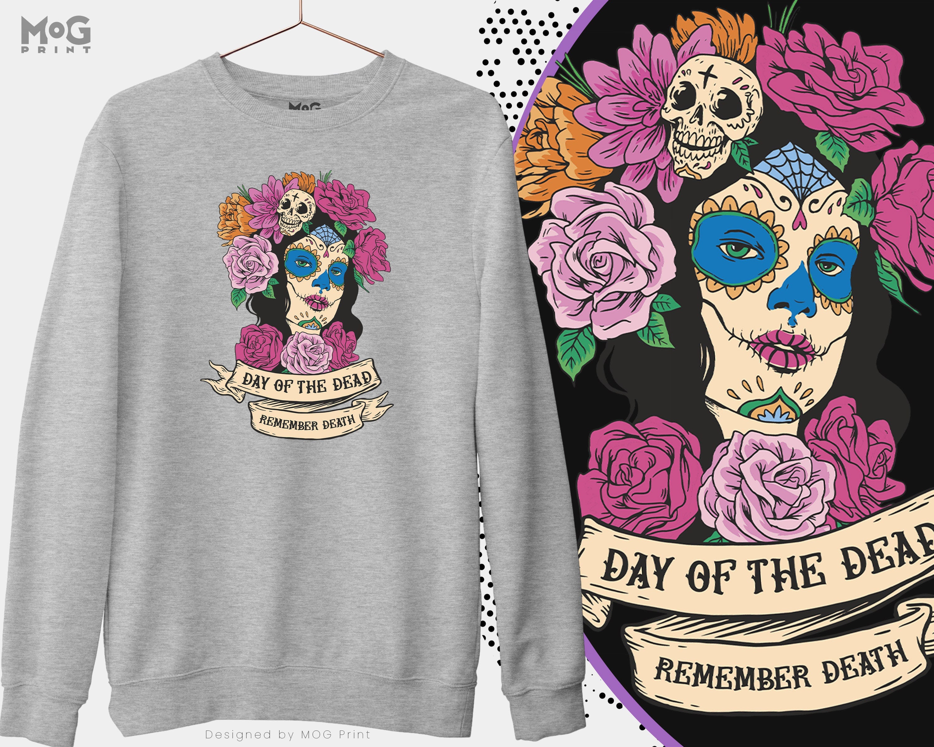Halloween Death Day Jumper, Dia De Los Muertos Costume Sweater, Day of the Dead Horror Sweatshirt Sugar Skull Flowers Goth Mexican Skull Adults & Kids Halloween Girls Costume Fancy Dress Party Gift