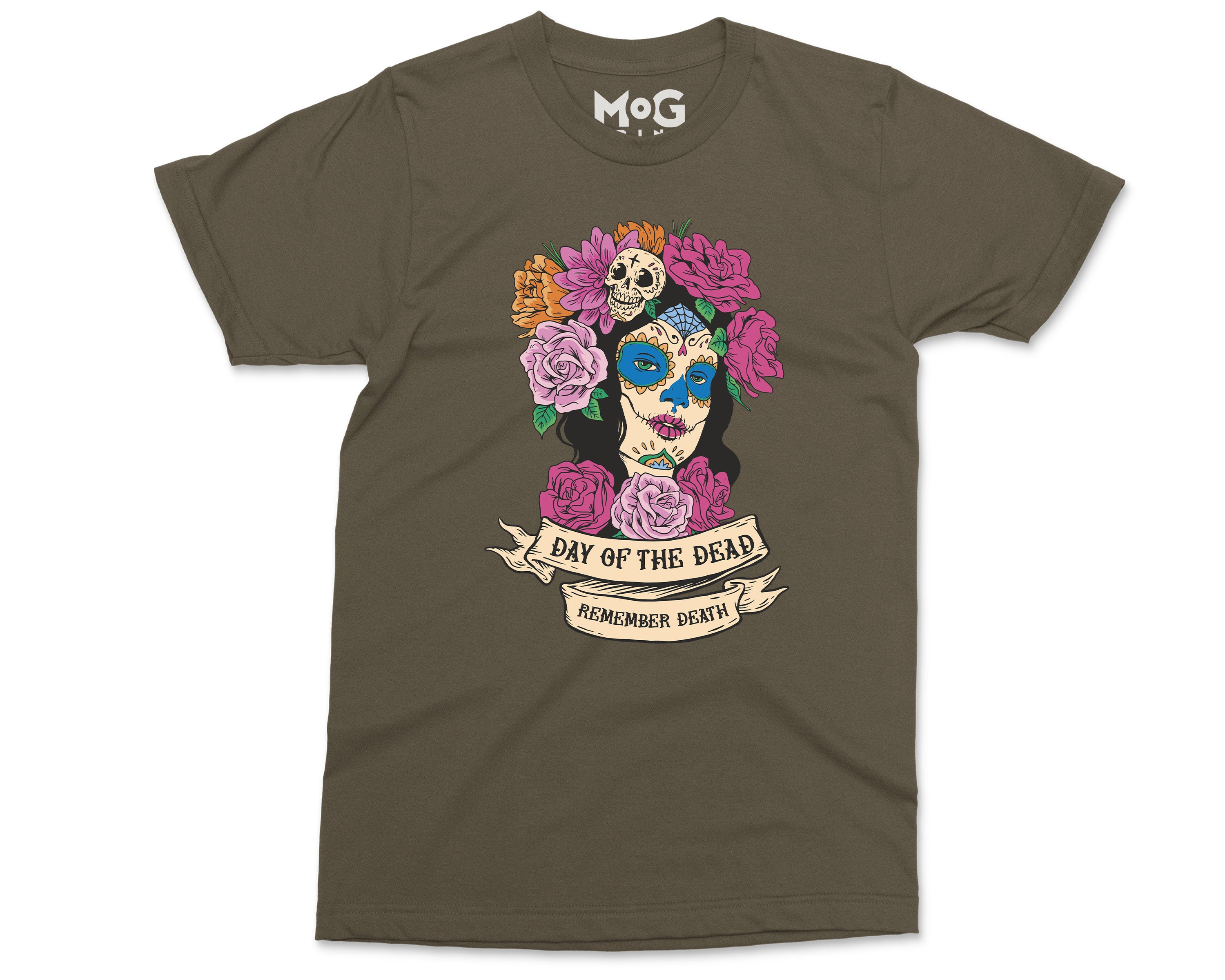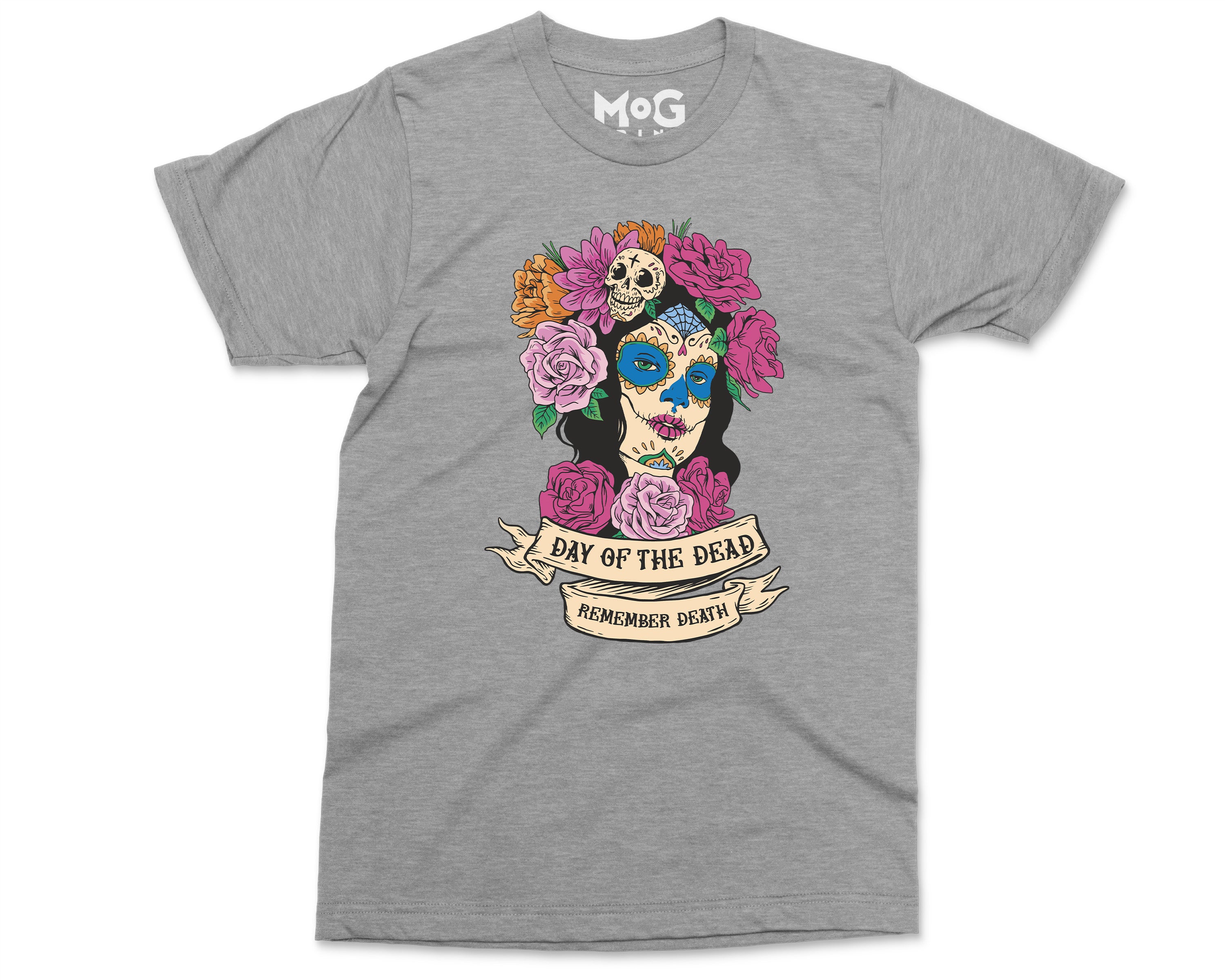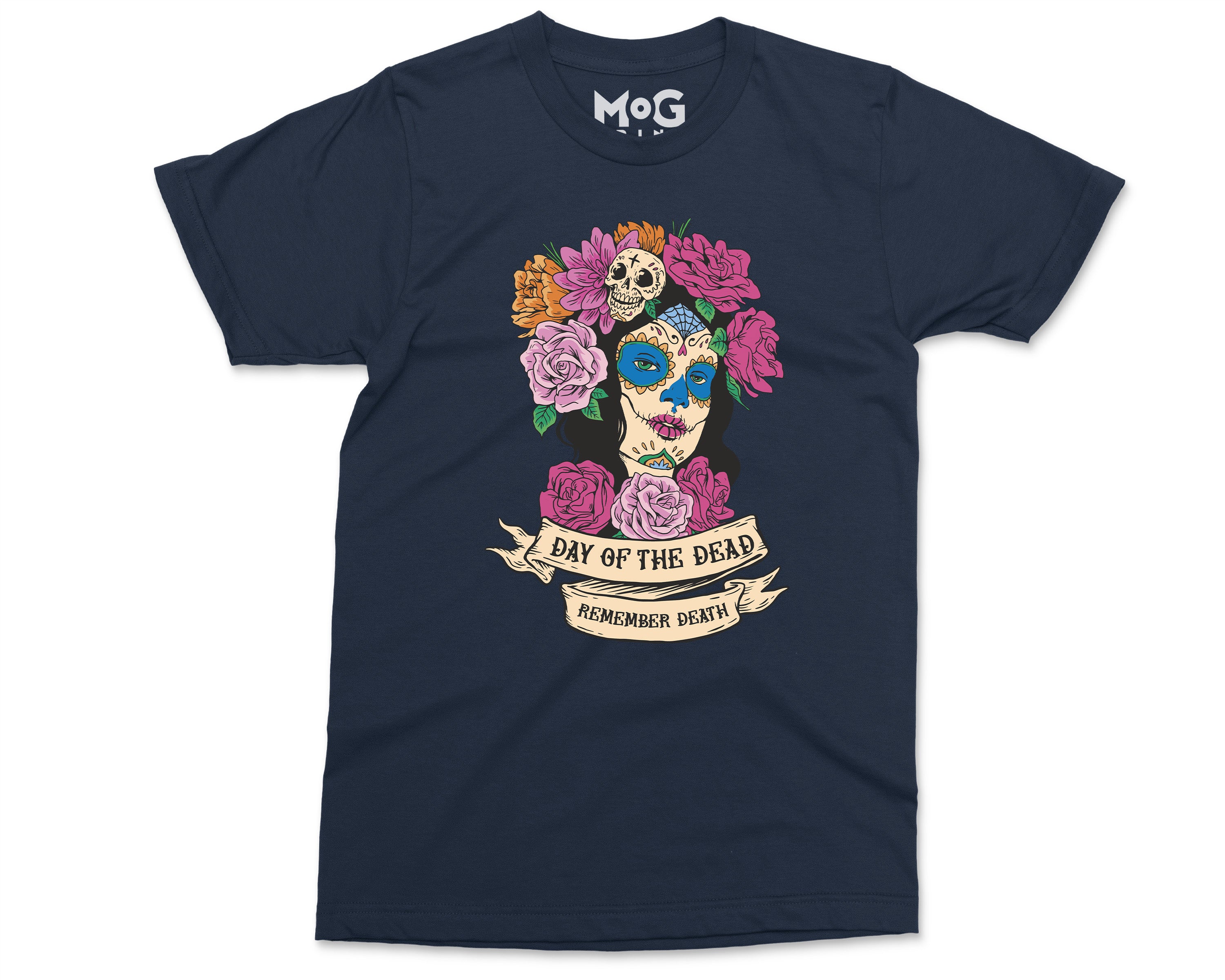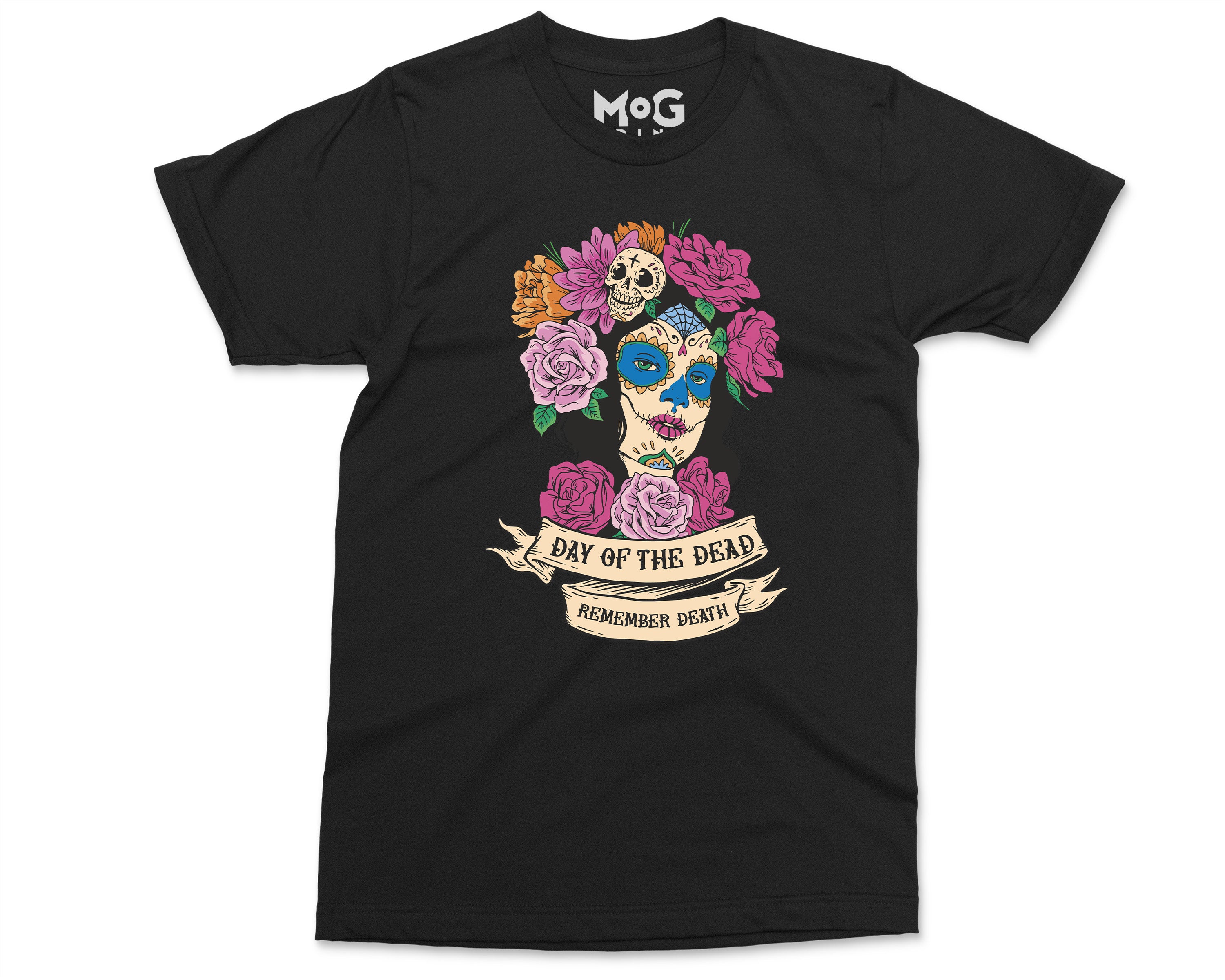 Halloween Death T-shirt, Dia De Los Muertos Costume Shirt, Day of the Dead Horror T-shirt Classic Sugar Skull Flowers Goth mexican Skull