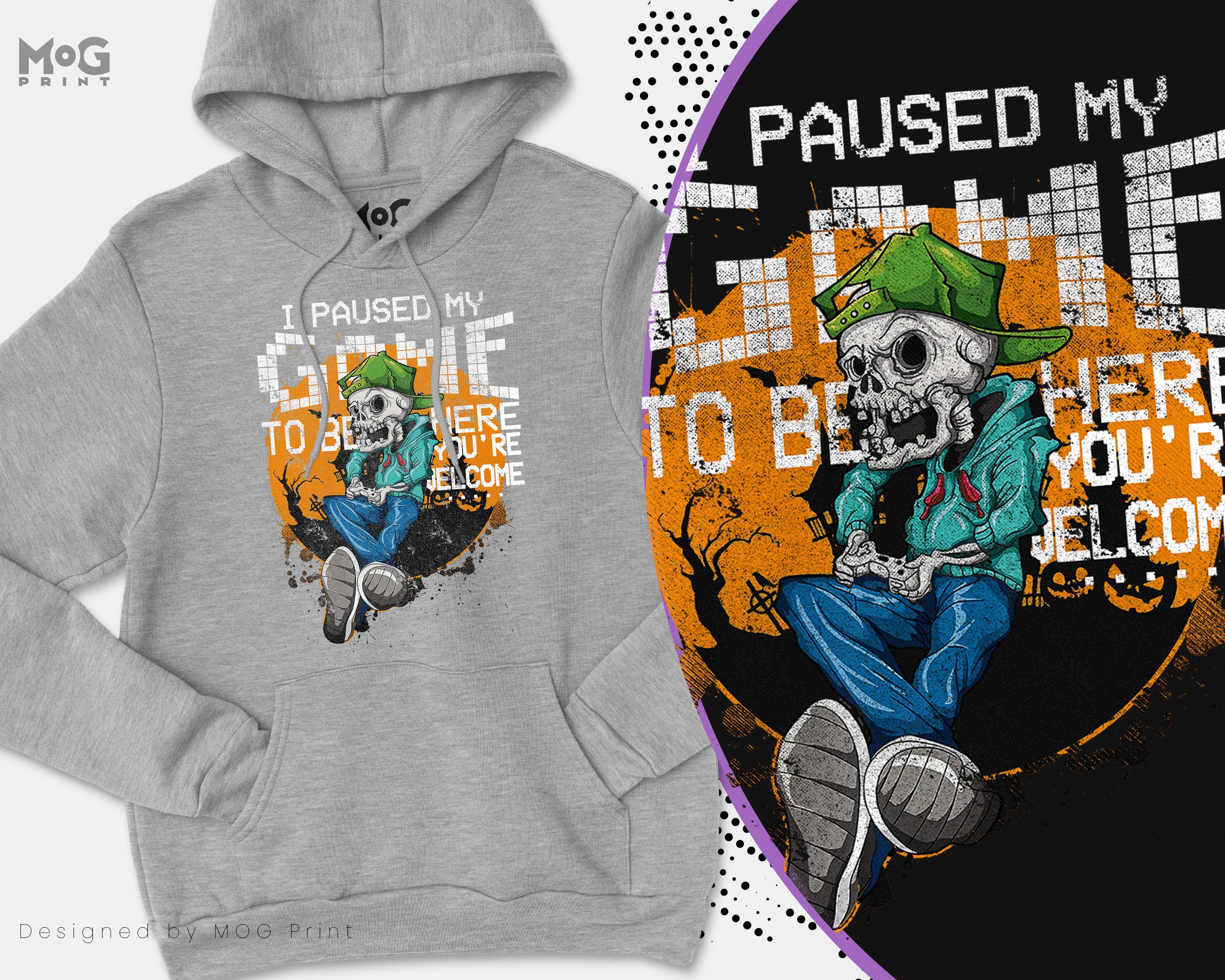 Halloween Gamer Hoodie I Paused My Game To Be Here. Funny Dead Skeleton Video Gamer Trick'R'TReat Unisex Long Sleeve Halloween Hoody 2022