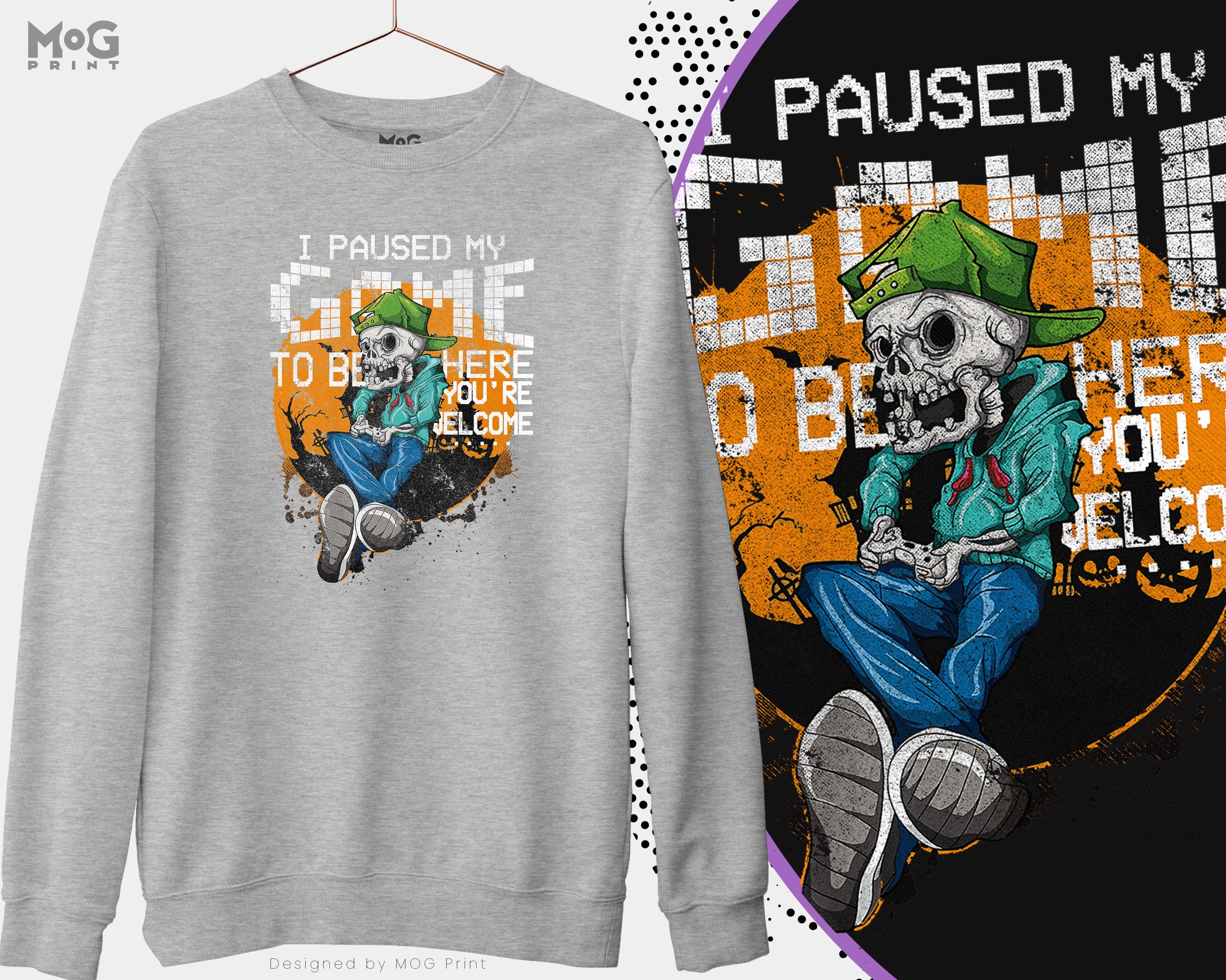 Halloween Gamer Sweatshirt, Paused My Game To Be Here Dead Video Game Player Kids Halloween Costume Unisex Jersey Long Sleeve Halloween Gift