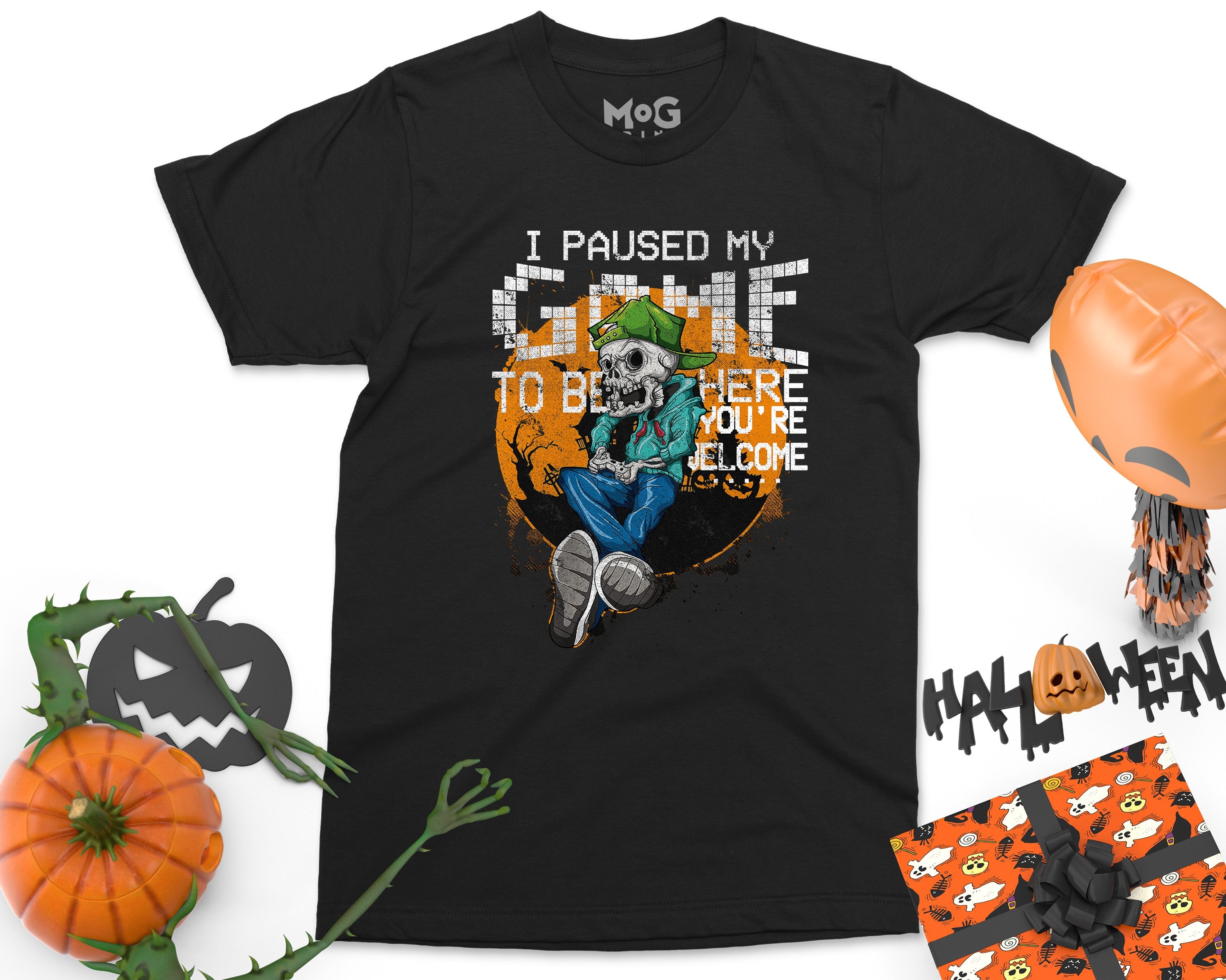 Halloween Gamer T-shirt I Paused My Game To Be Here Dead Skeleton Video Gaming T-shirt, Unisex Jersey Short Sleeve Halloween Gift Unisex Tee
