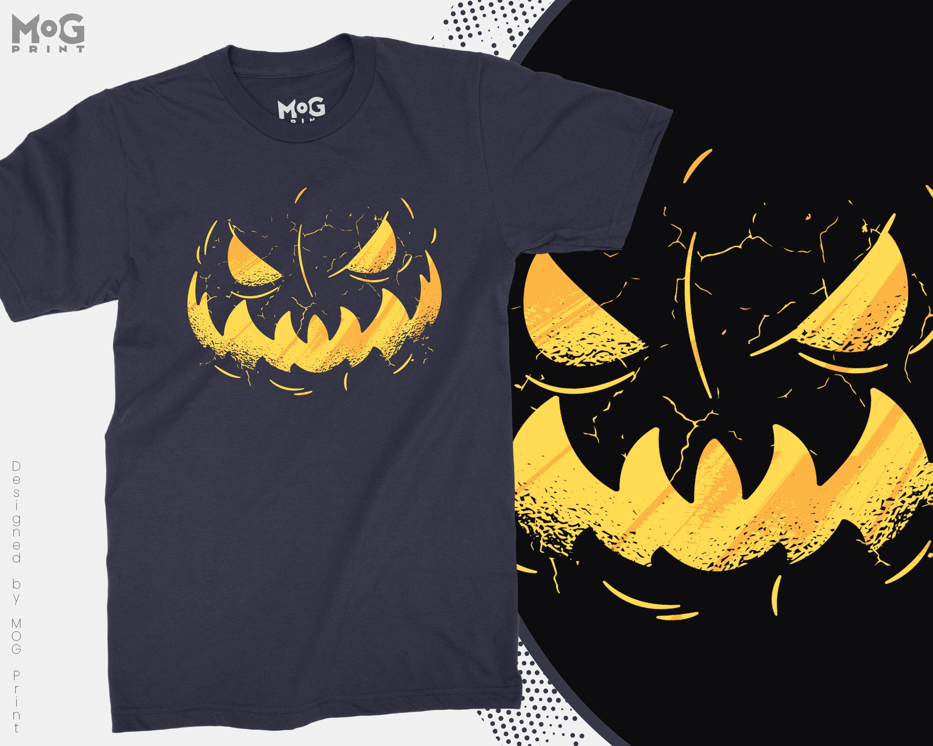 Halloween Jack-O Lantern Costume T-shirt, Funny Scary Pumpkin Smiling Face Graphic Shadow Halloween Gift Top For Kids Adults