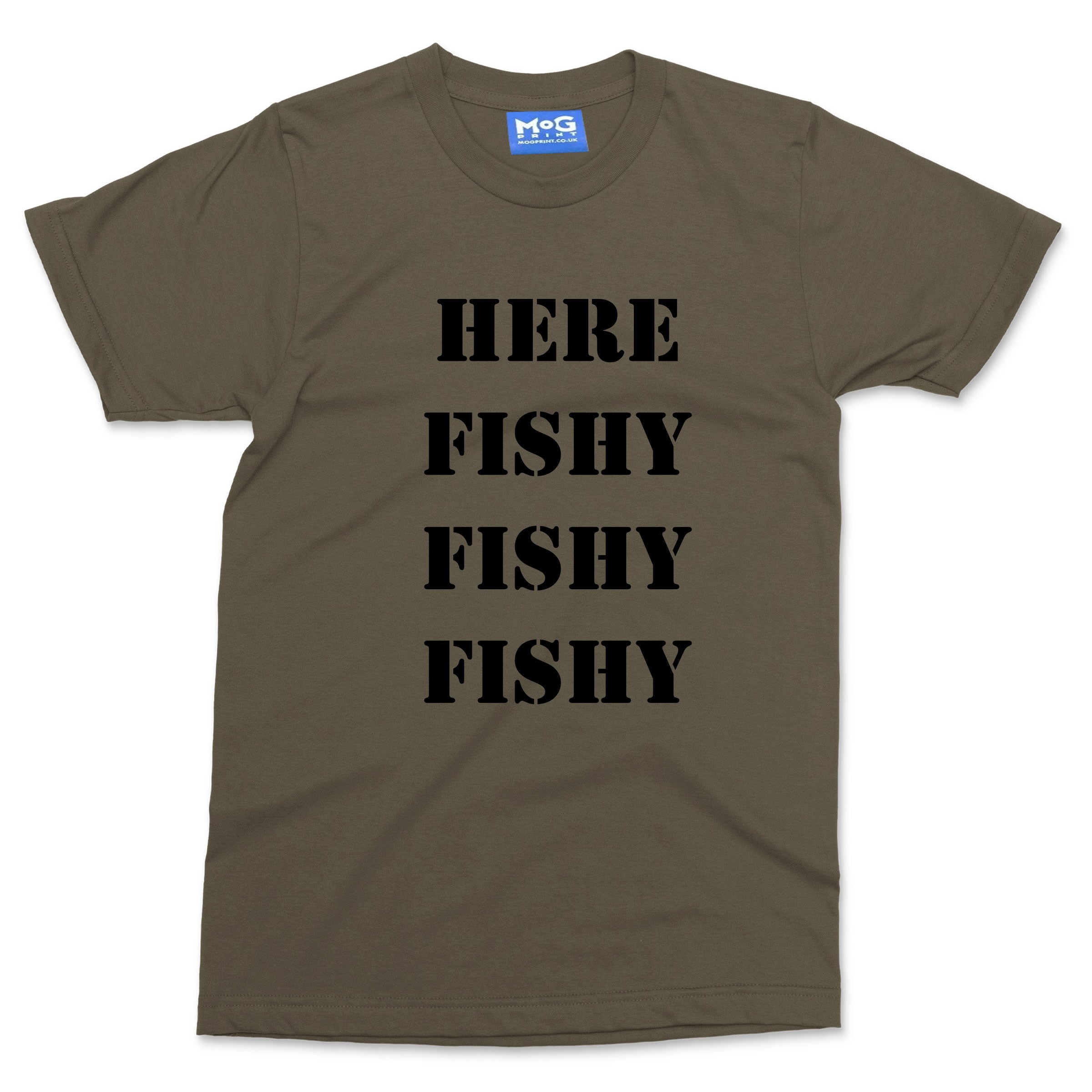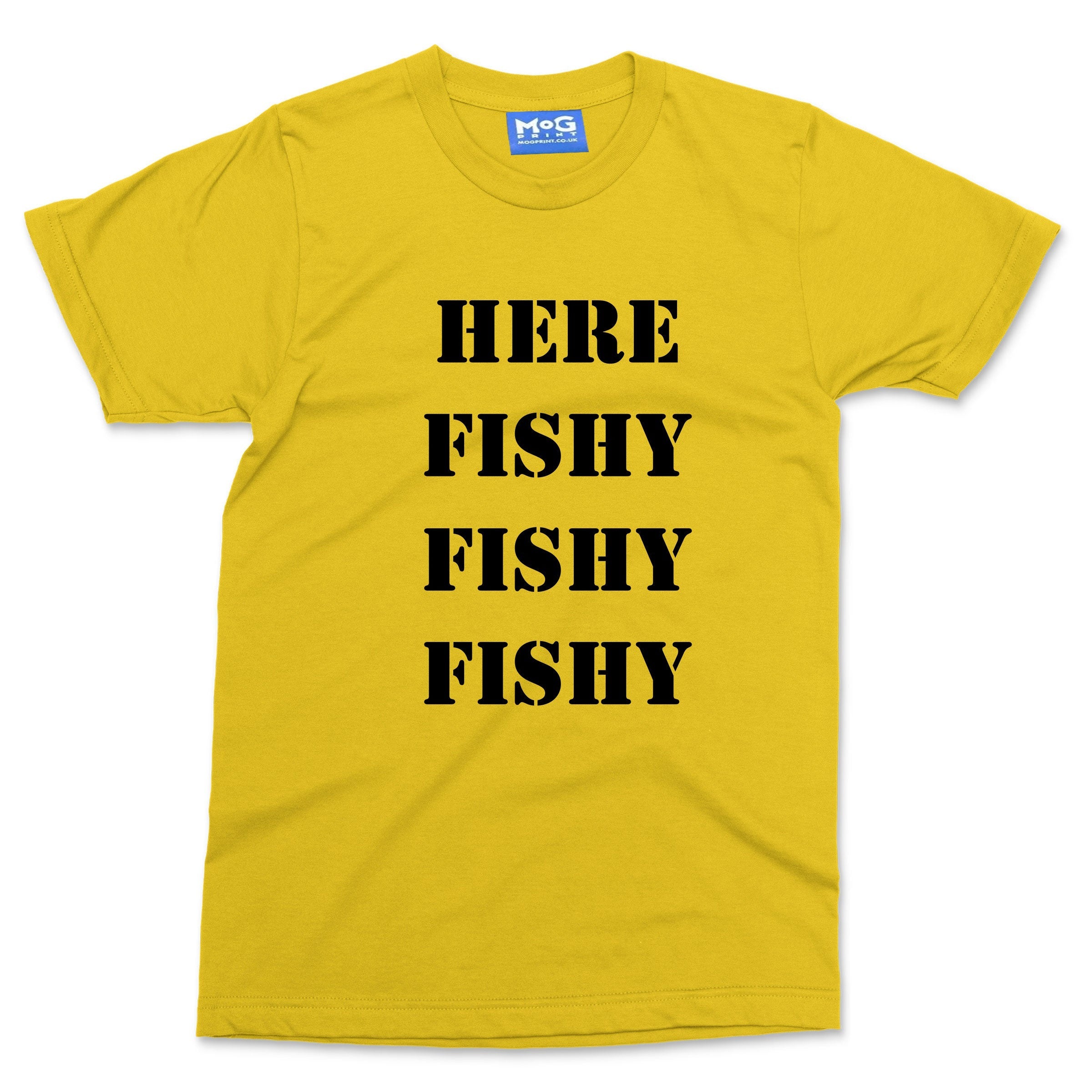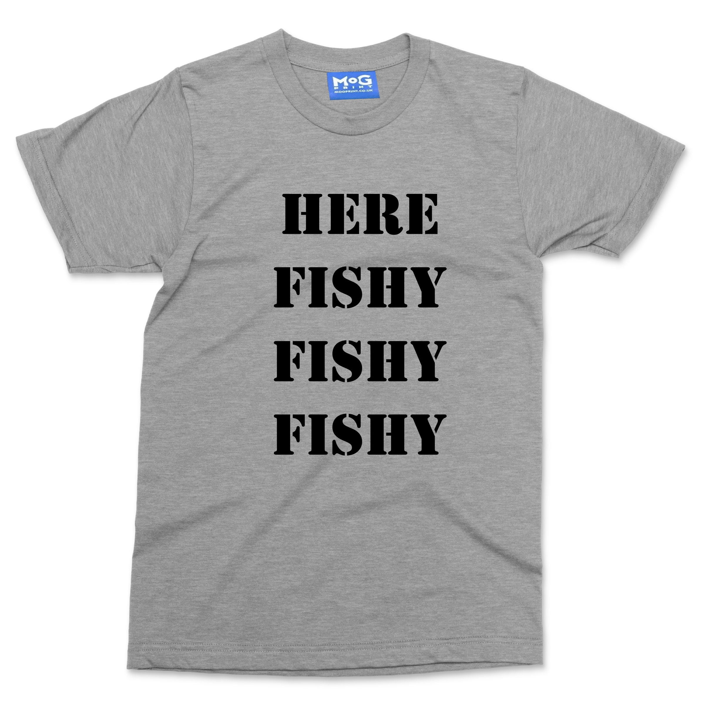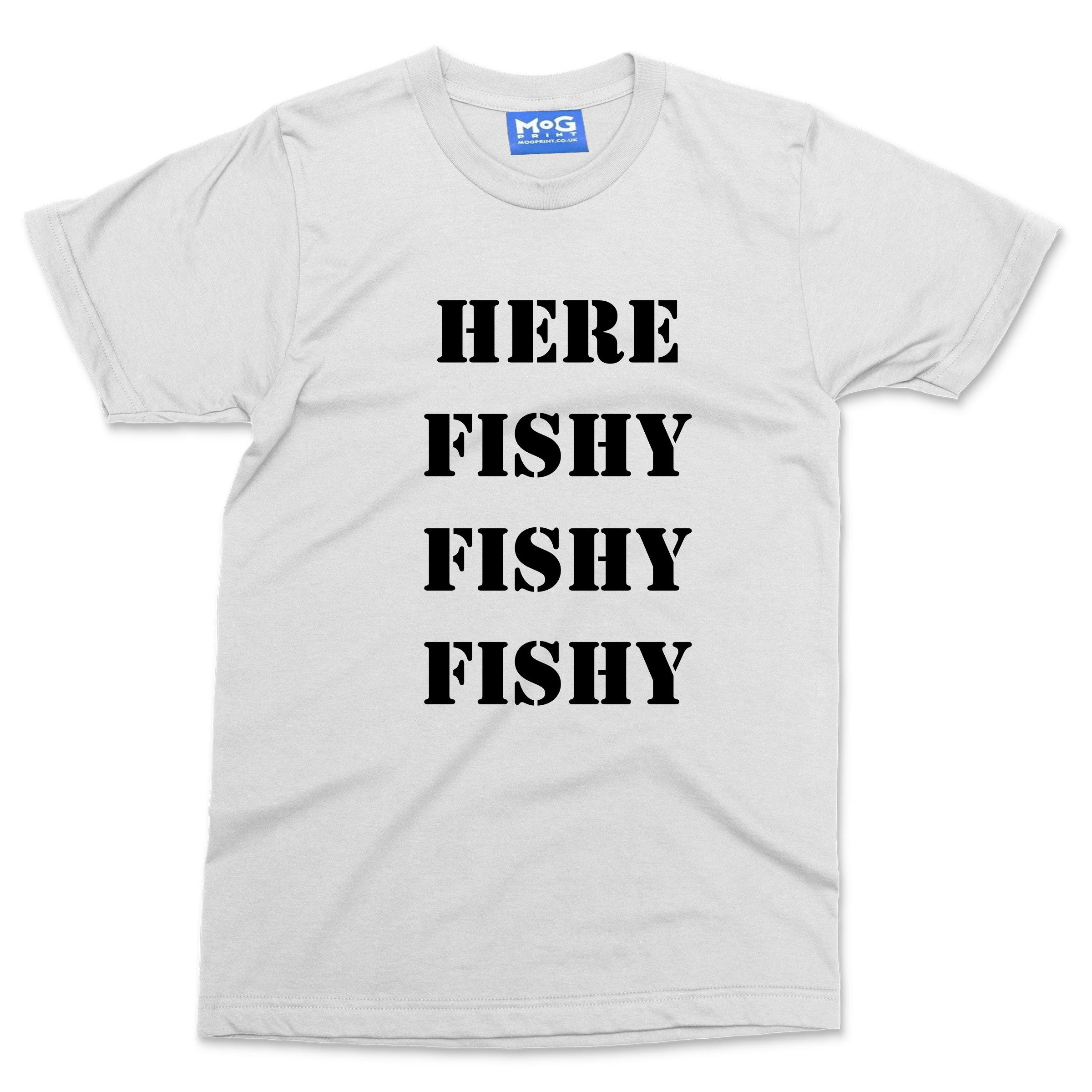 Here Fishy Fishy T-shirt Funny Fishing Fisherman Angler Slogan Tee Gift Present