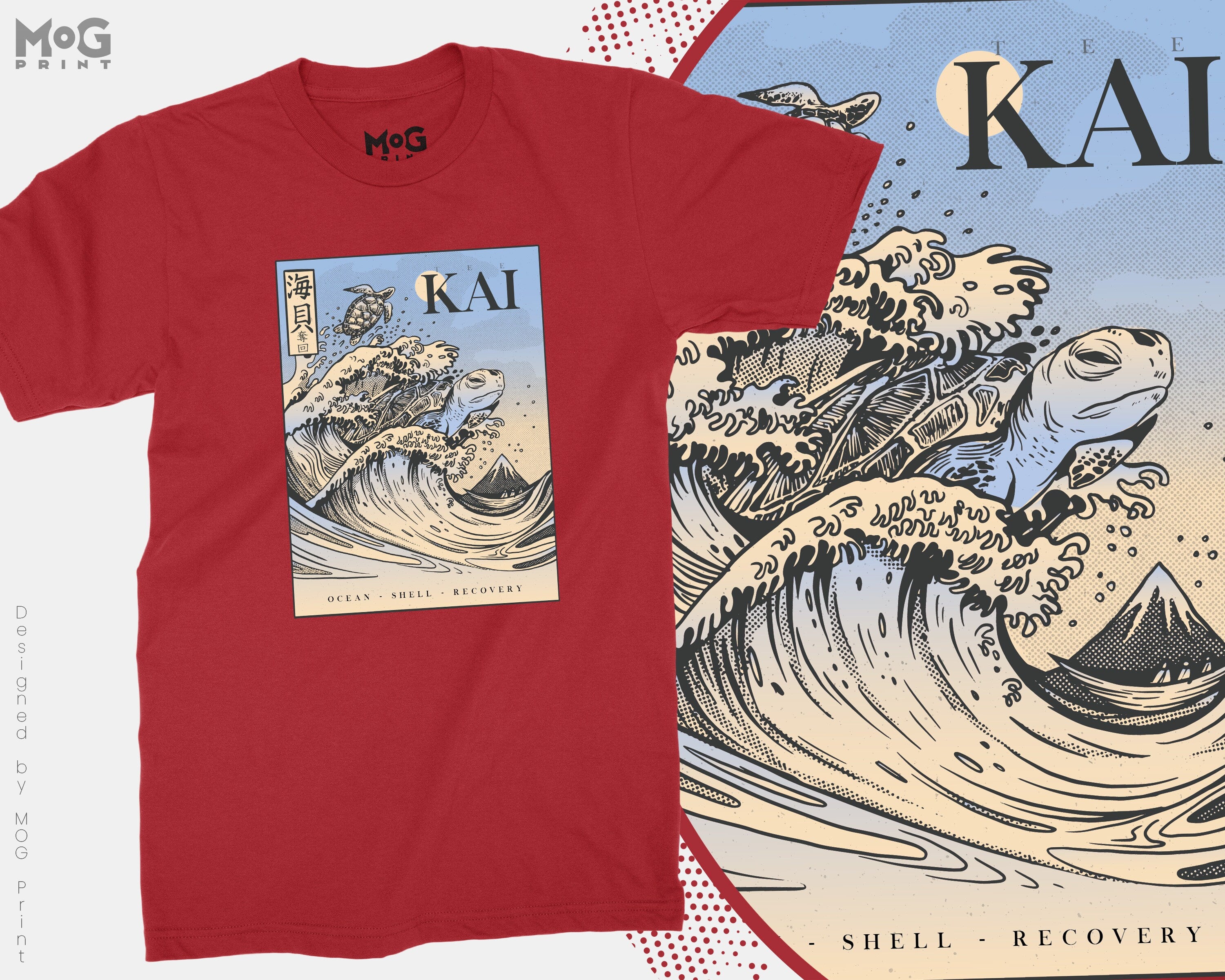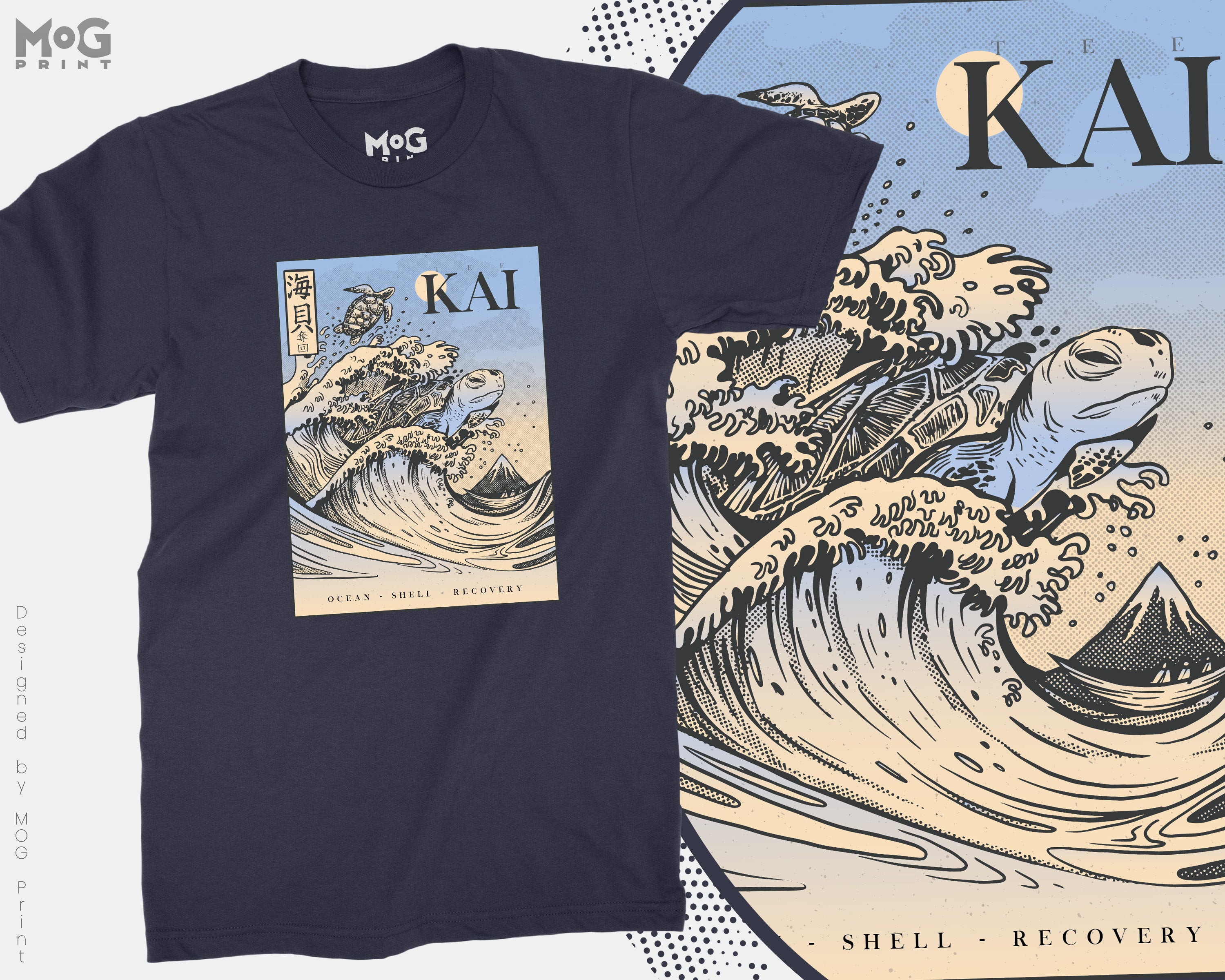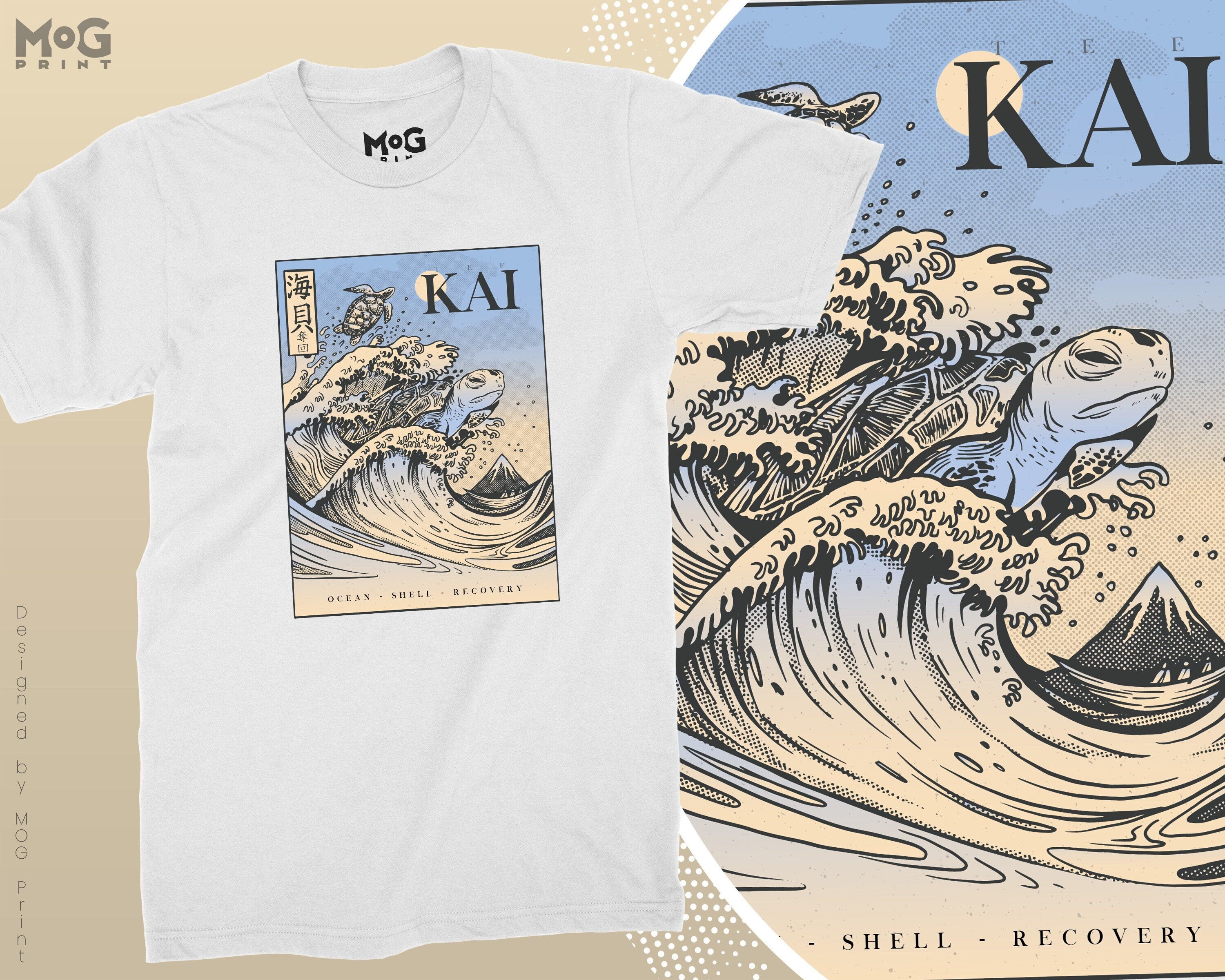 Japanese Kanagawa The Great Wave T-shirt Turtle Kanji Top Edo Frog Tee