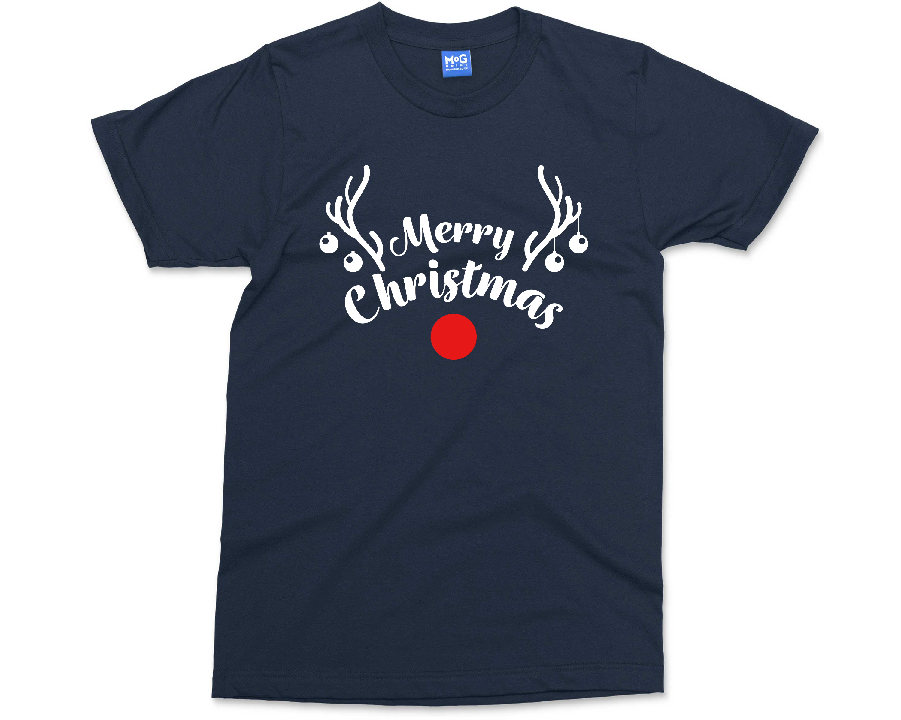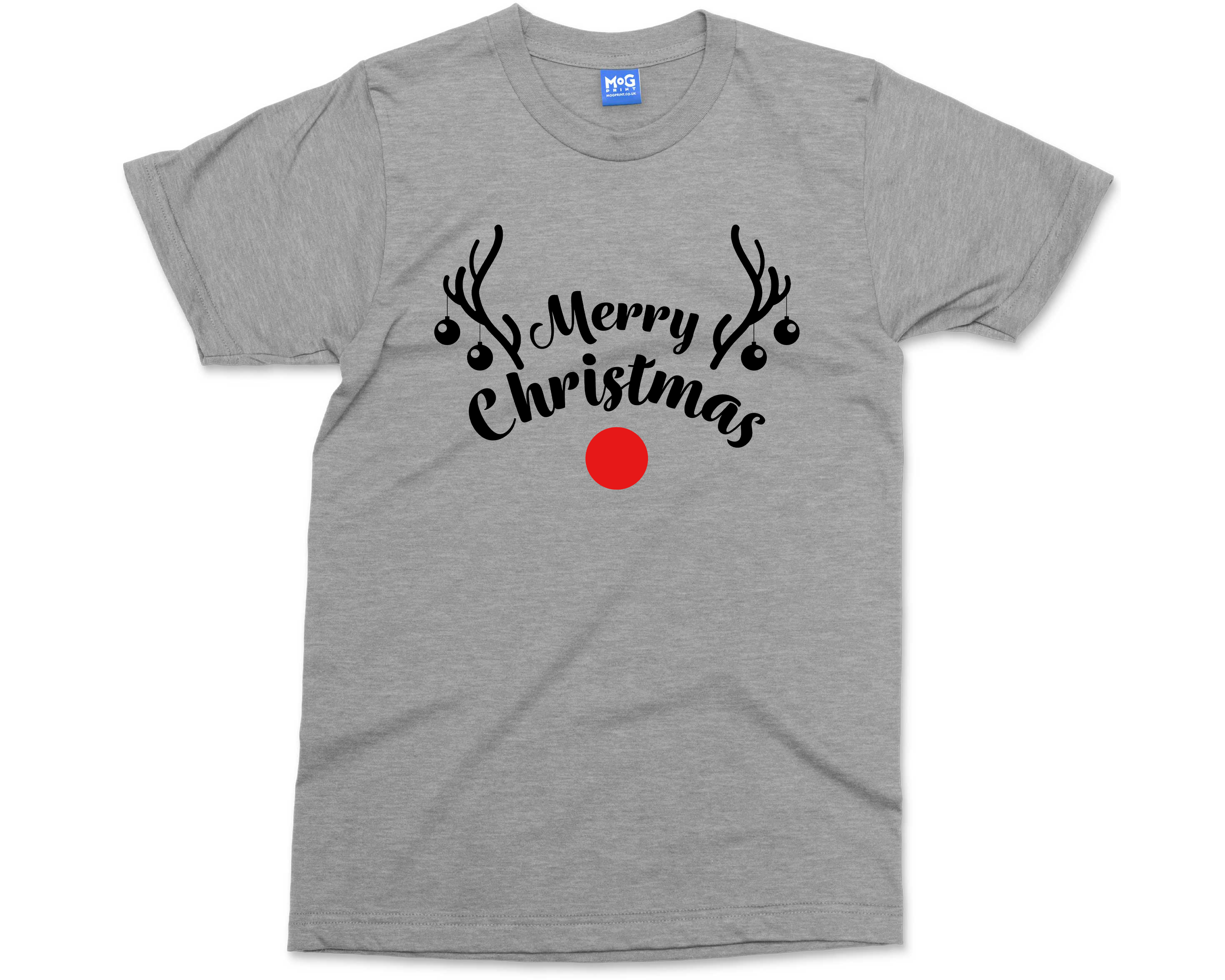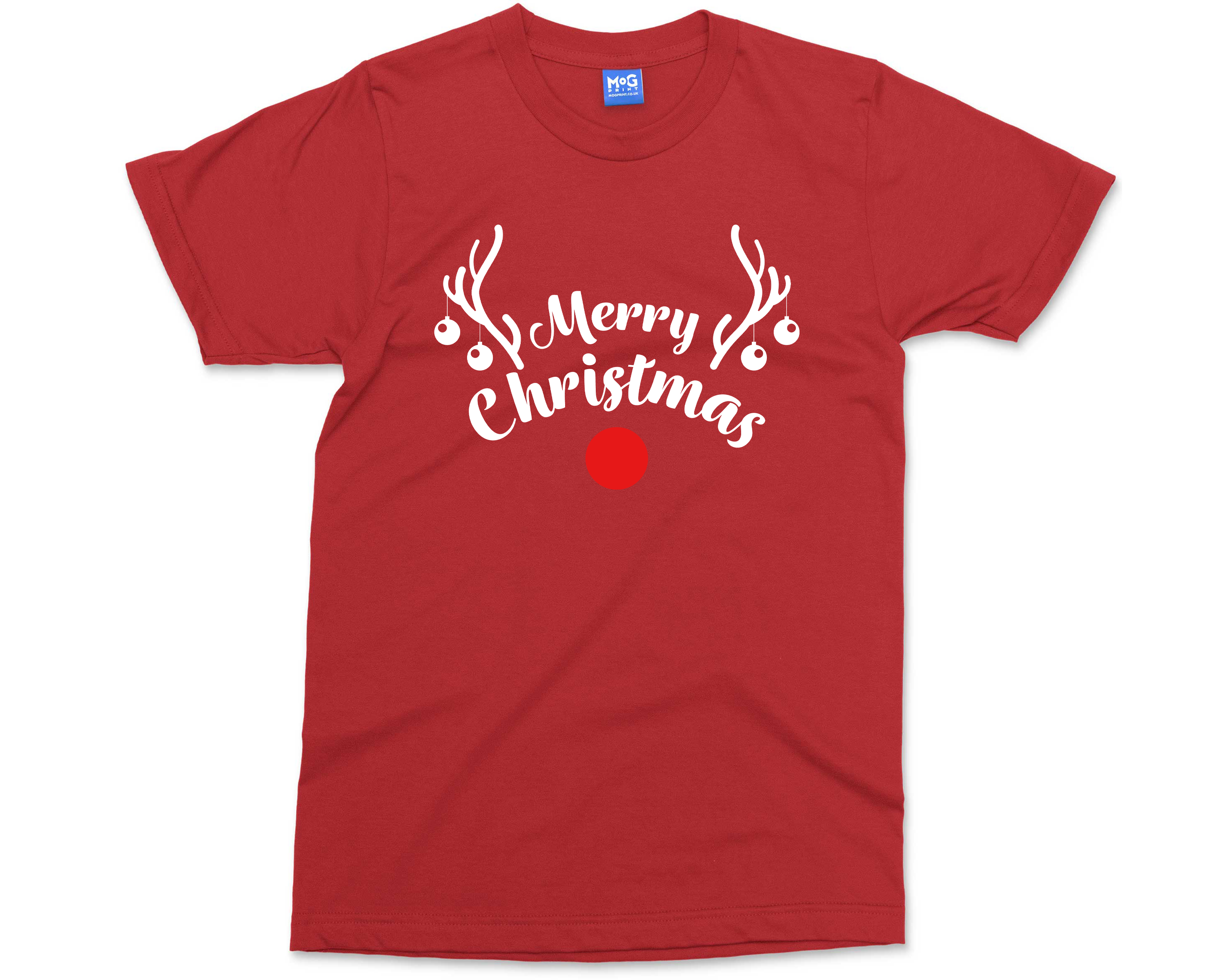Merry Christmas Reindeer T-shirt Red Nose Rudolph Antlers Face Shirt Xmas Gifts