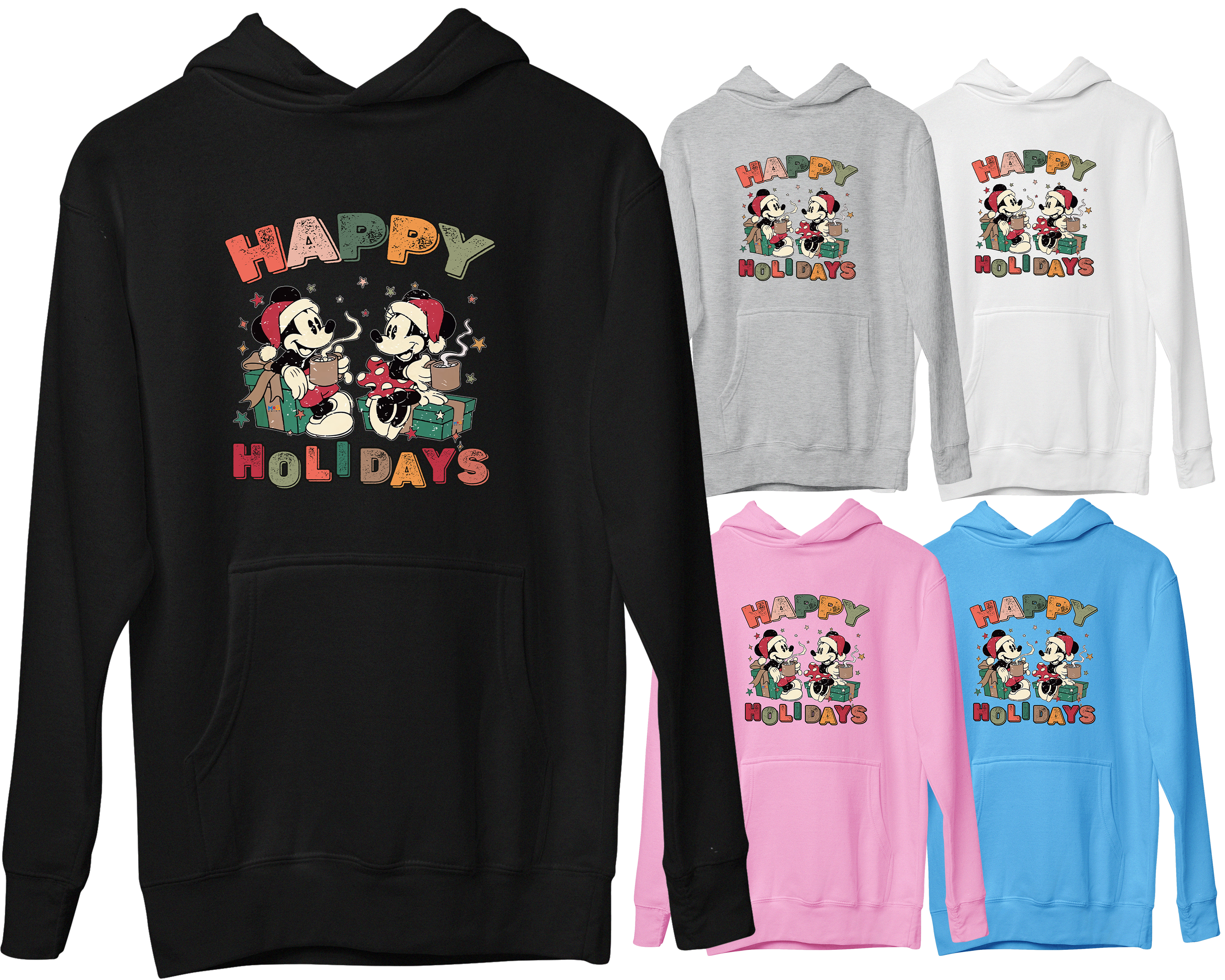 Mickey & Minnie Happy Holidays Hoodie Christmas Disney Hoody Xmas Gift