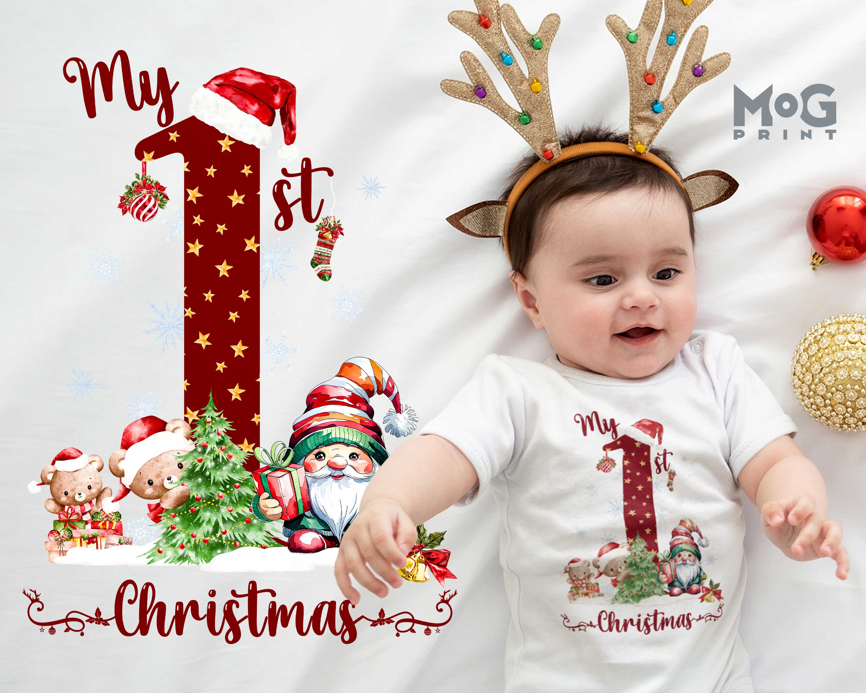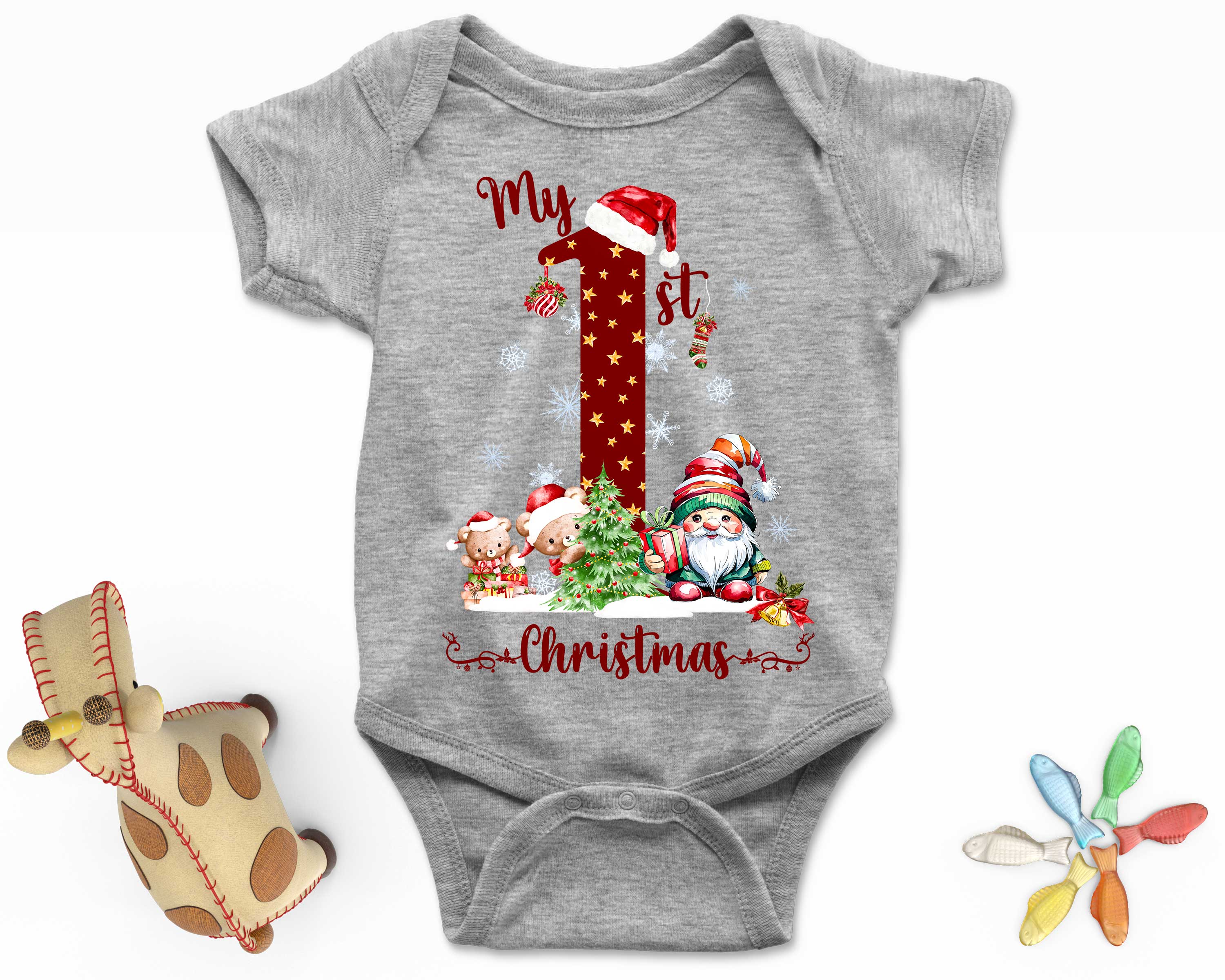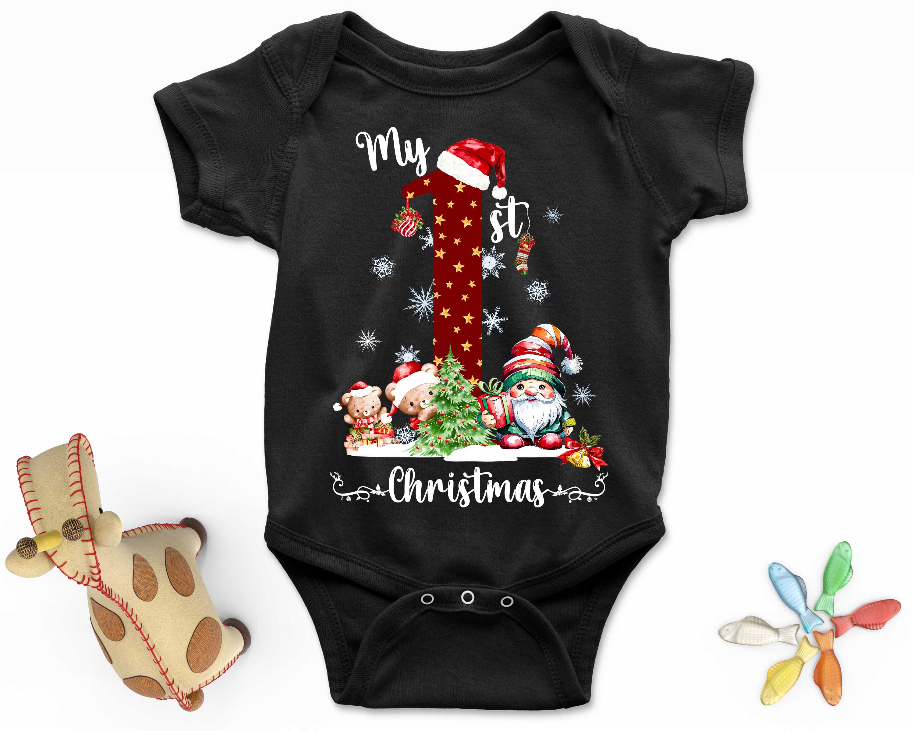 My 1st Christmas Babysuit Xmas Theme Party Teddy Bears & Santa Romper