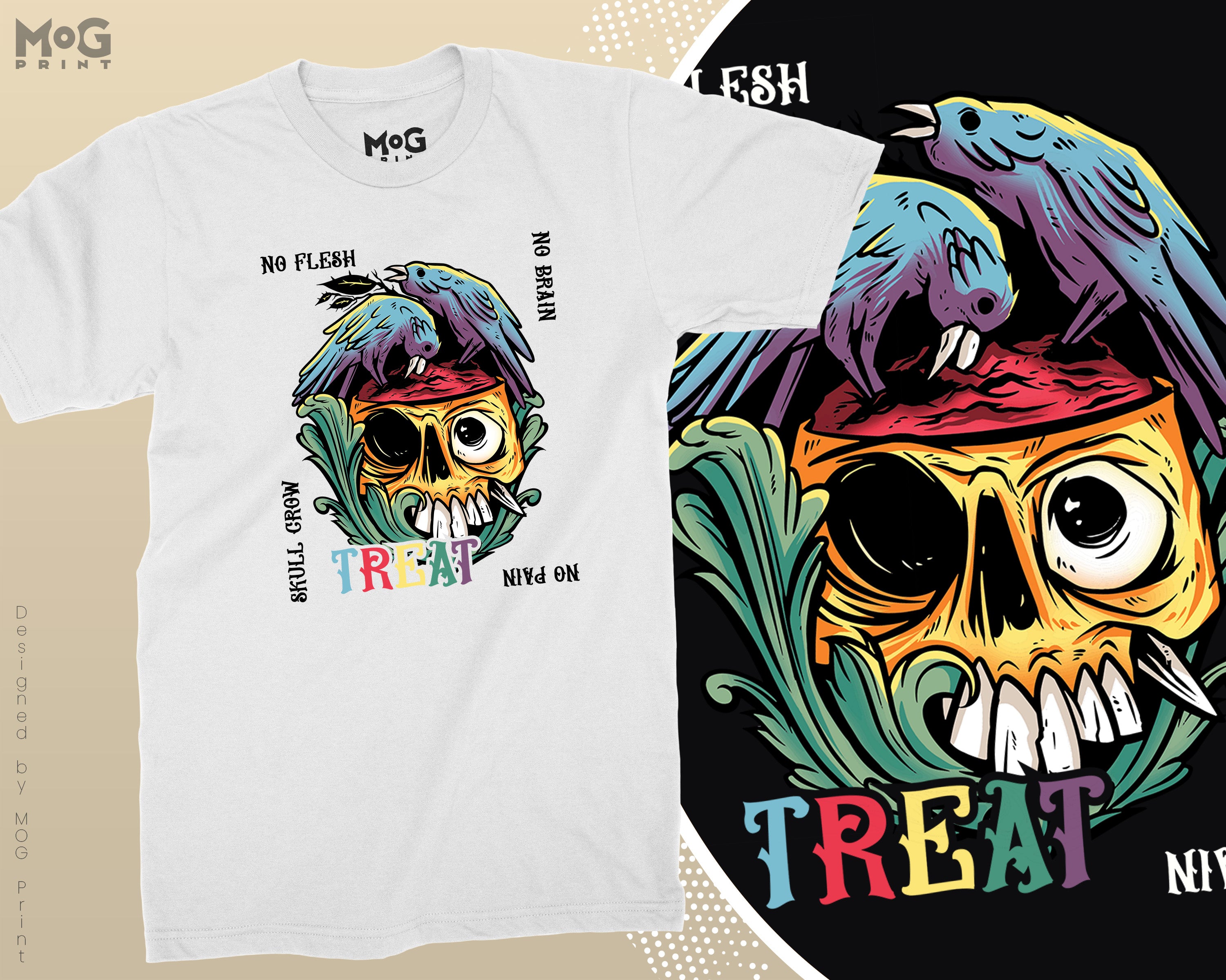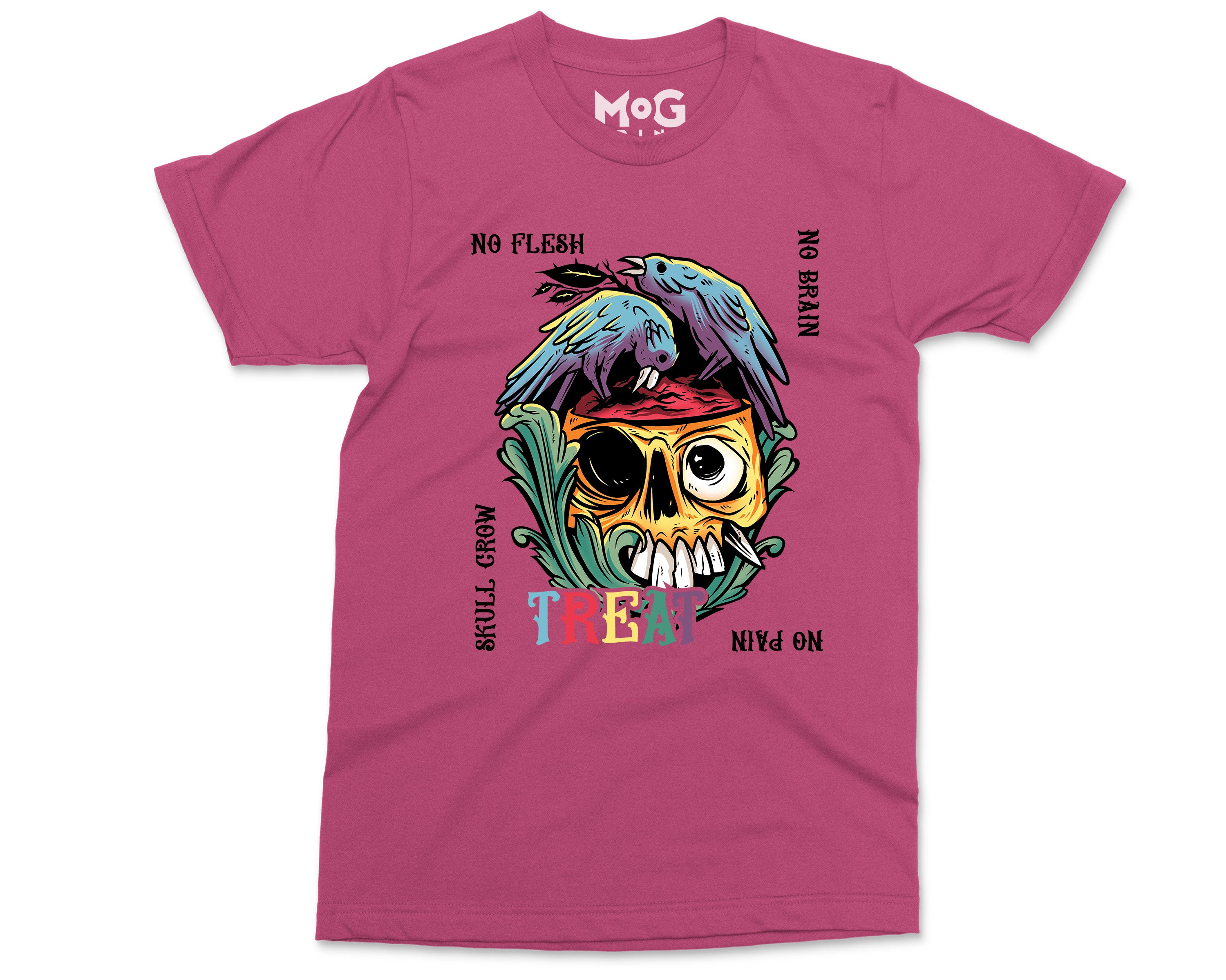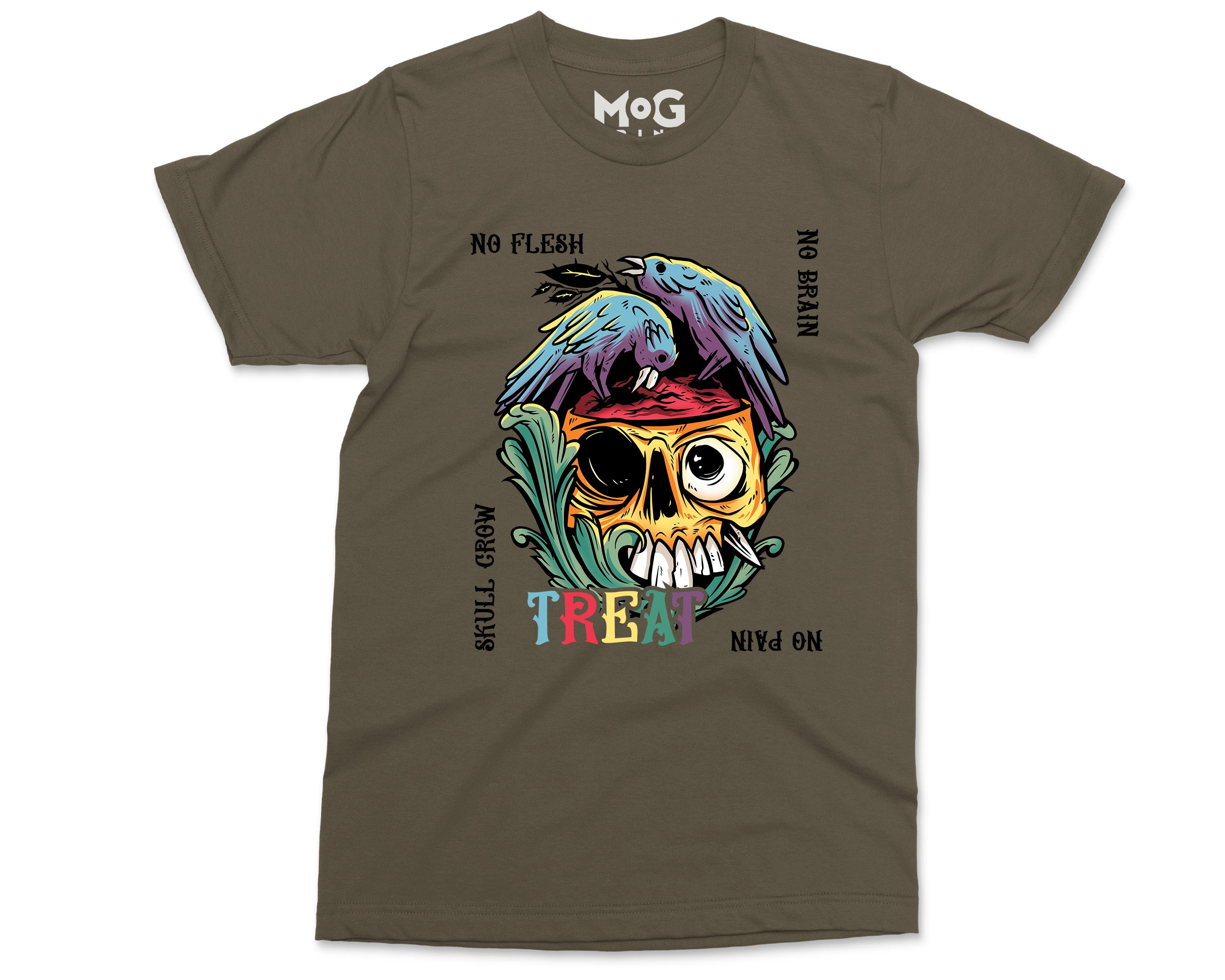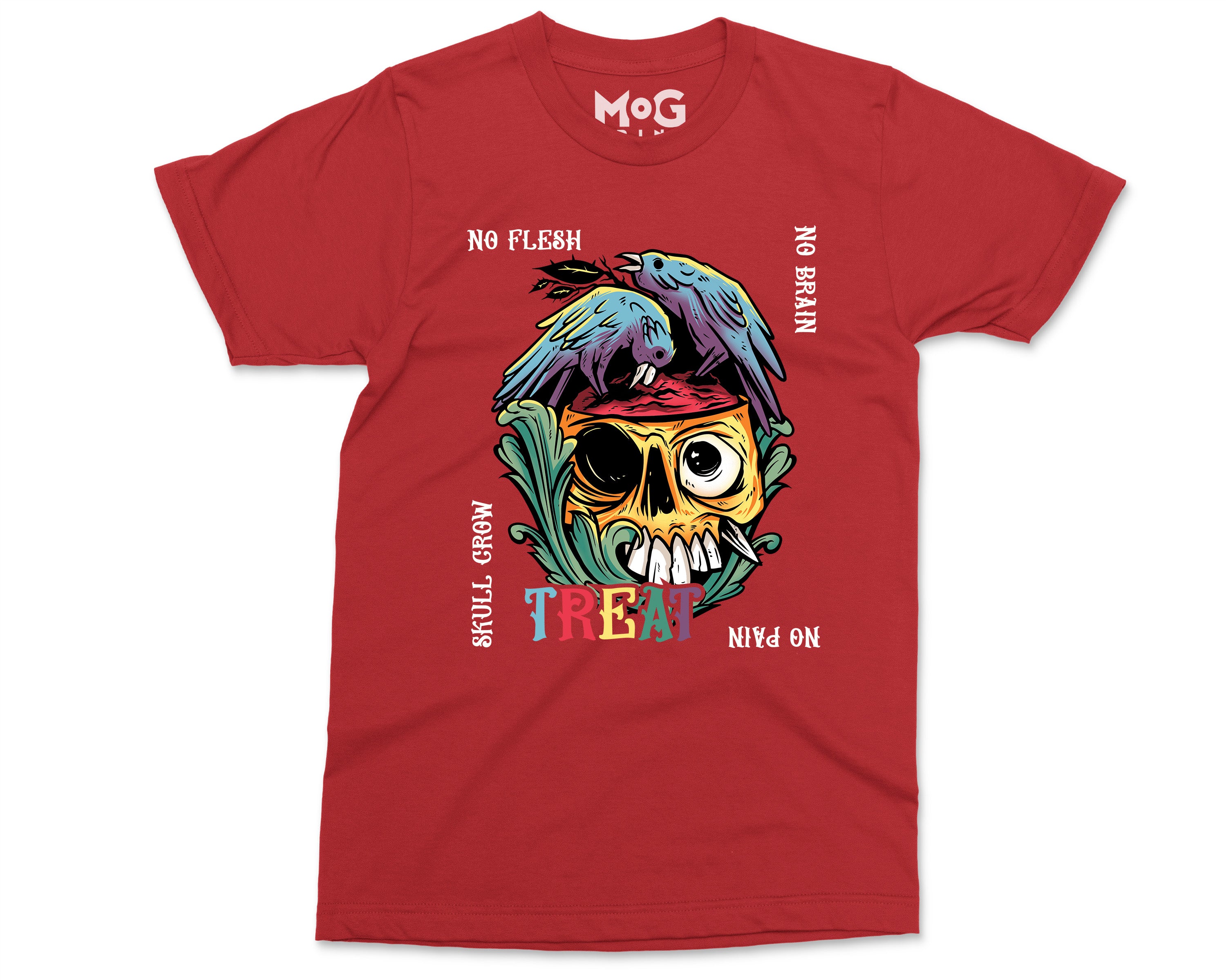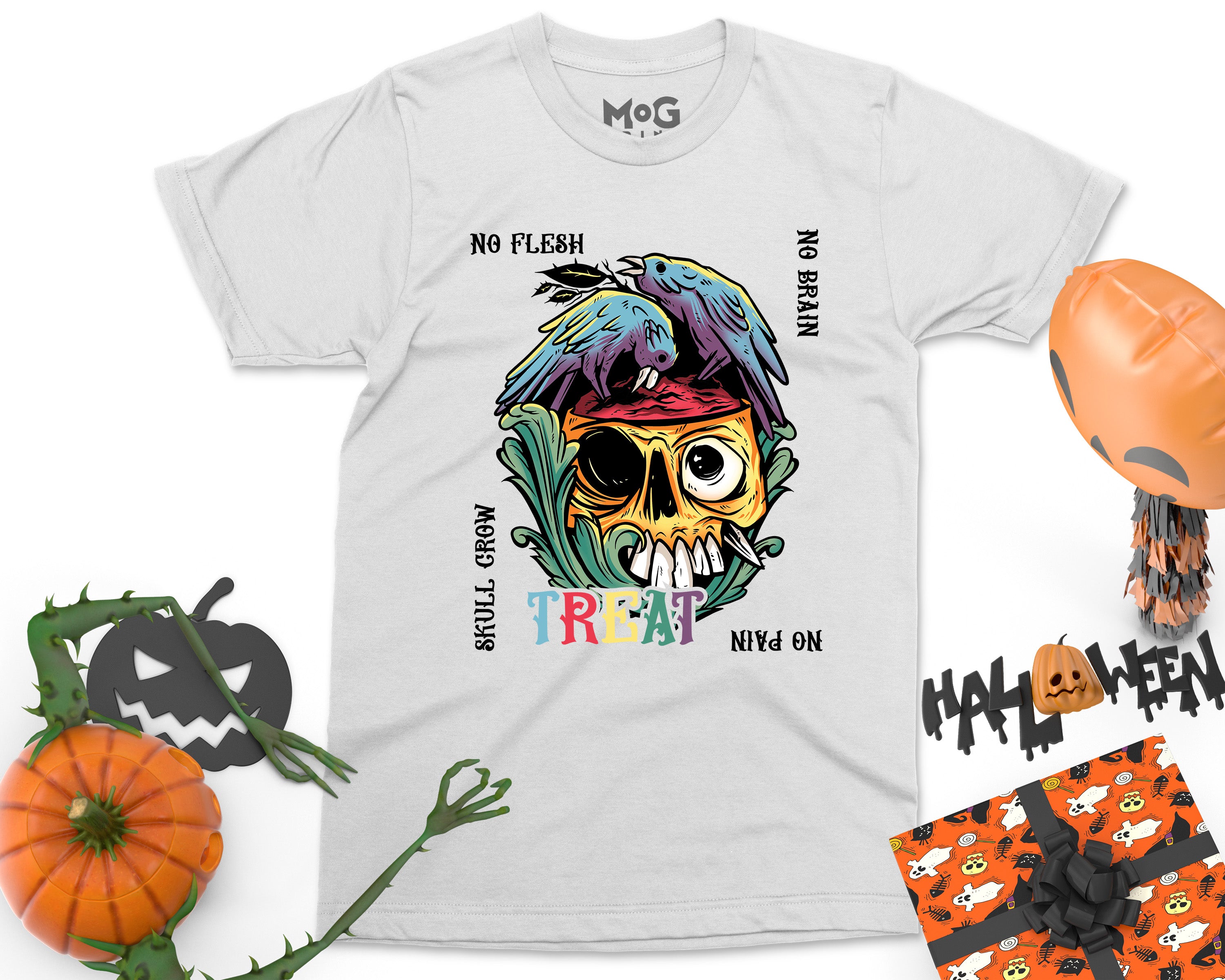 No Flesh No Brain No Pain Halloween T-shirt, Skull Carcass Birds Shirt, Halloween Gifts Scary Horror Graphic Halloween Shirt for Men Women