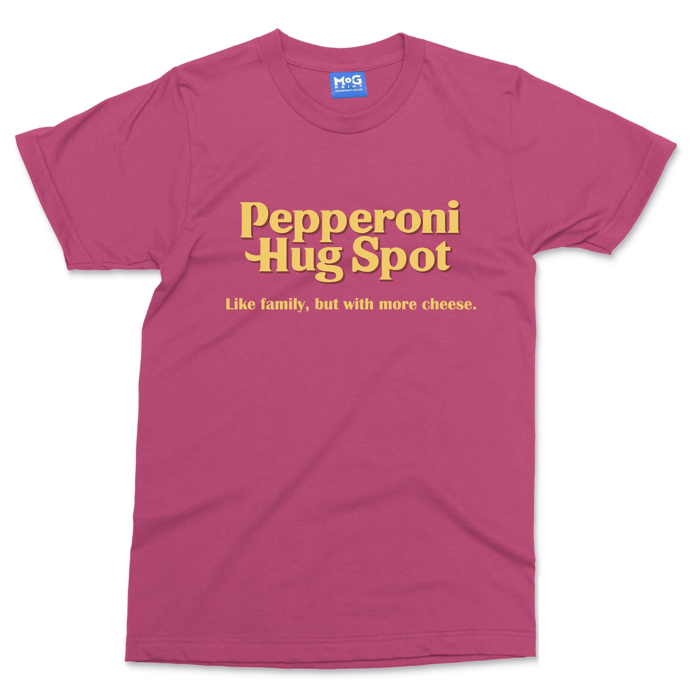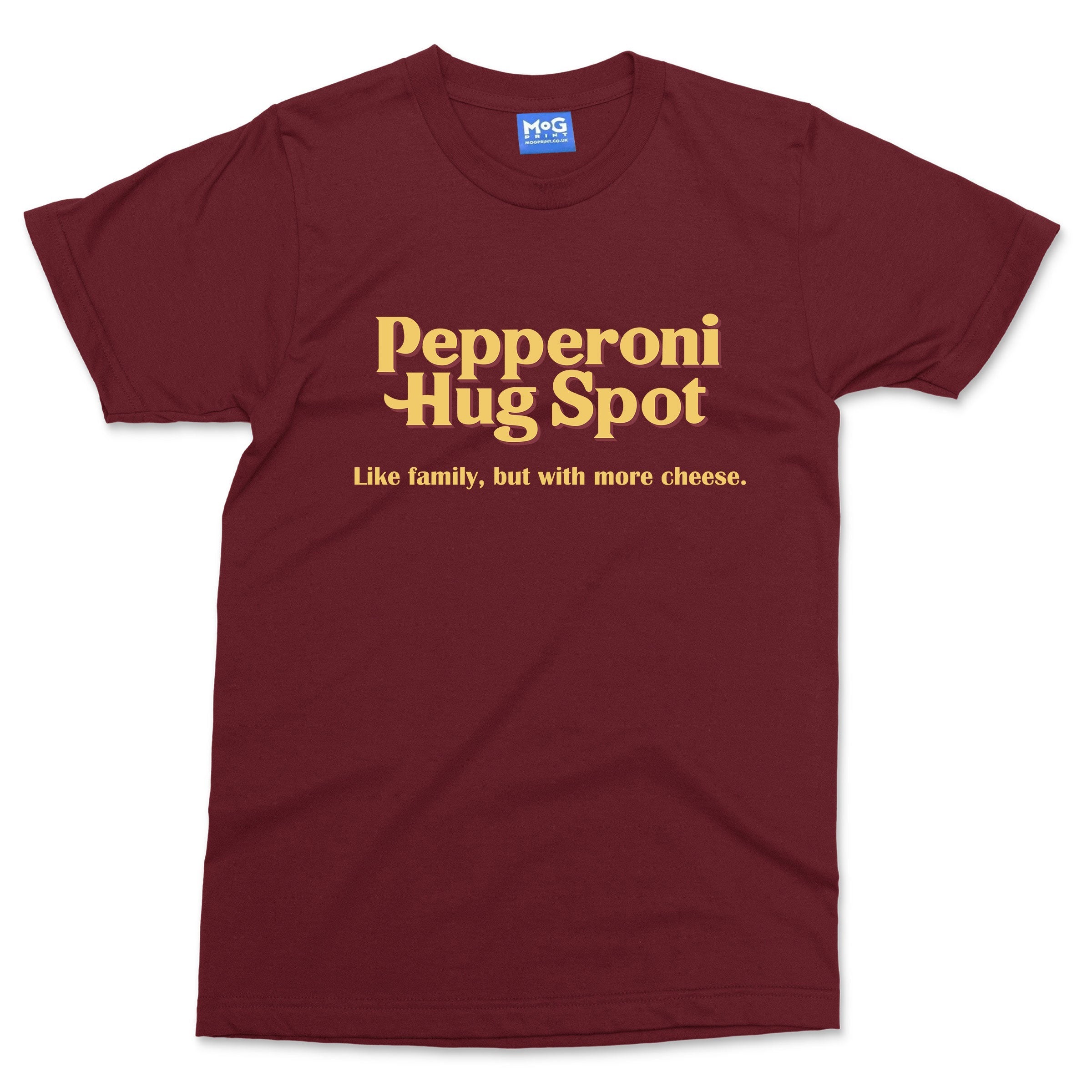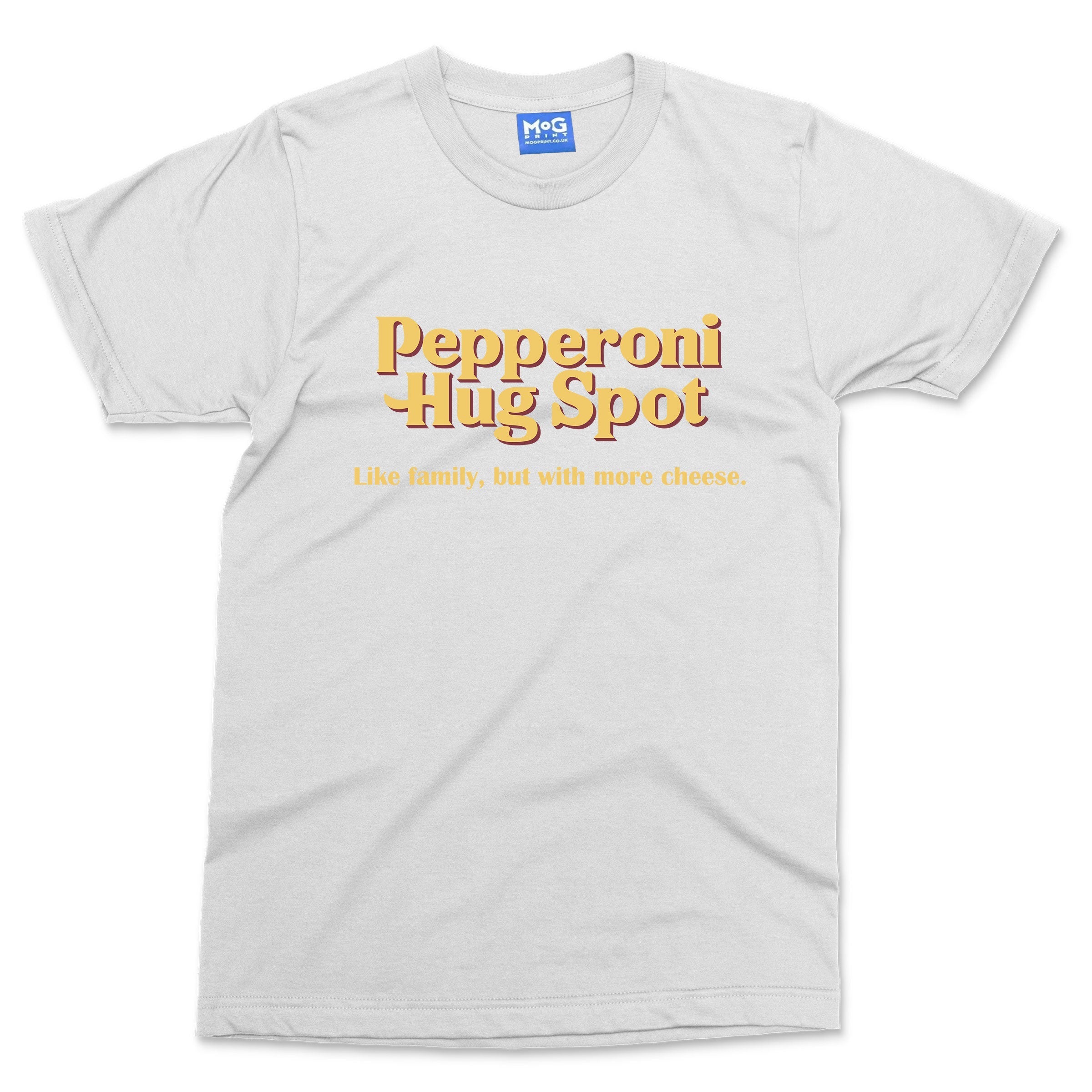 Pepperoni Hug Spot T-shirt Funny AI Fake Commercial Trending Pizza Lover Tee
