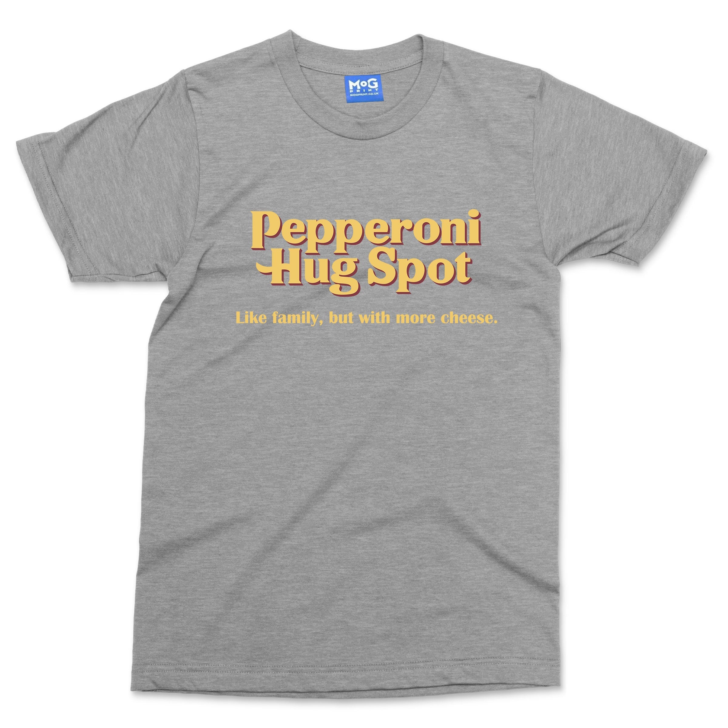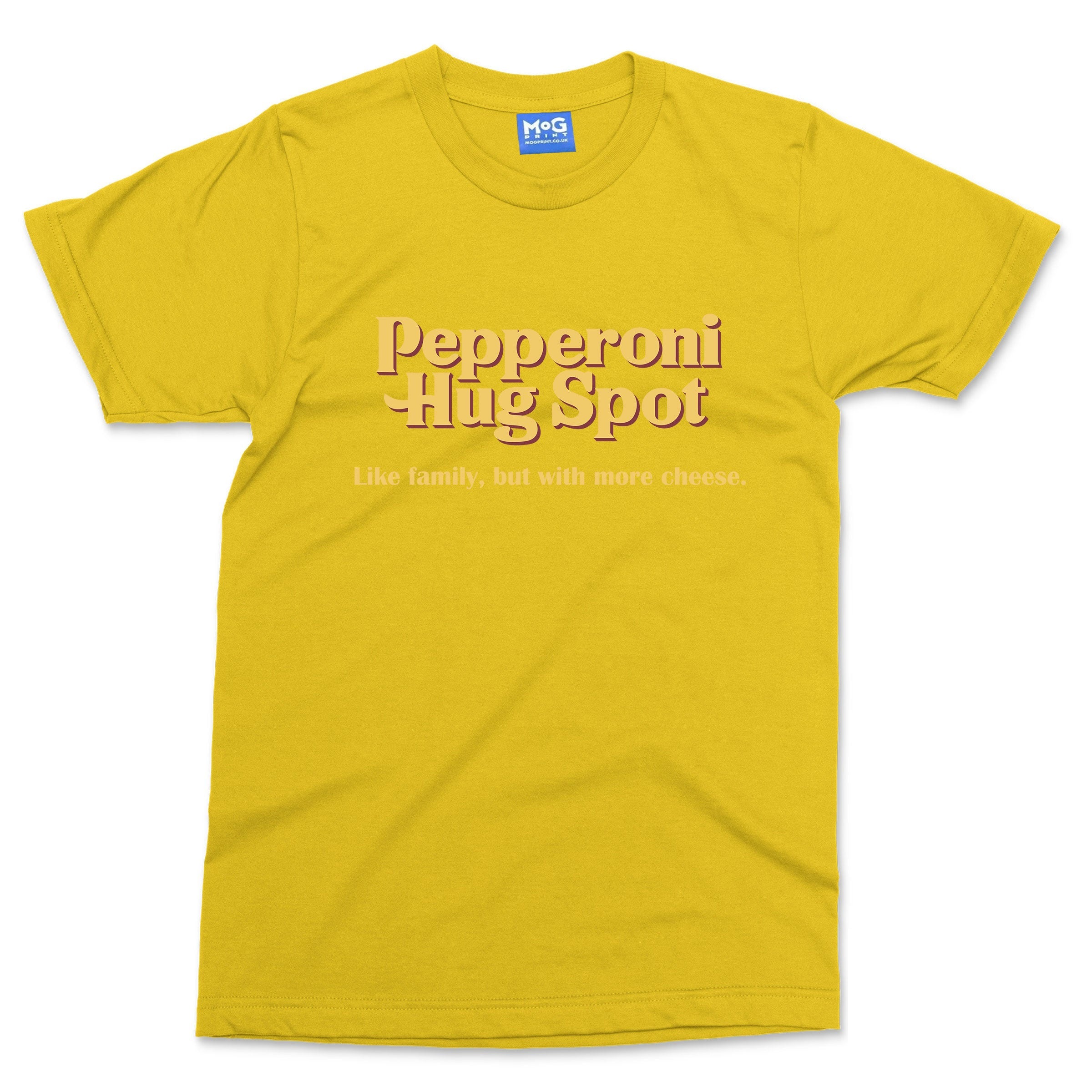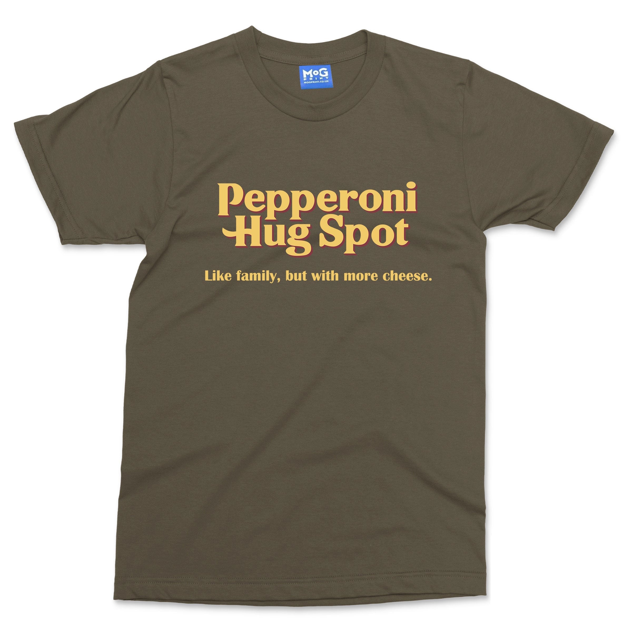 Pepperoni Hug Spot T-shirt Funny AI Fake Commercial Trending Pizza Lover Tee