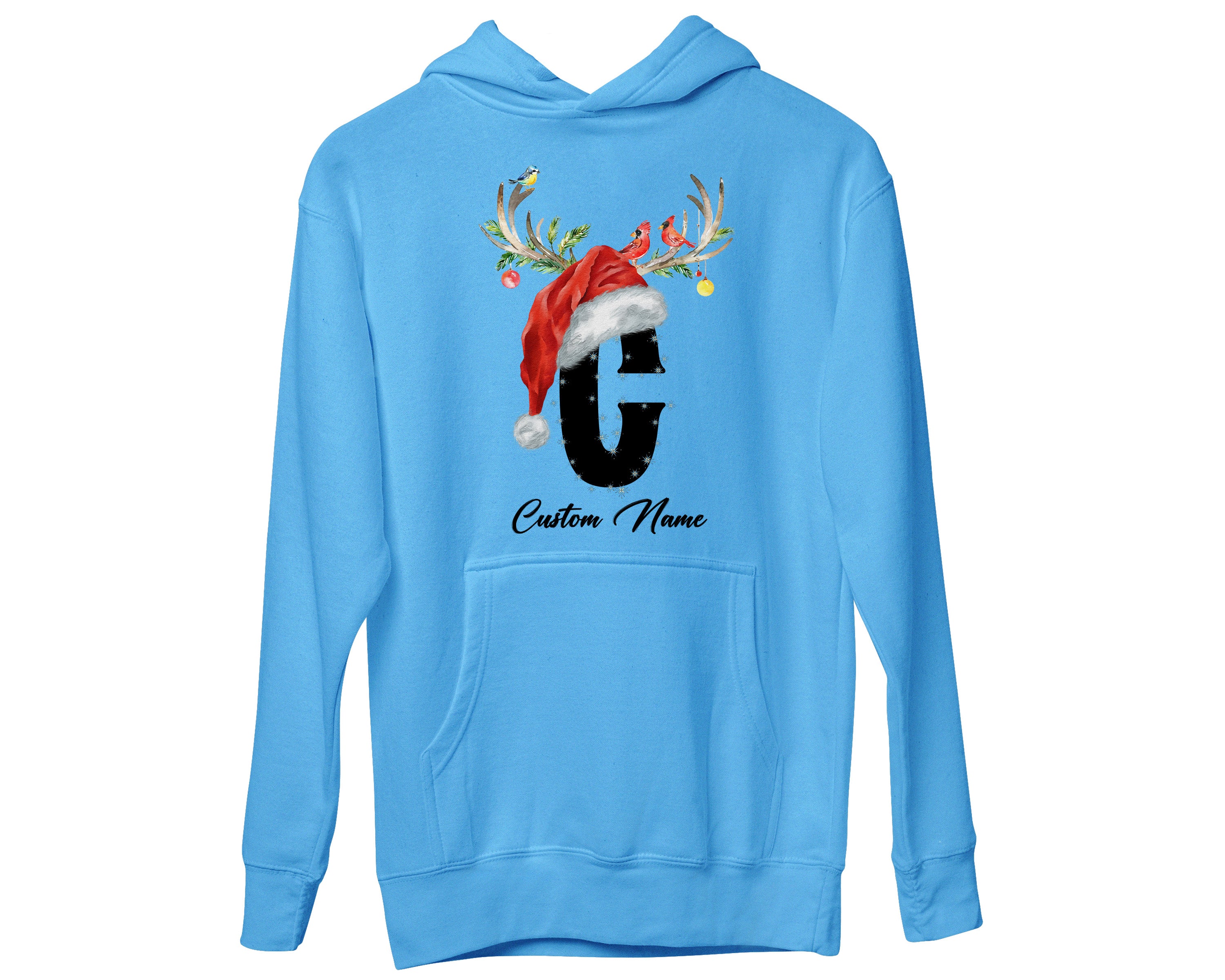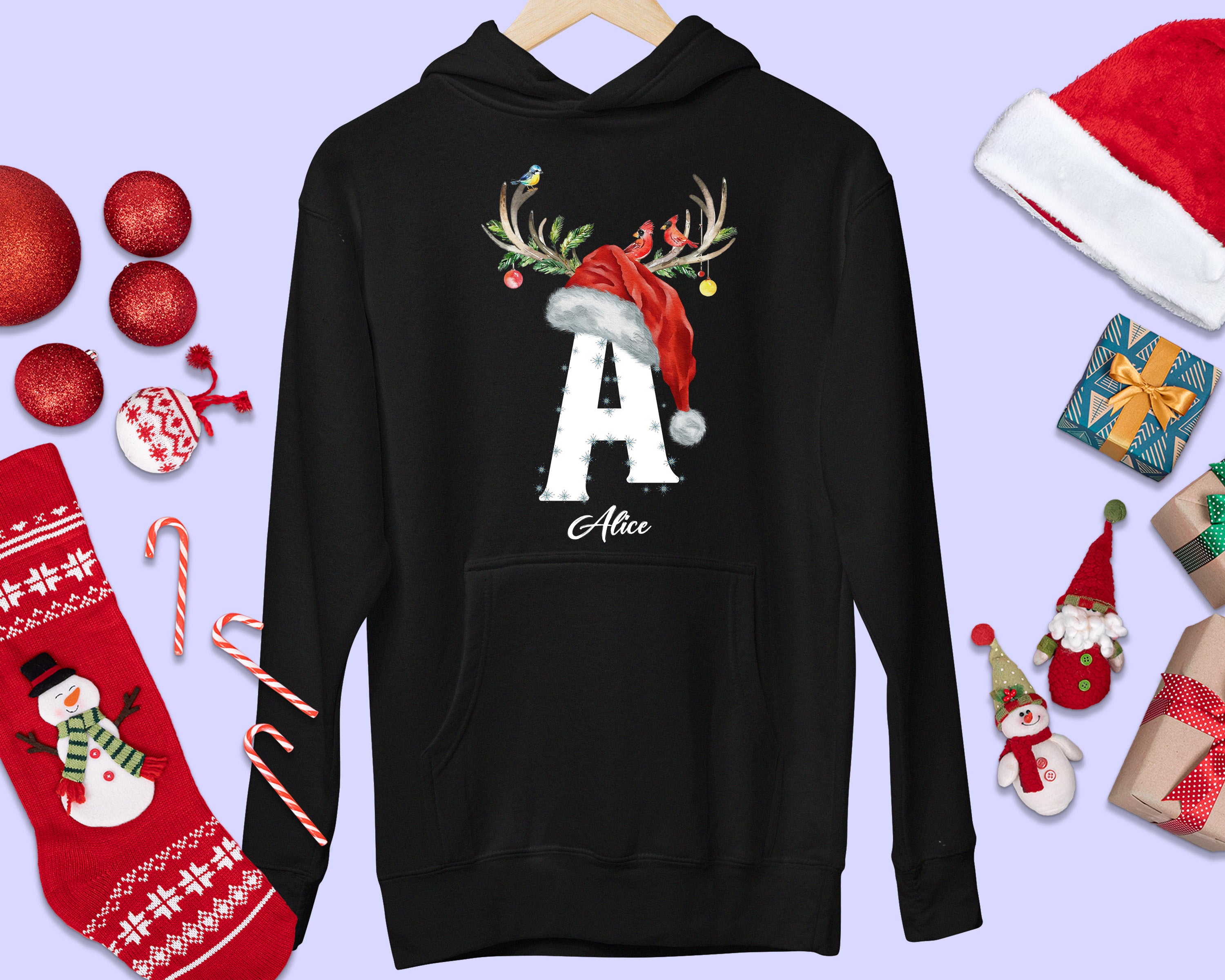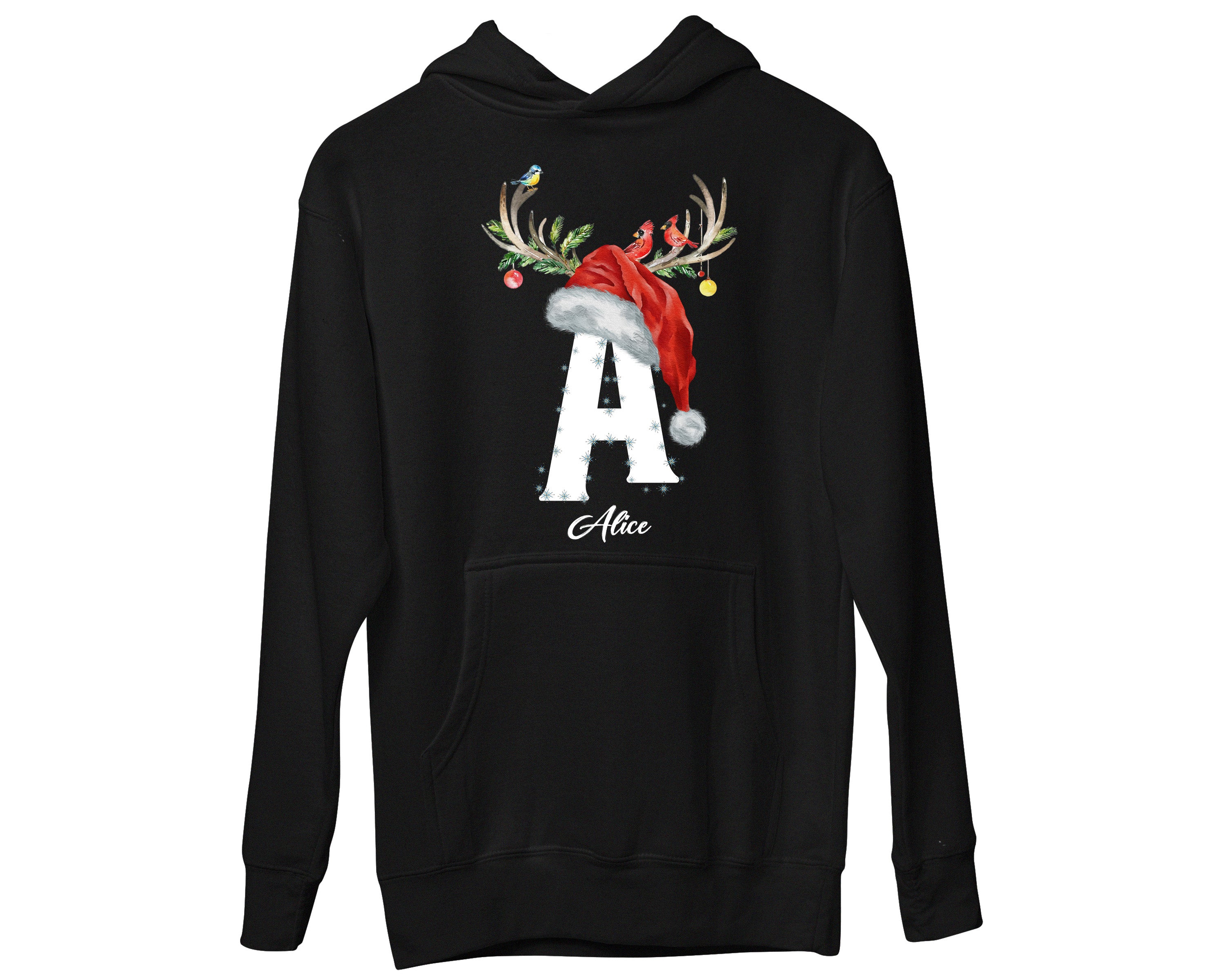 Personalised Christmas Theme Name Initial Rudolph Antlers Hoodies