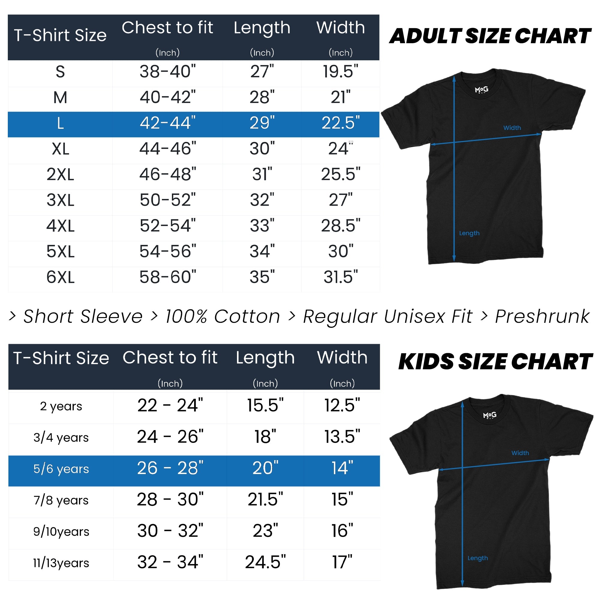 SIZE GUIDE See size guide for measurements Please note all Ladies T-shirts are SLIM FIT petite style (for a looser ladies fit, go one size up) For a looser fit we recommend men's/Unisex sized t-shirt (see size guide for dress measurements)