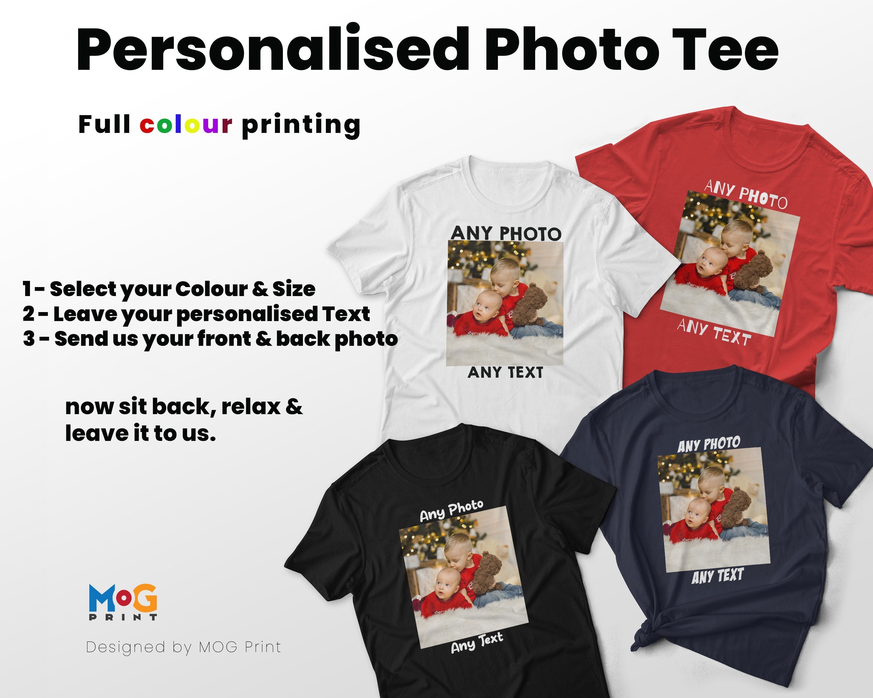 Personalised Photo T shirt Front & Back Print, Any Picture Image Personalised Text T-shirt, Custom Design Shirt Birthday Hen Party Tee Top