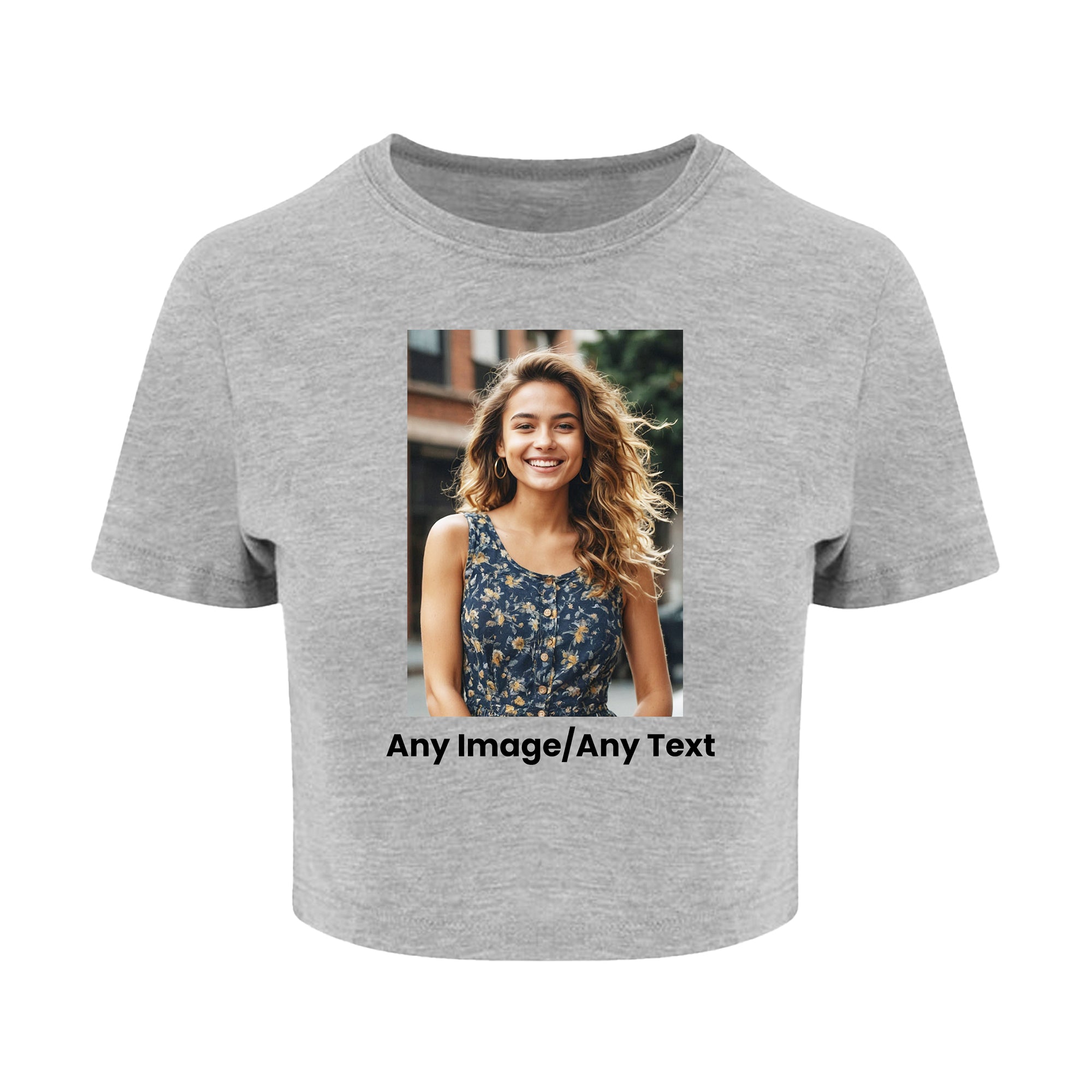 Personalised Photo Women's Crop Top Custom Text Logo Gift Cropped T-shirt