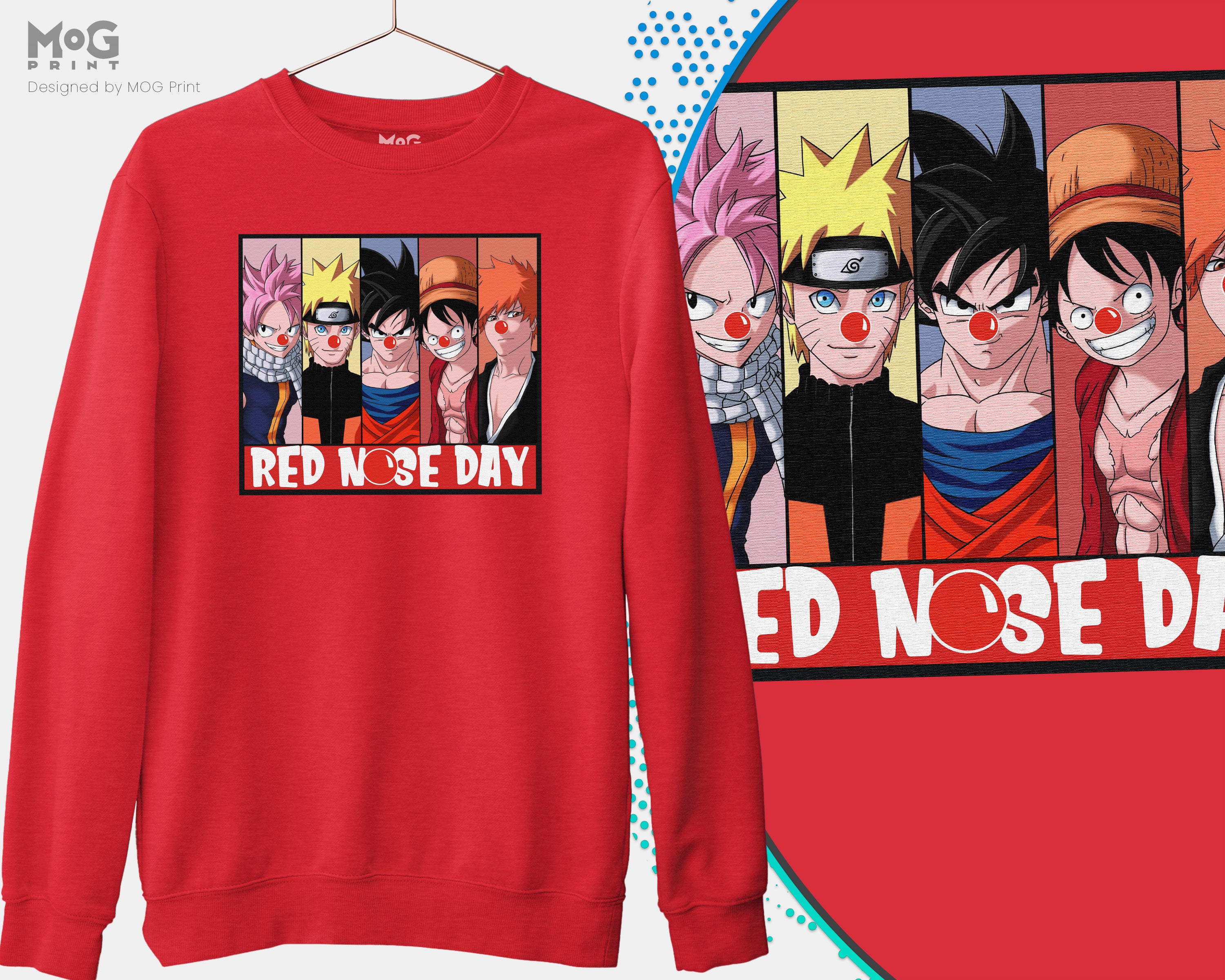 Red Nose Day 2026 Sweatshirt Anime Heroes Kids Adults Manga Fans Gifts