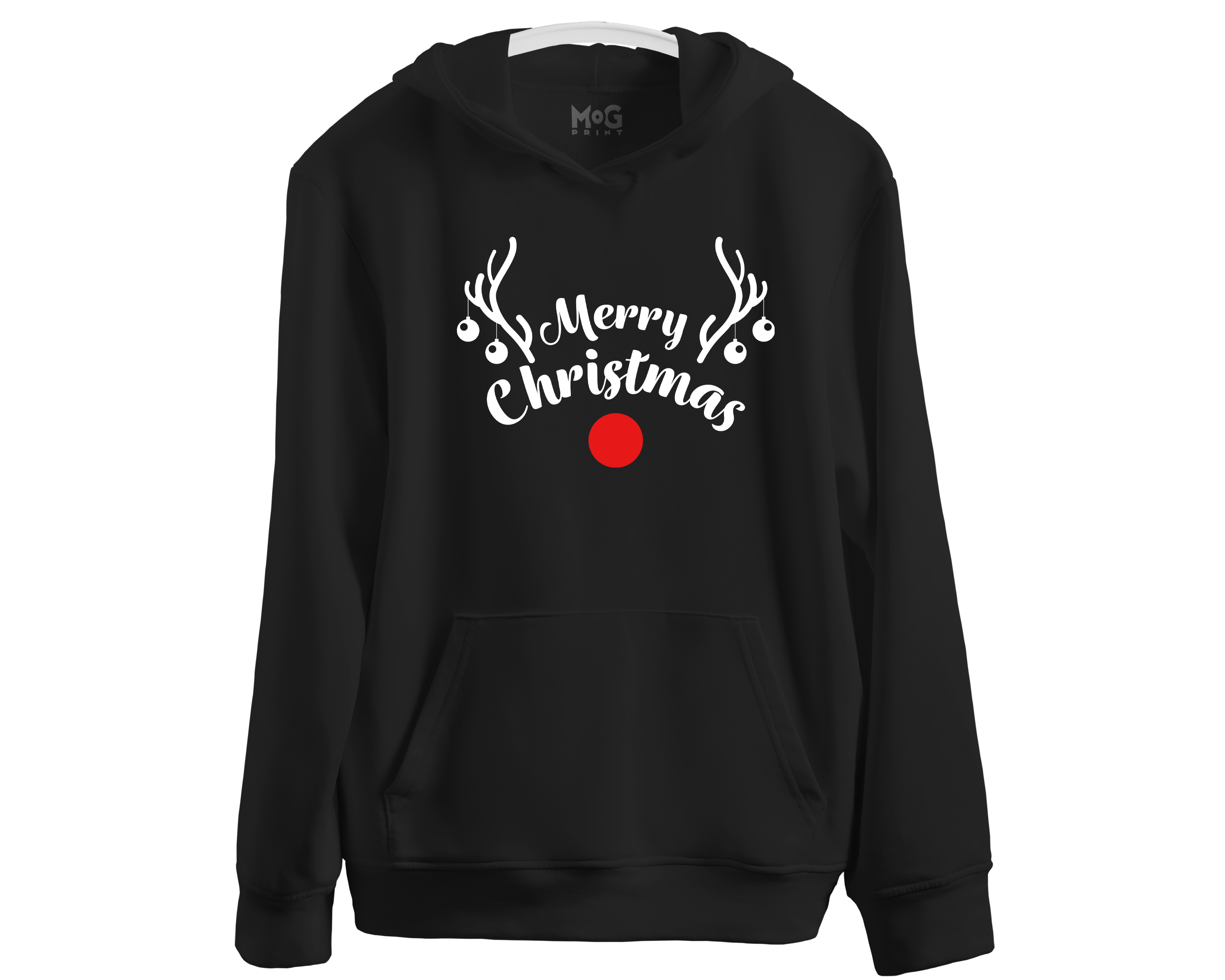 Red Nose Reindeer Hoodie Merry Christmas Sweater Rudolph Santa Antlers Xmas Top